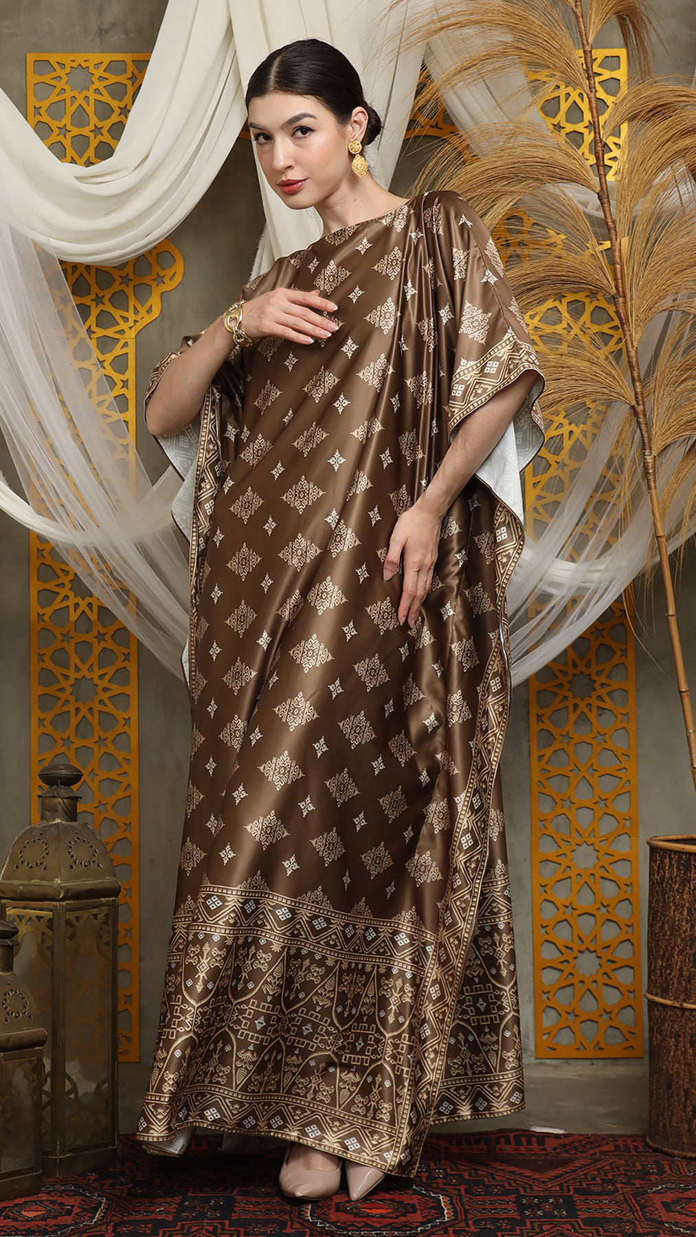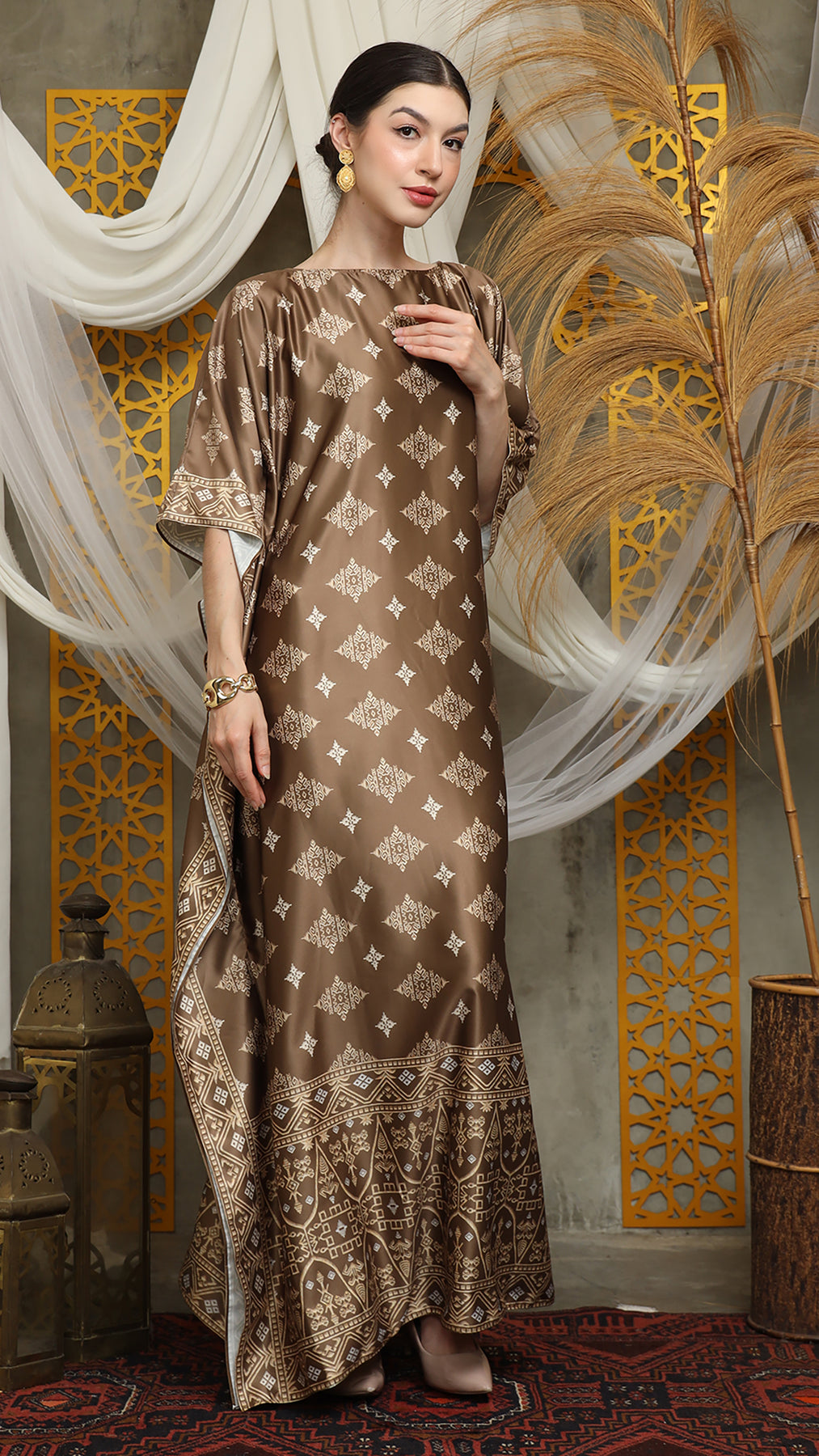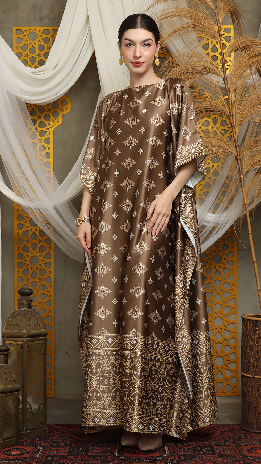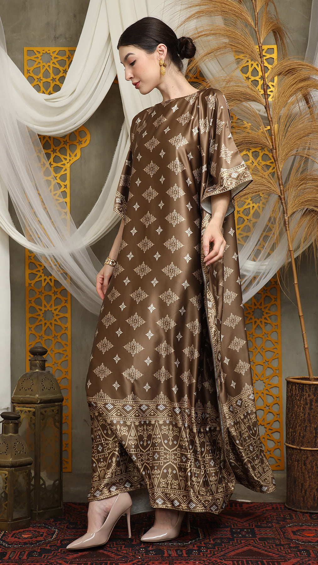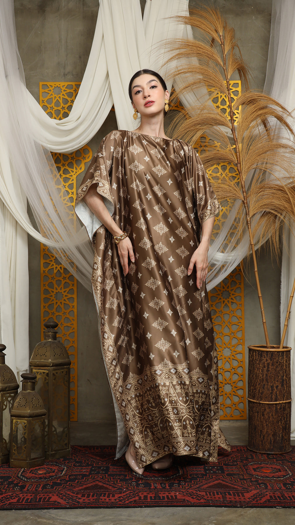 This featured kaftan is a true masterpiece. It offers a flattering fit that enhances your silhouette from every angle. Made from non-transparent fabric, it ensures confidence and comfort, allowing you to move with grace and poise.
