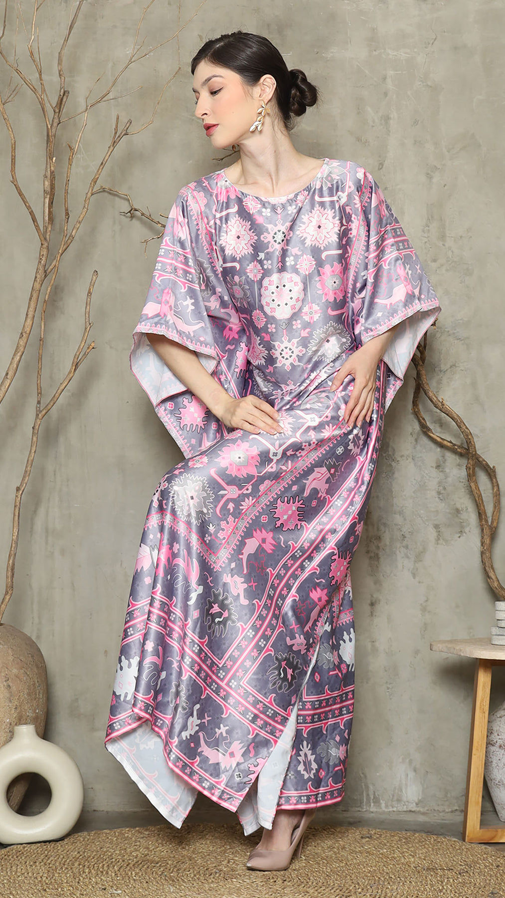 Dark Grey Abstract Short Kaftan
