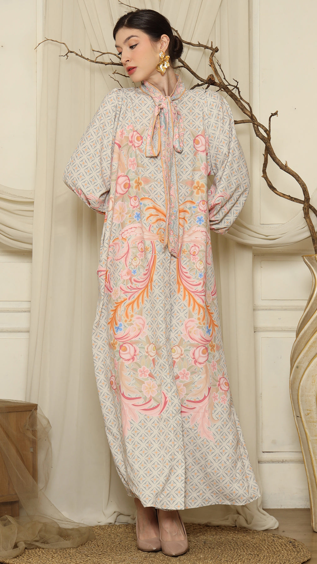 This kaftan is made from lightweight satin material, which has super comfortable to lounge around in, adjustable drawstring and flattering neckline is an added feature which offers a glamorous way to cover up and perfect for evening wear.