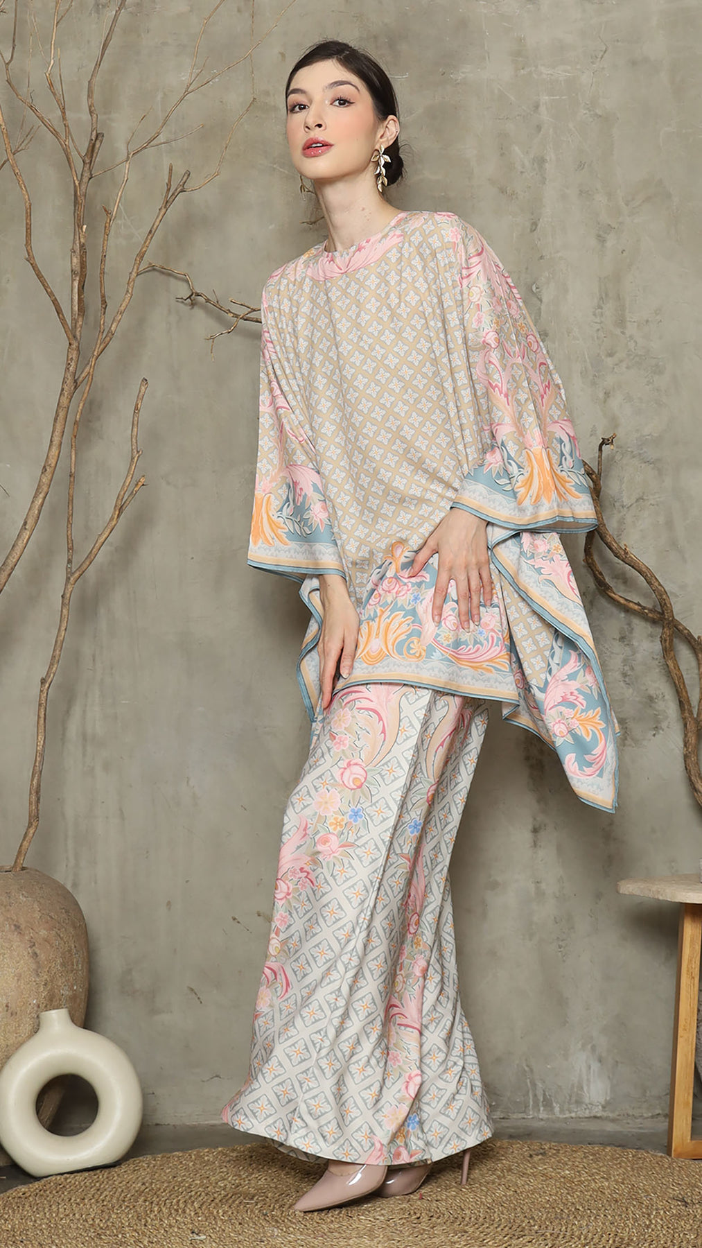 Crafted with meticulous attention to detail, this set boasts a modern silhouette with a hint of vintage-inspired flair. The top showcases the abstract flower motif in an elegant design, while the accompanying pants offer a chic and comfortable fit.