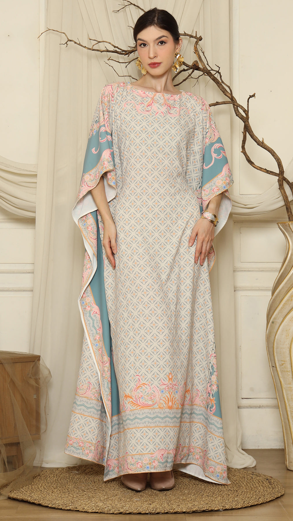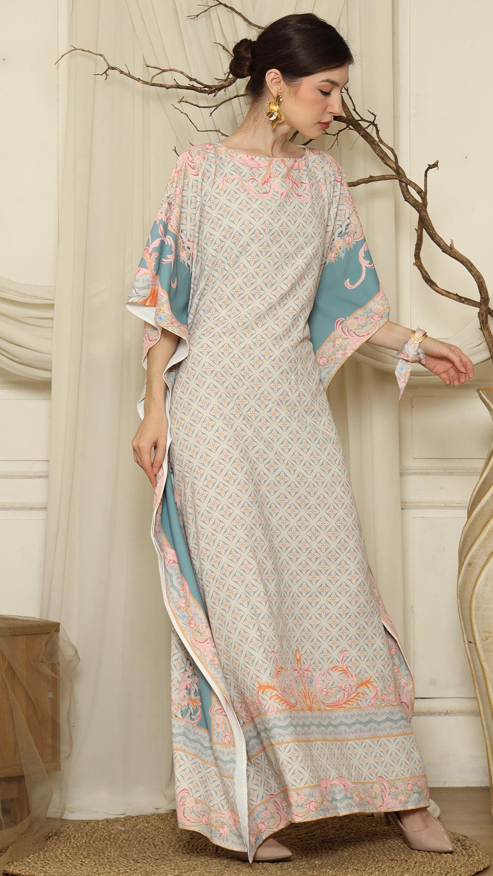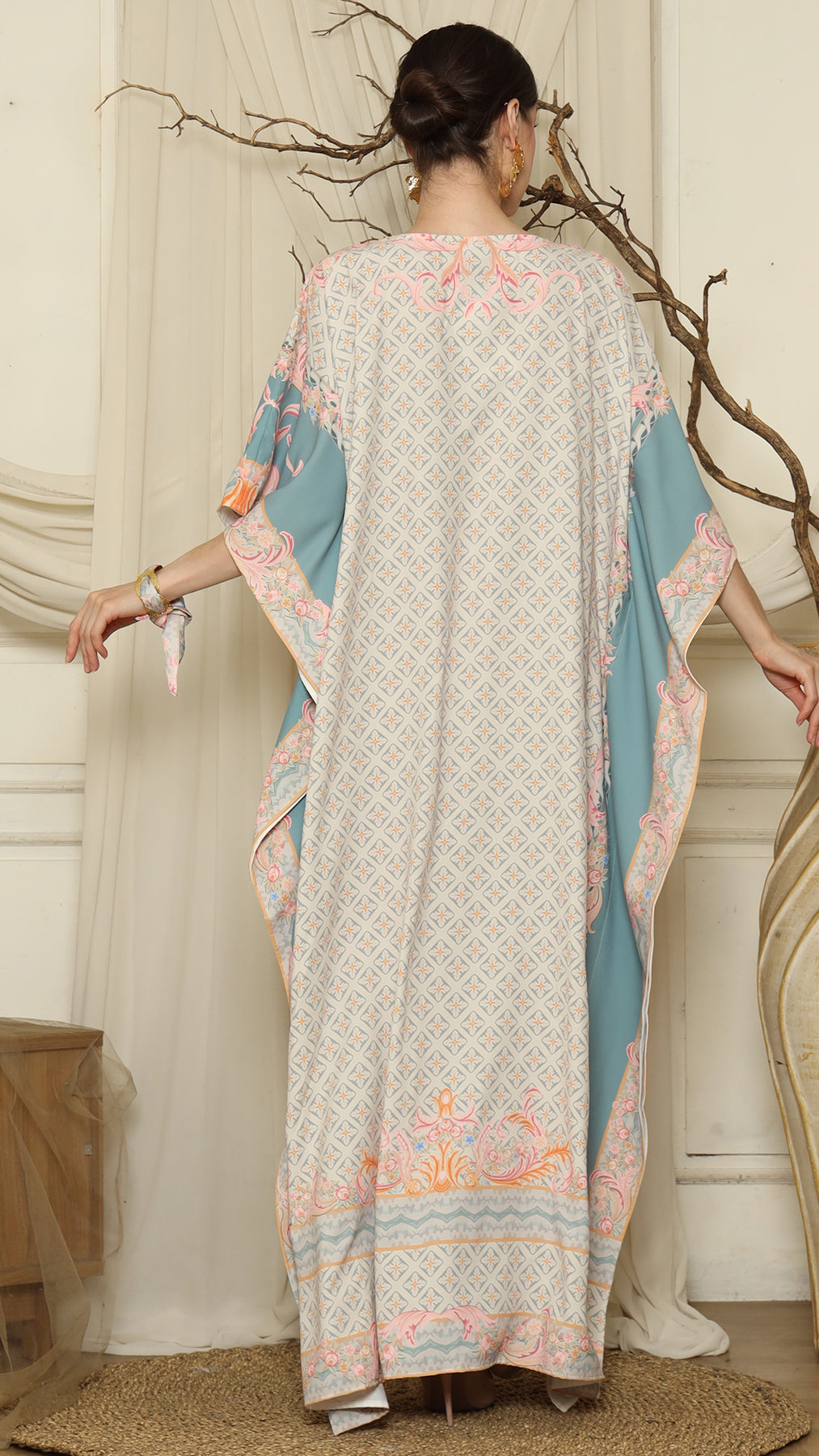 Grey Flower Short Kaftan