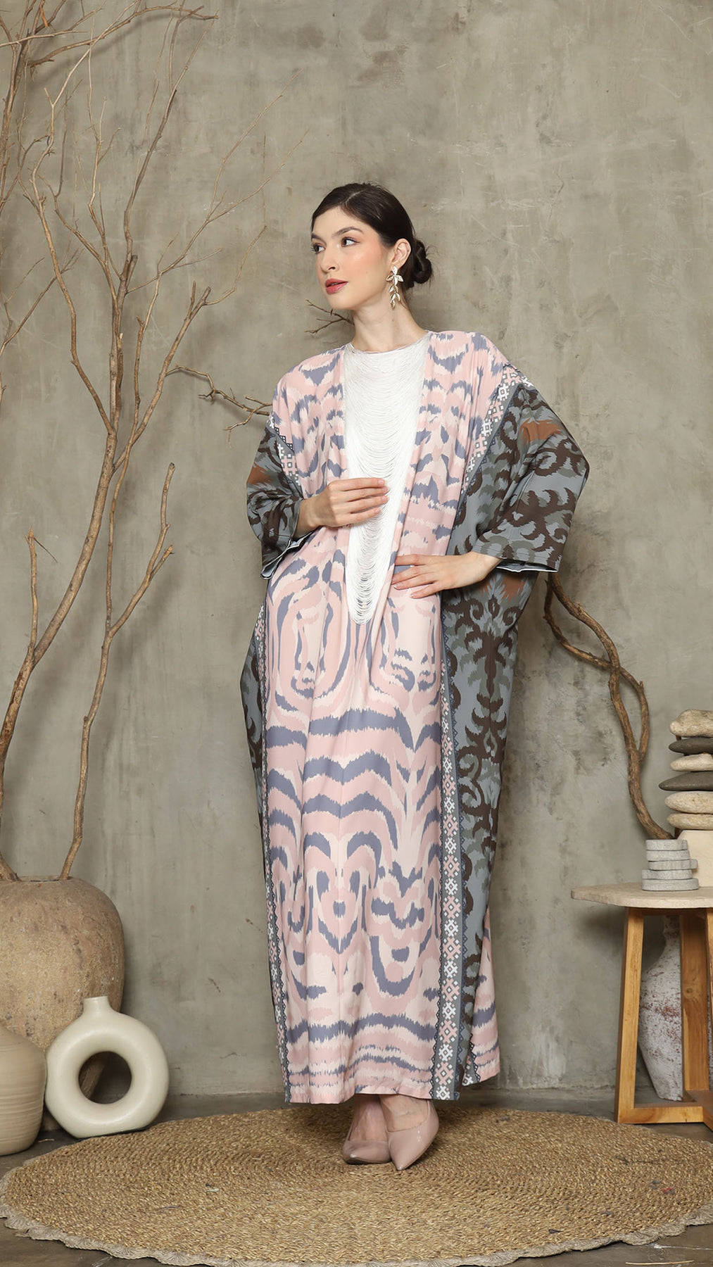 This kaftan is made from premium satin material, which has super comfortable to lounge around in, adjustable drawstring which offers a glamorous way to cover up and perfect for evening wear. A short fringe kaftan that brings effortless drama and easy elegance. Cut in a relaxed, breezy silhouette, it drapes beautifully over the body while allowing freedom of movement. The playful fringe detailing adds texture and motion, swaying with every step for a touch of bohemian glamour