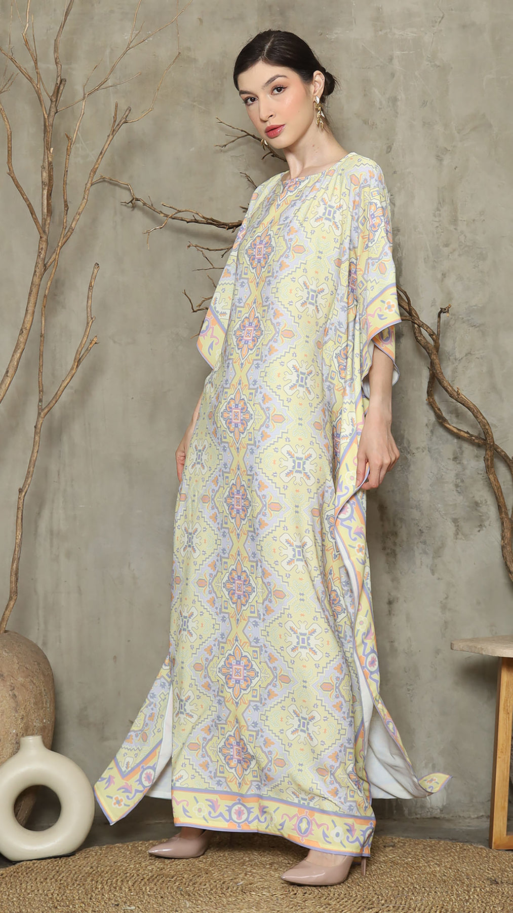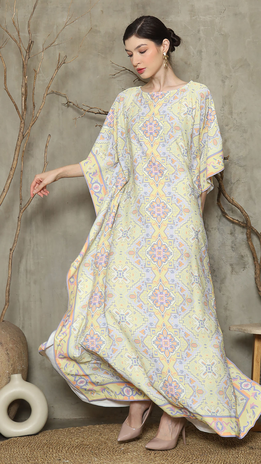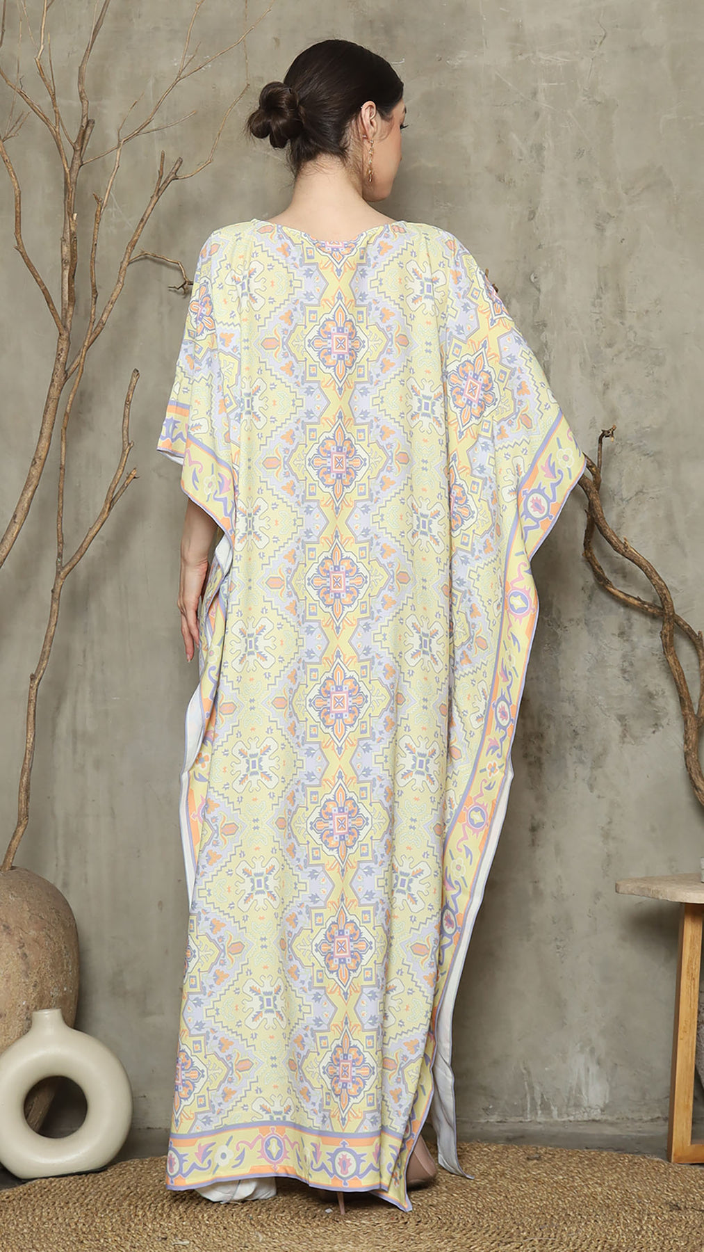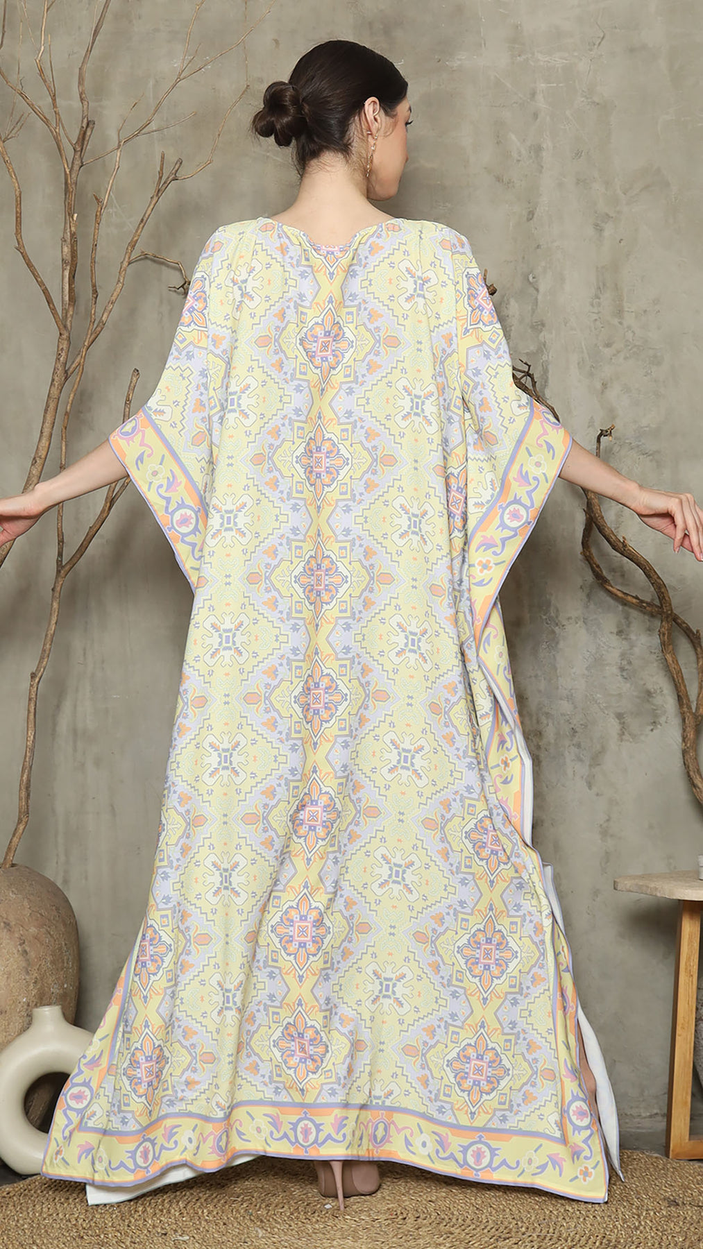 This kaftan is made from lightweight satin material, which has super comfortable to lounge around in, adjustable drawstring and flattering neckline is an added feature which offers a glamorous way to cover up and perfect for evening wear.