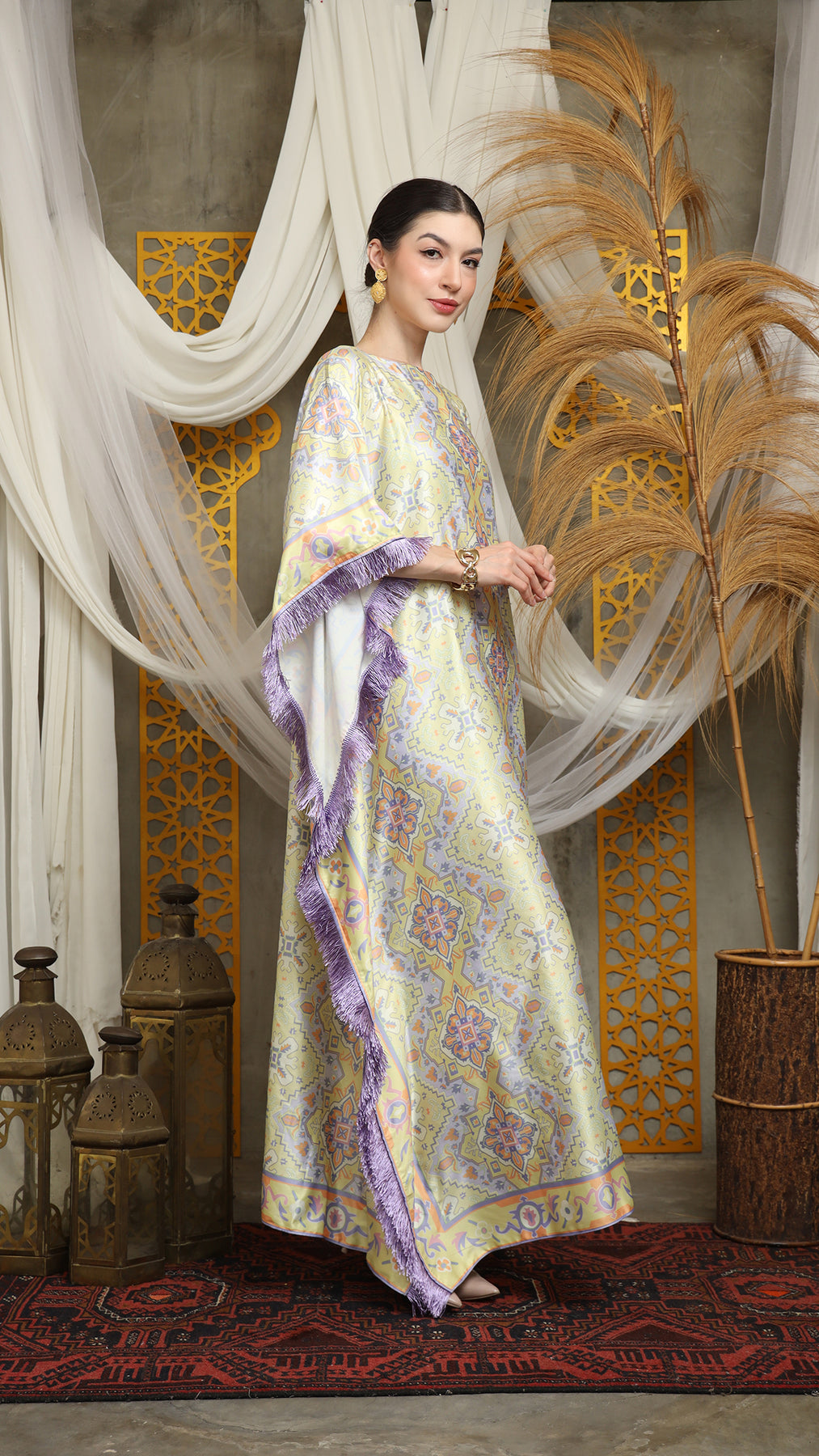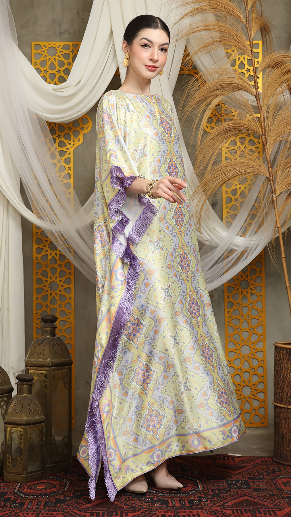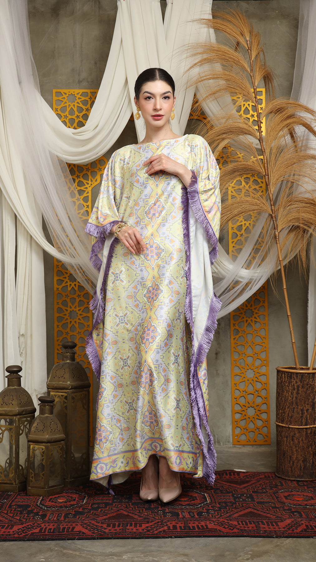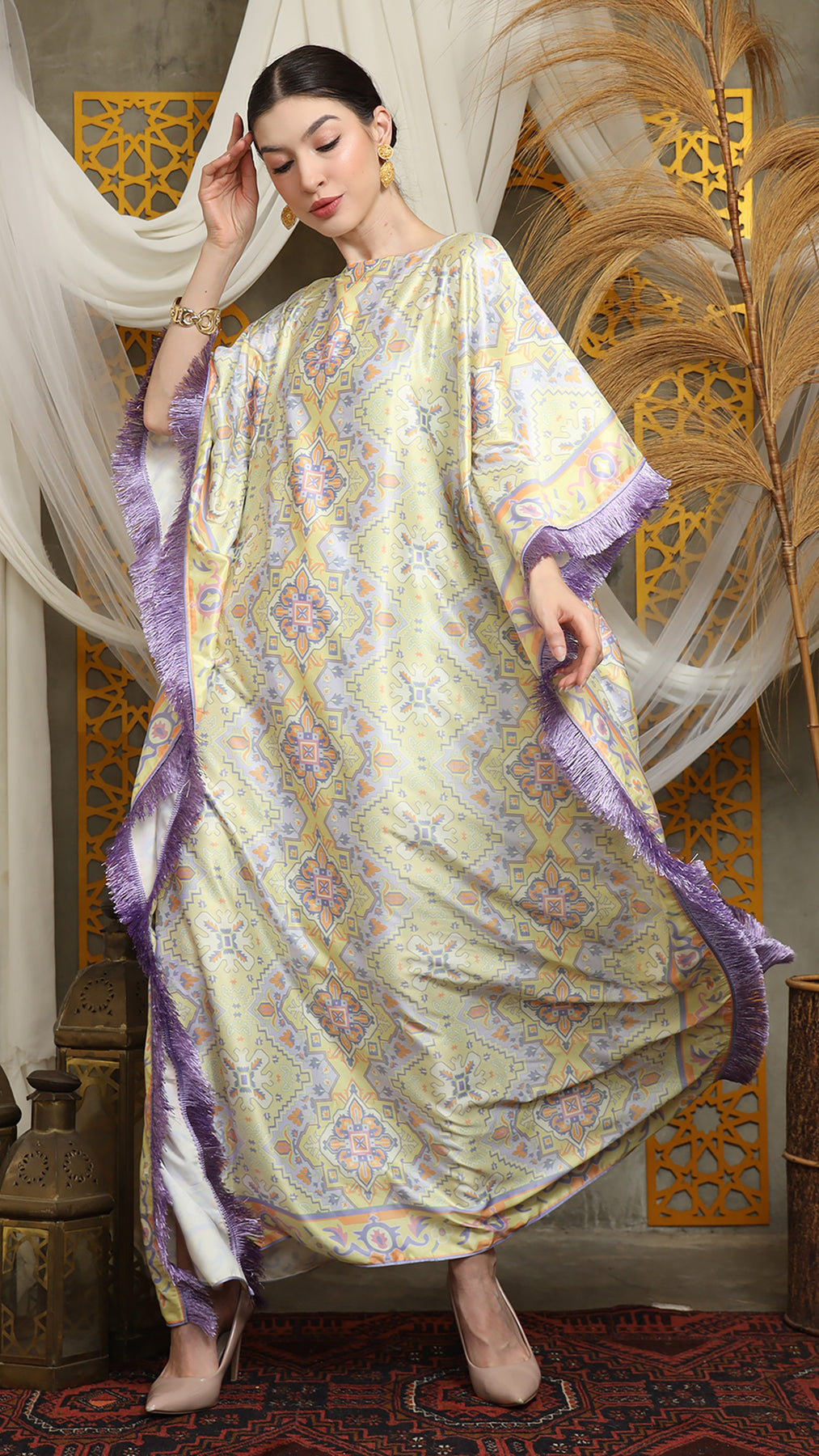 Lime Purple Short Fringe Kaftan
