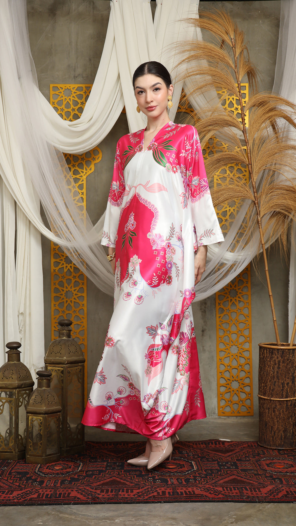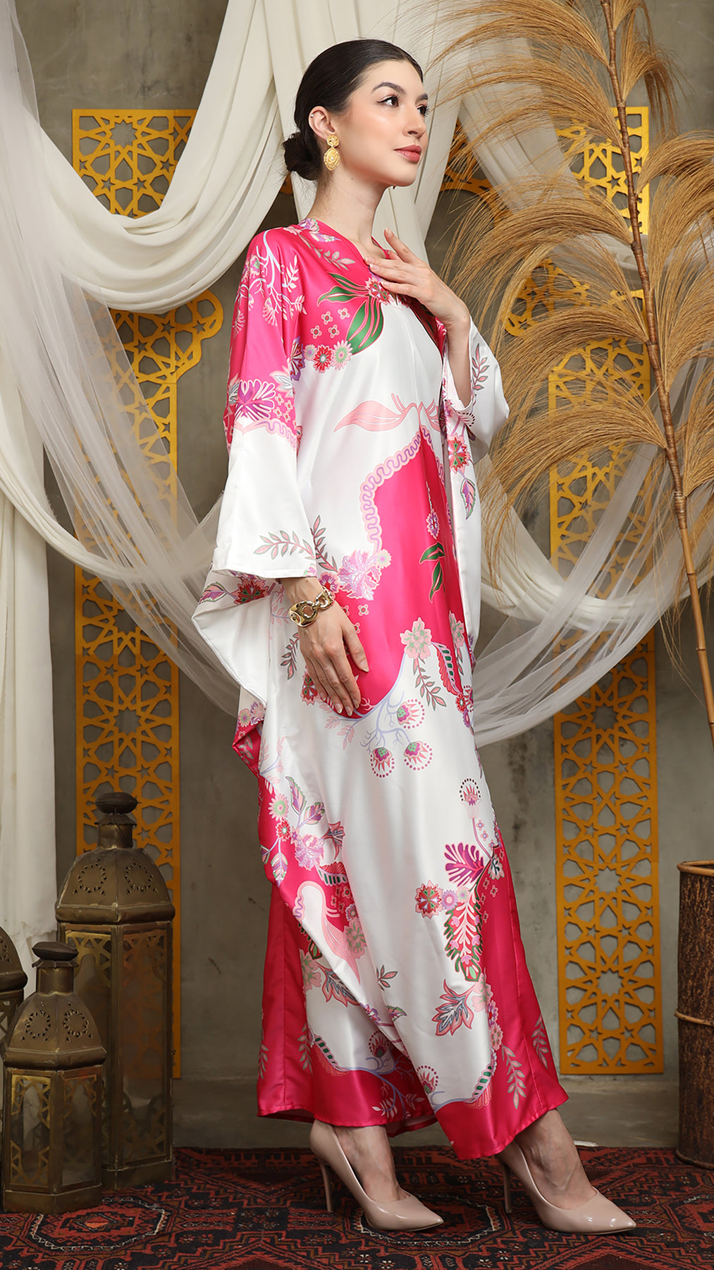This kaftan is made from lightweight satin material, which has super comfortable to lounge around in, adjustable drawstring and flattering neckline is an added feature which offers a glamorous way to cover up and perfect for evening wear.