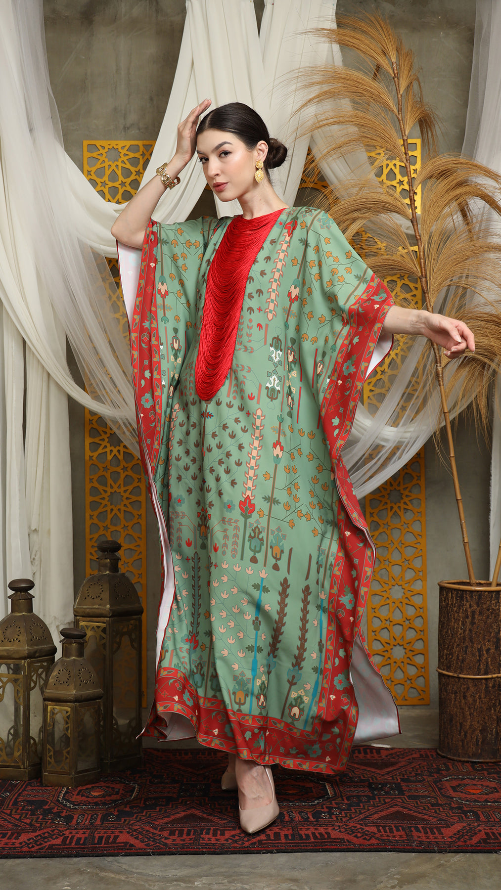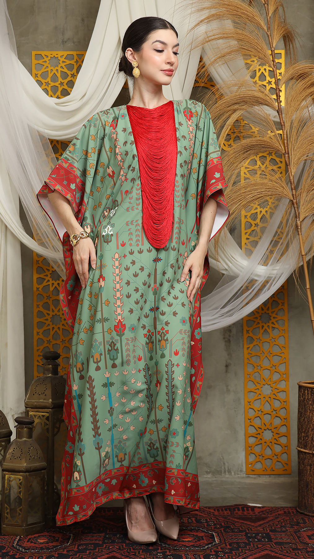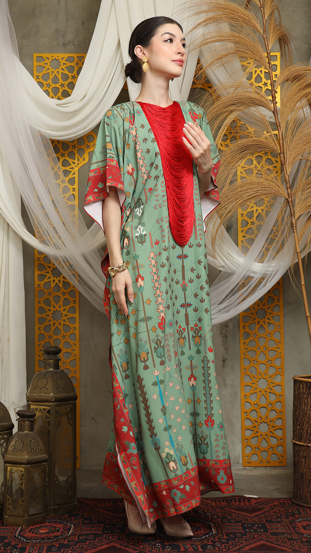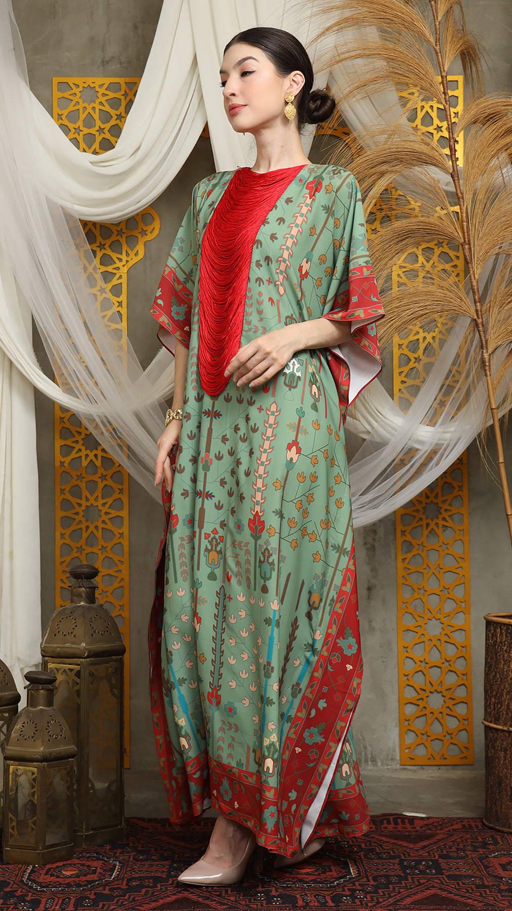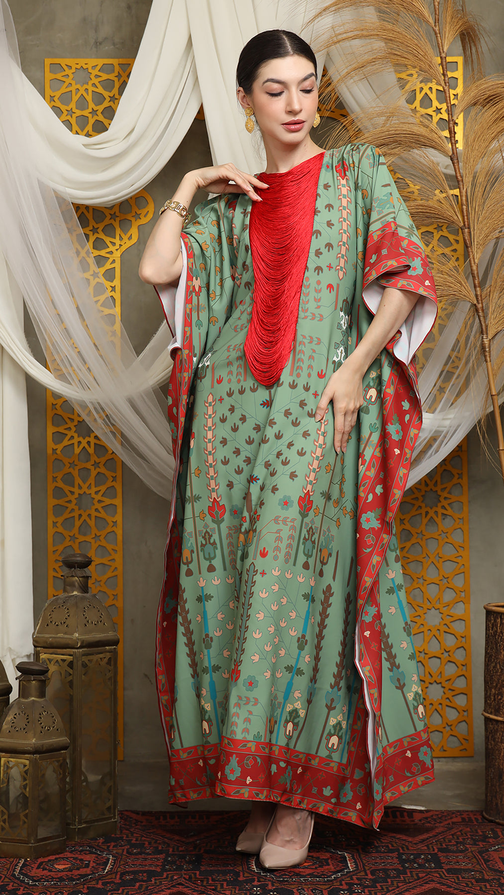 Sage Terra Necklace Fringe Short Kaftan