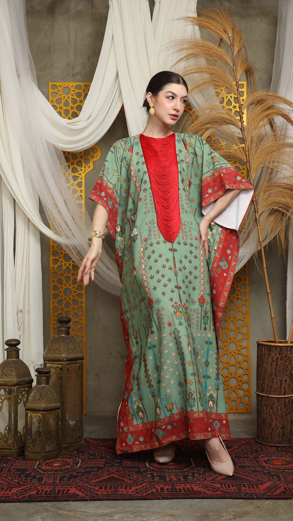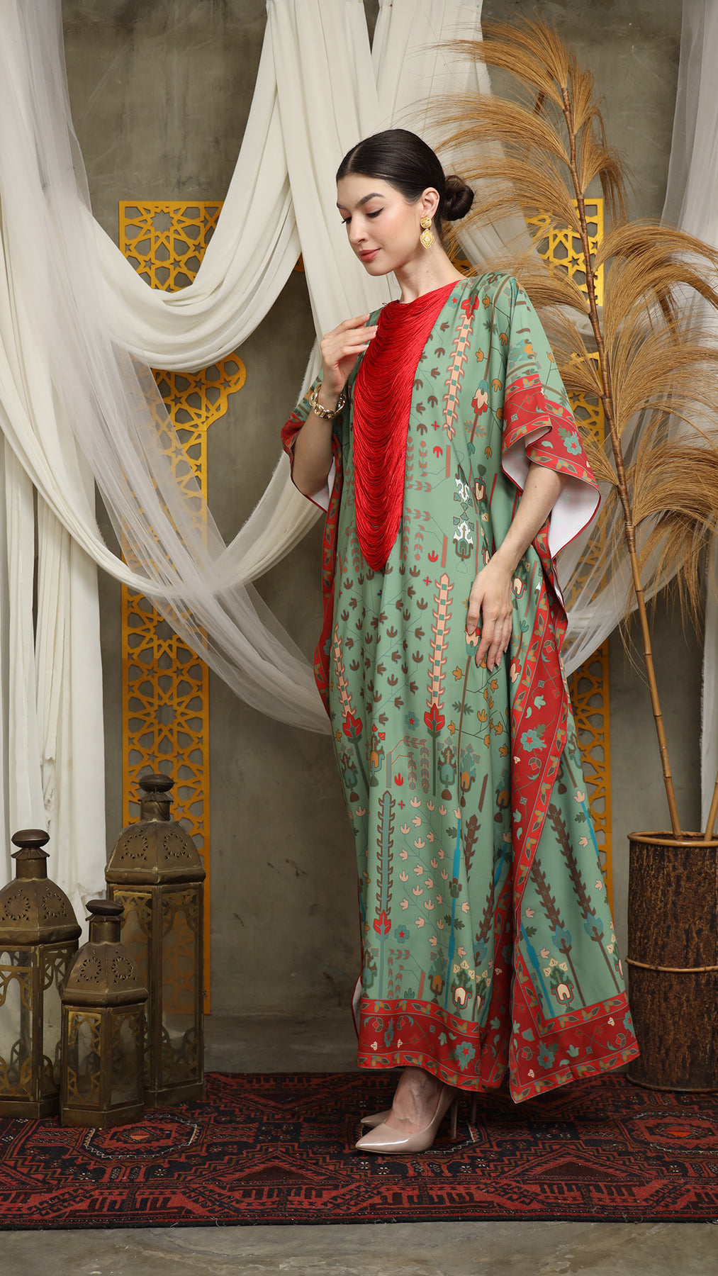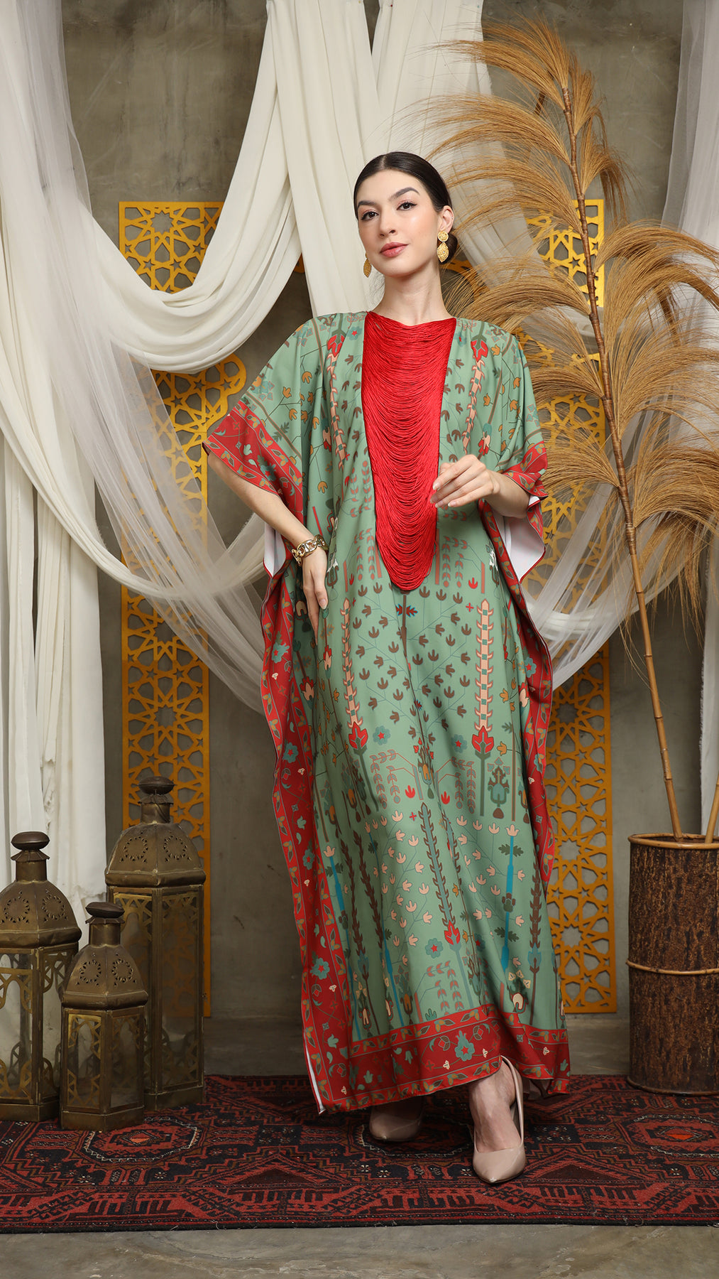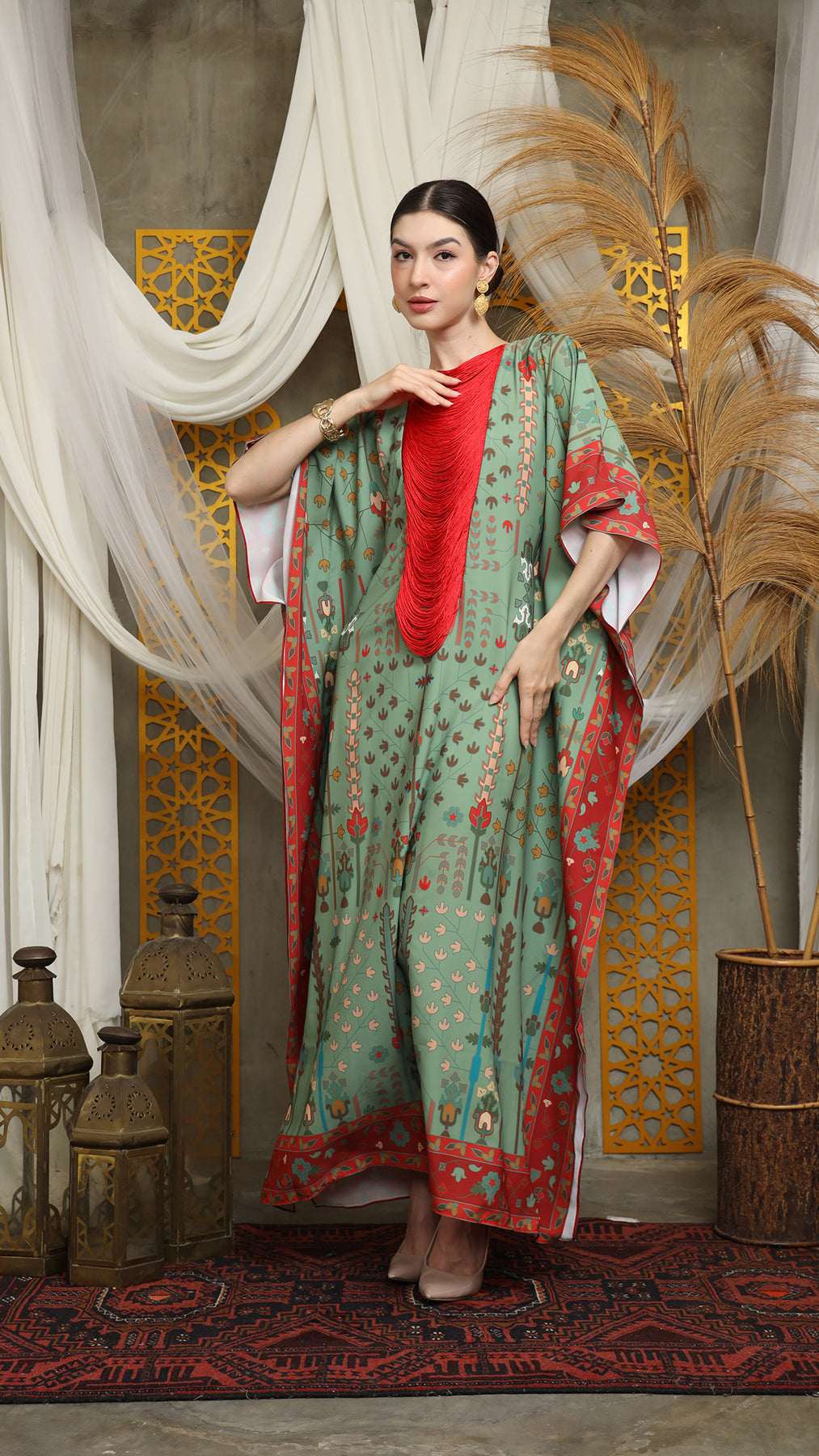Sage Terra Necklace Fringe Short Kaftan