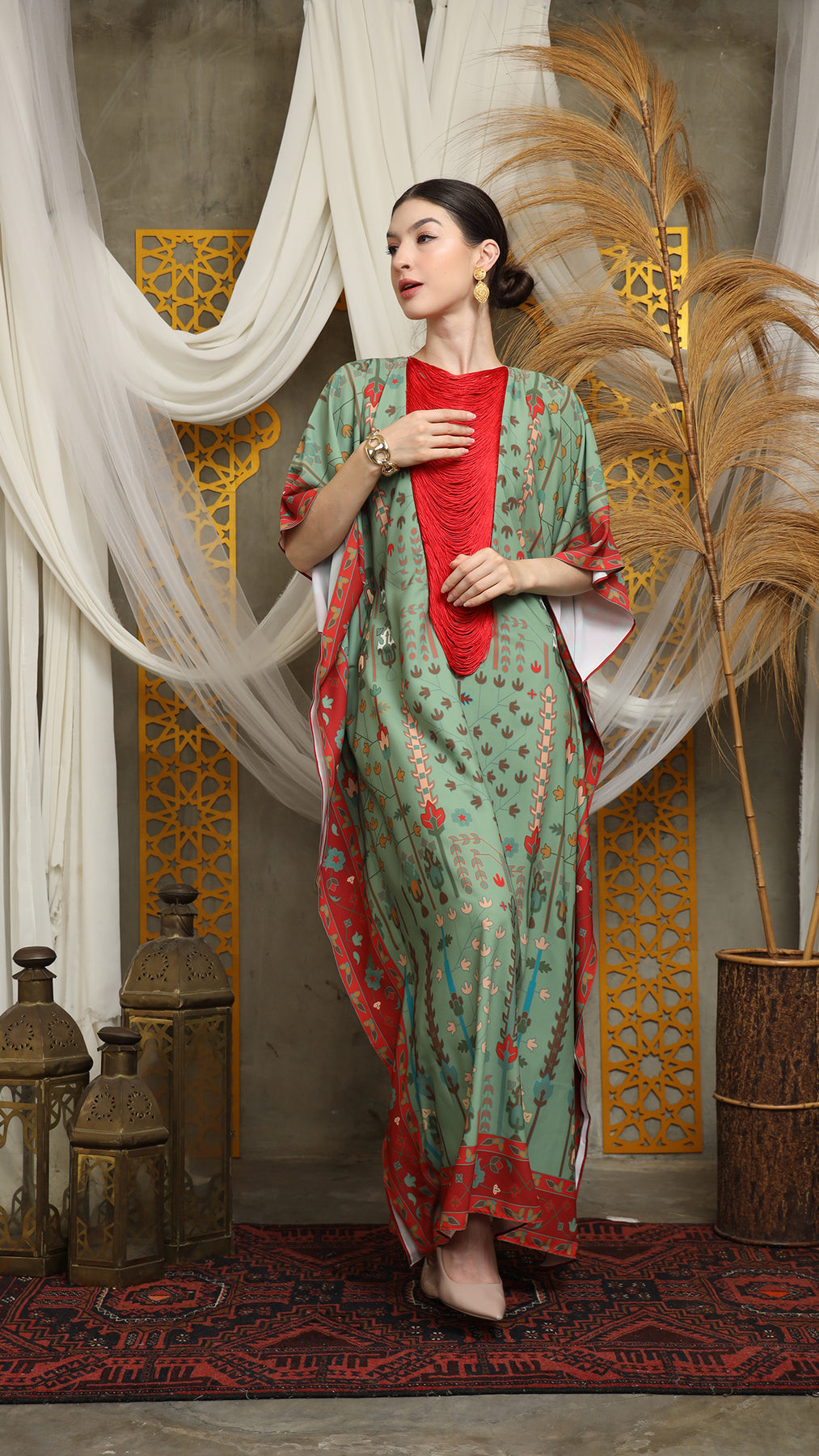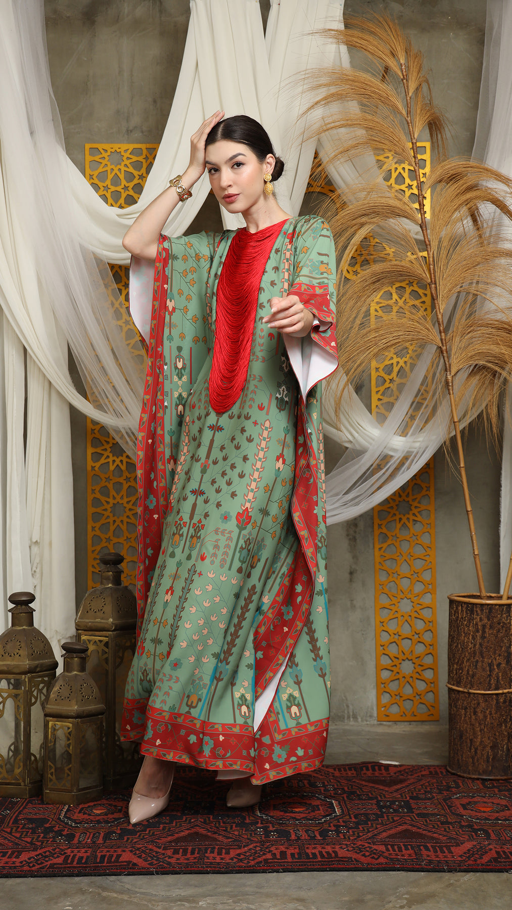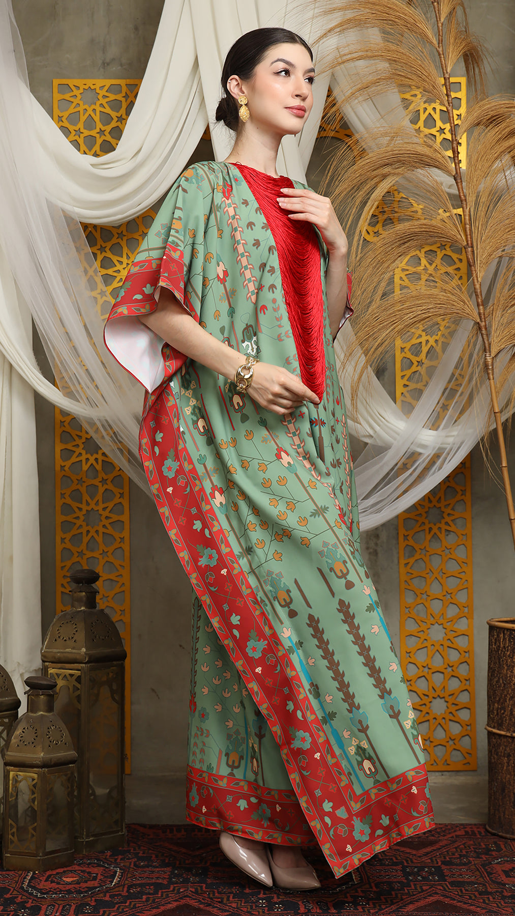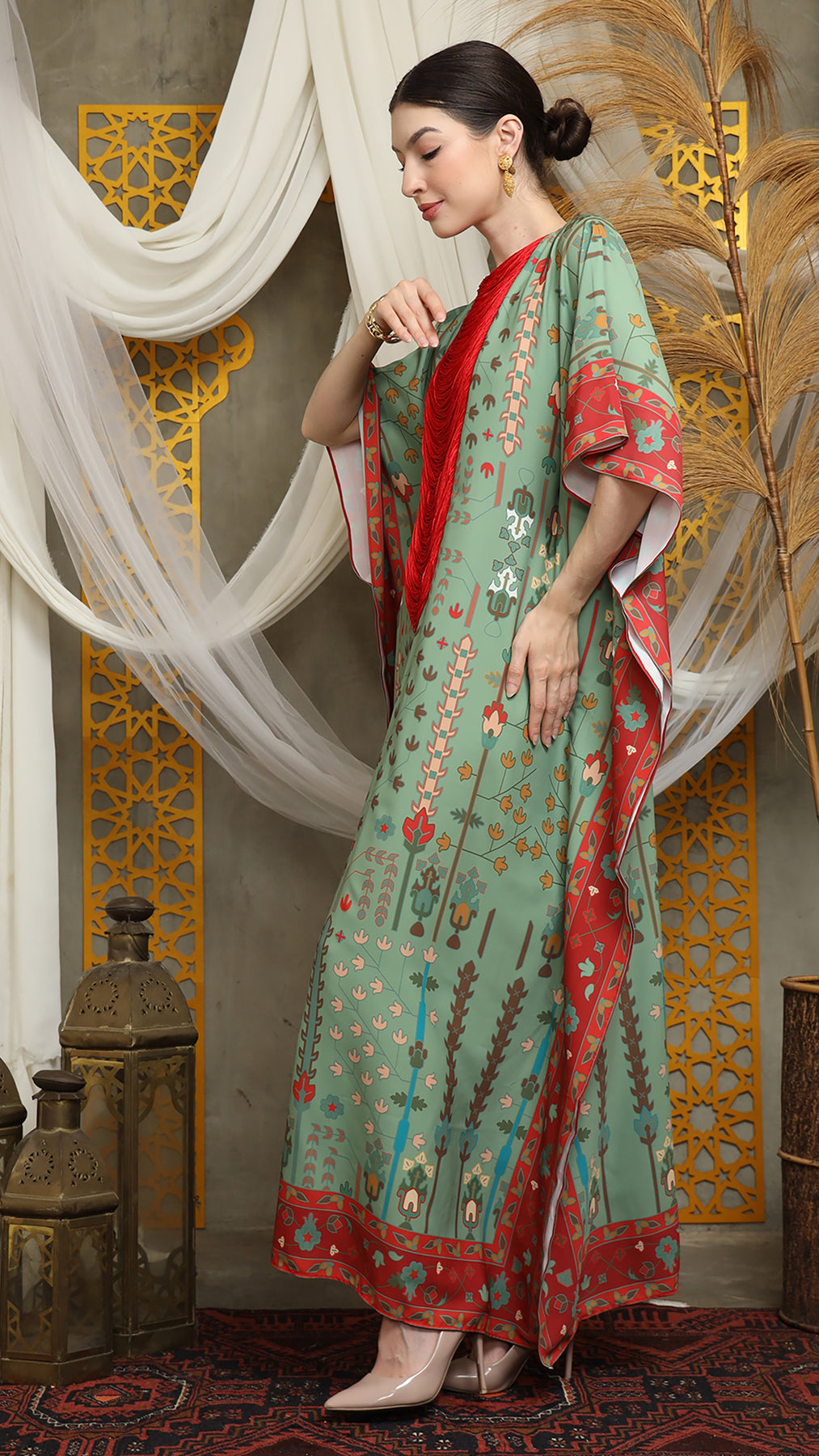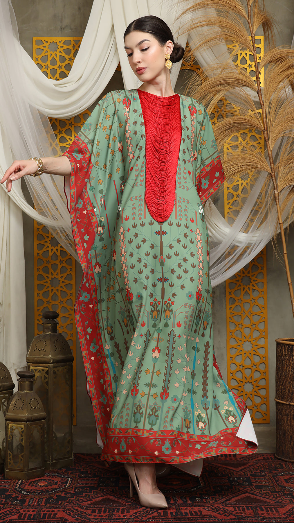 Sage Terra Necklace Fringe Short Kaftan