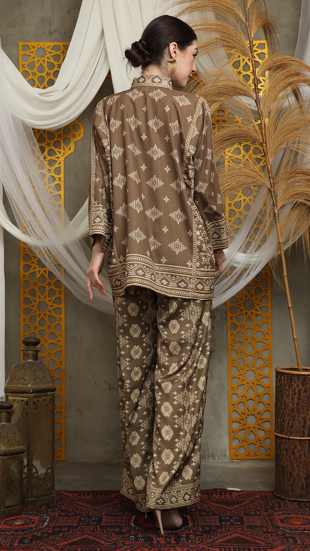 This featured set with pants is a true masterpiece. It offers a flattering fit that enhances your silhouette from every angle. Made from non-transparent fabric, it ensures confidence and comfort, allowing you to move with grace and poise.
