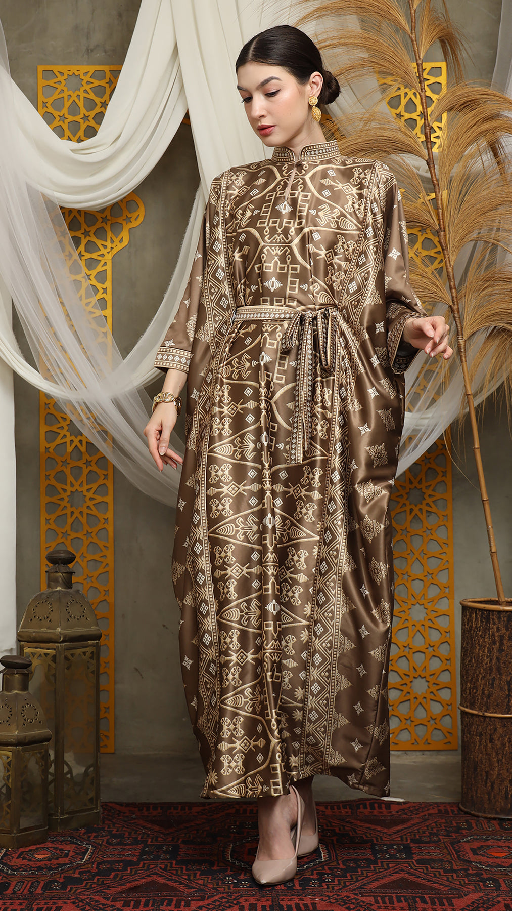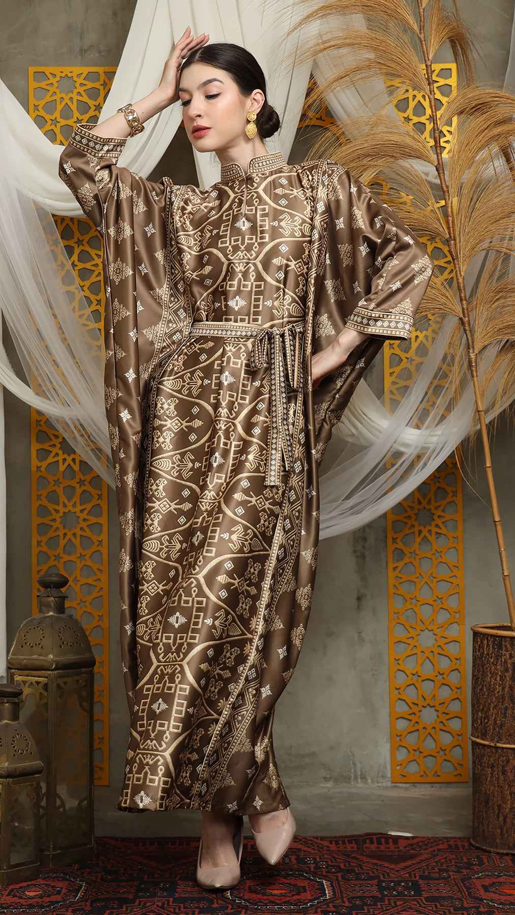 This featured dress kaftan is a true masterpiece. It offers a flattering fit that enhances your silhouette from every angle. Made from non-transparent fabric, it ensures confidence and comfort, allowing you to move with grace and poise.