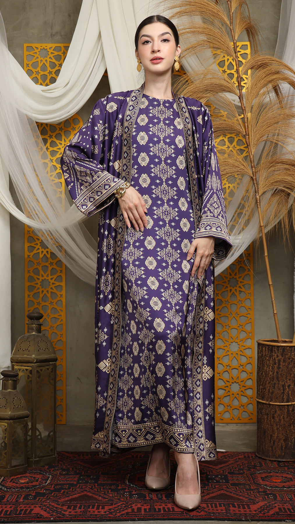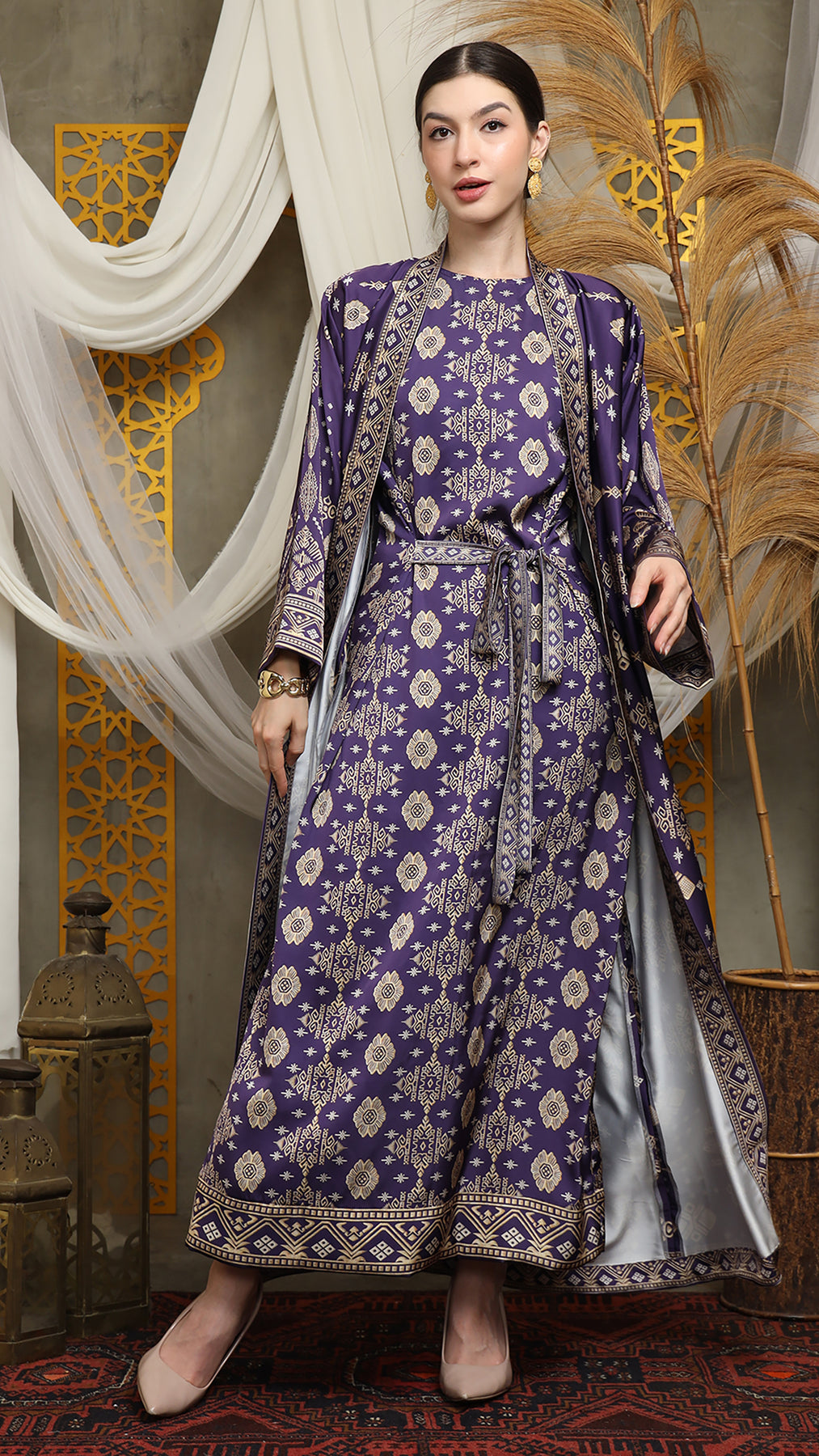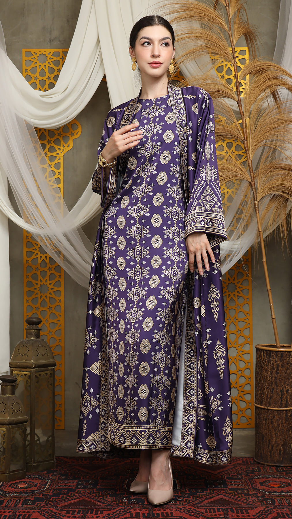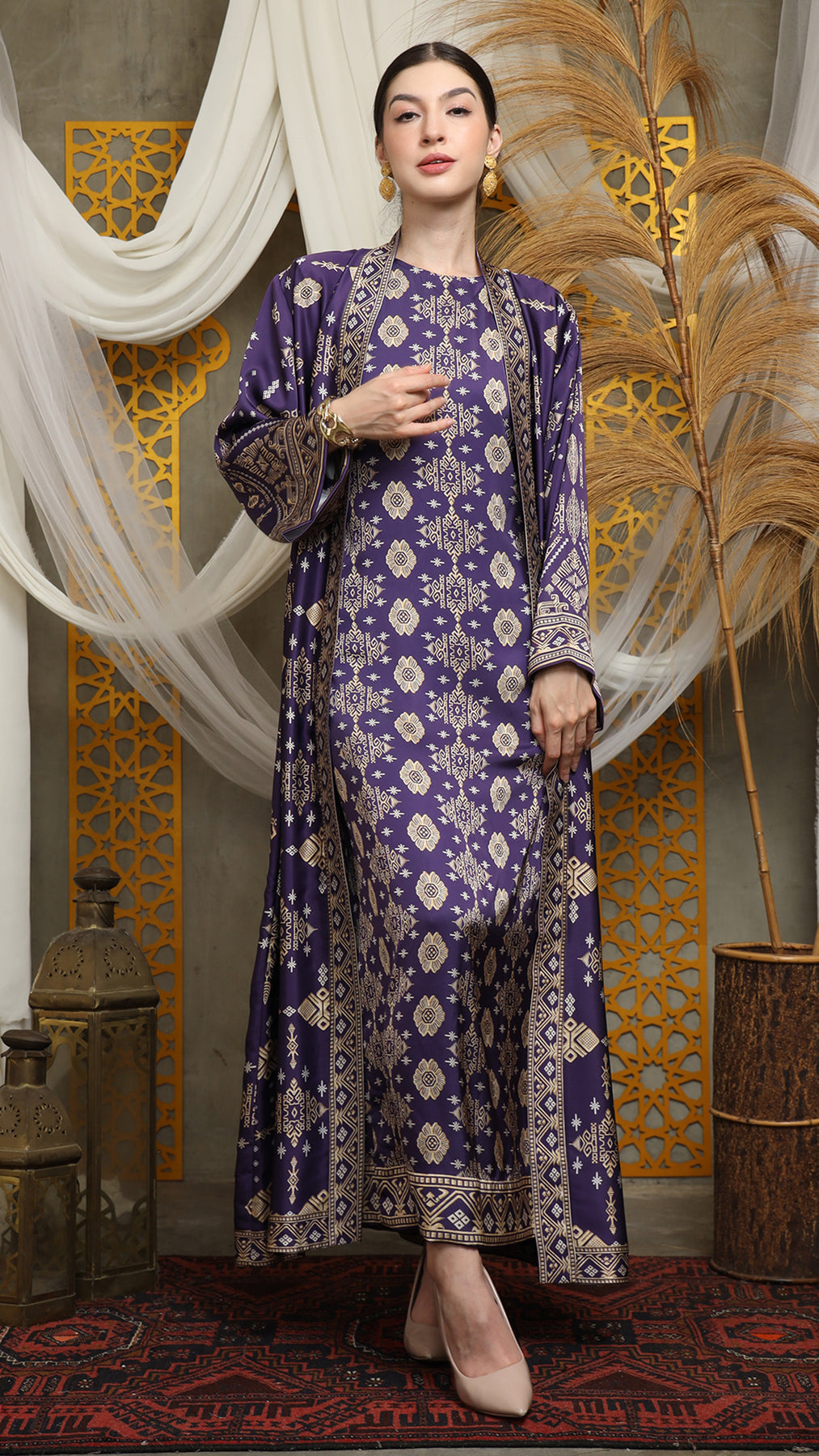 Outerwear is crafted from premium satin. It comes as a 2-piece set: an outer layer and an inner layer. The inner piece features a beautiful patterned design with a back button for added charm. Elegant and versatile, it’s perfect for any occasion, offering a timeless blend of sophistication and comfort.