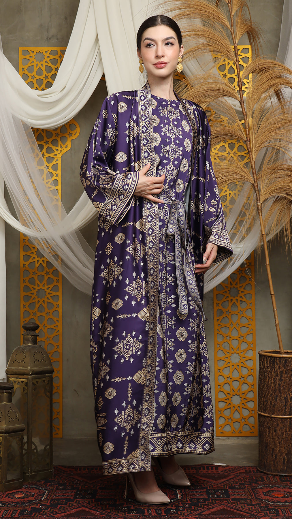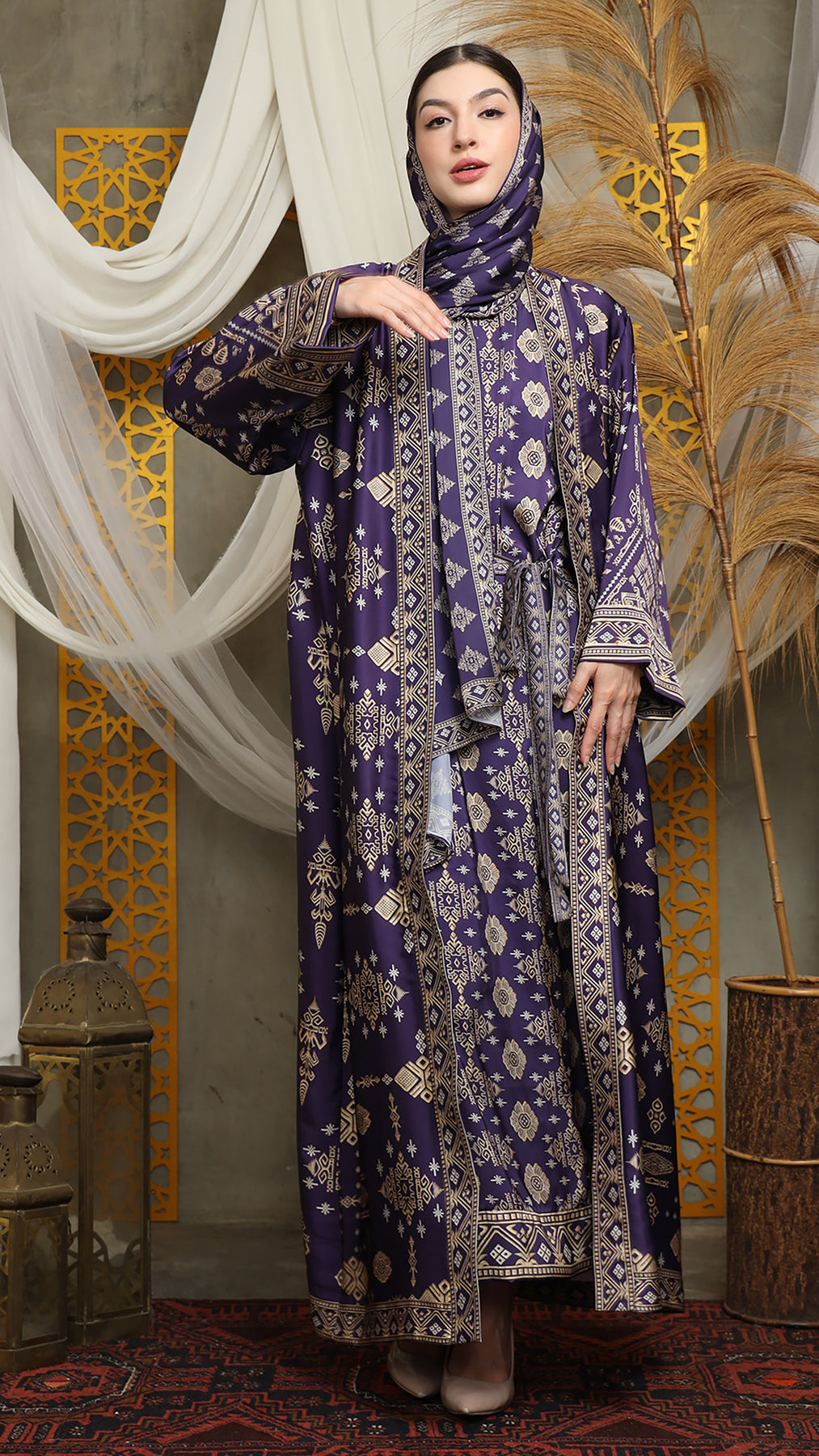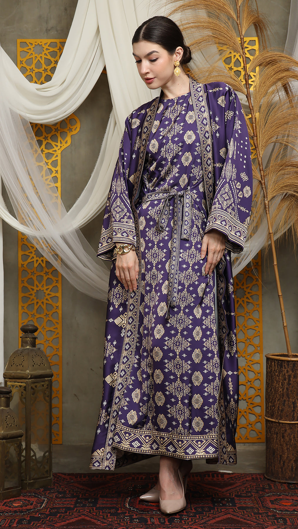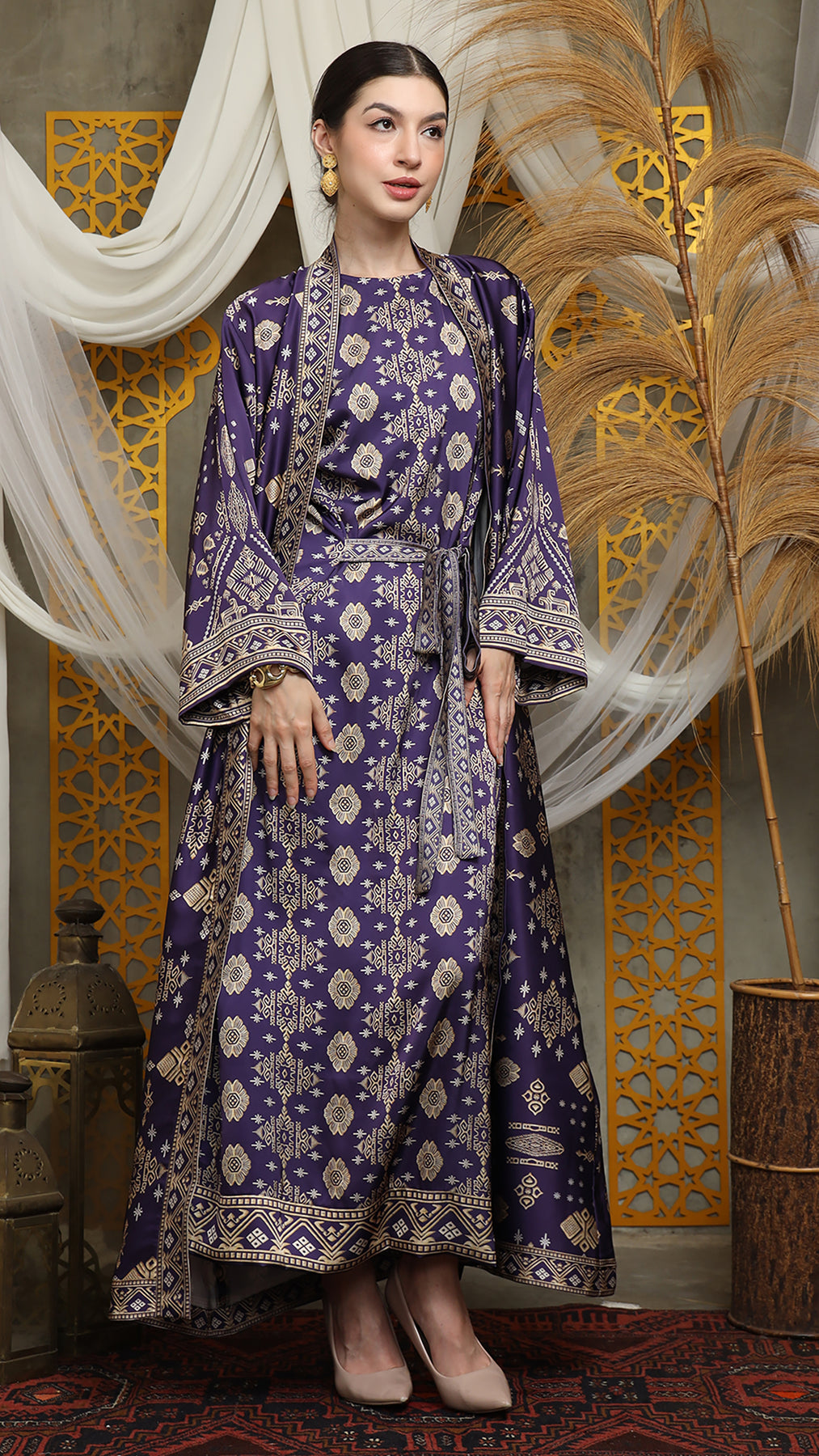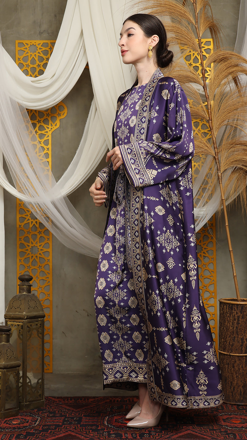 Outerwear is crafted from premium satin. It comes as a 2-piece set: an outer layer and an inner layer. The inner piece features a beautiful patterned design with a back button for added charm. Elegant and versatile, it’s perfect for any occasion, offering a timeless blend of sophistication and comfort.