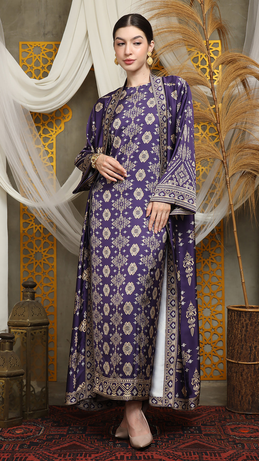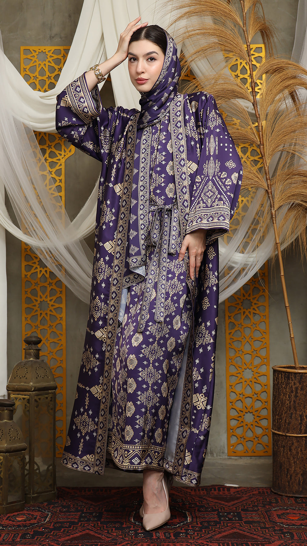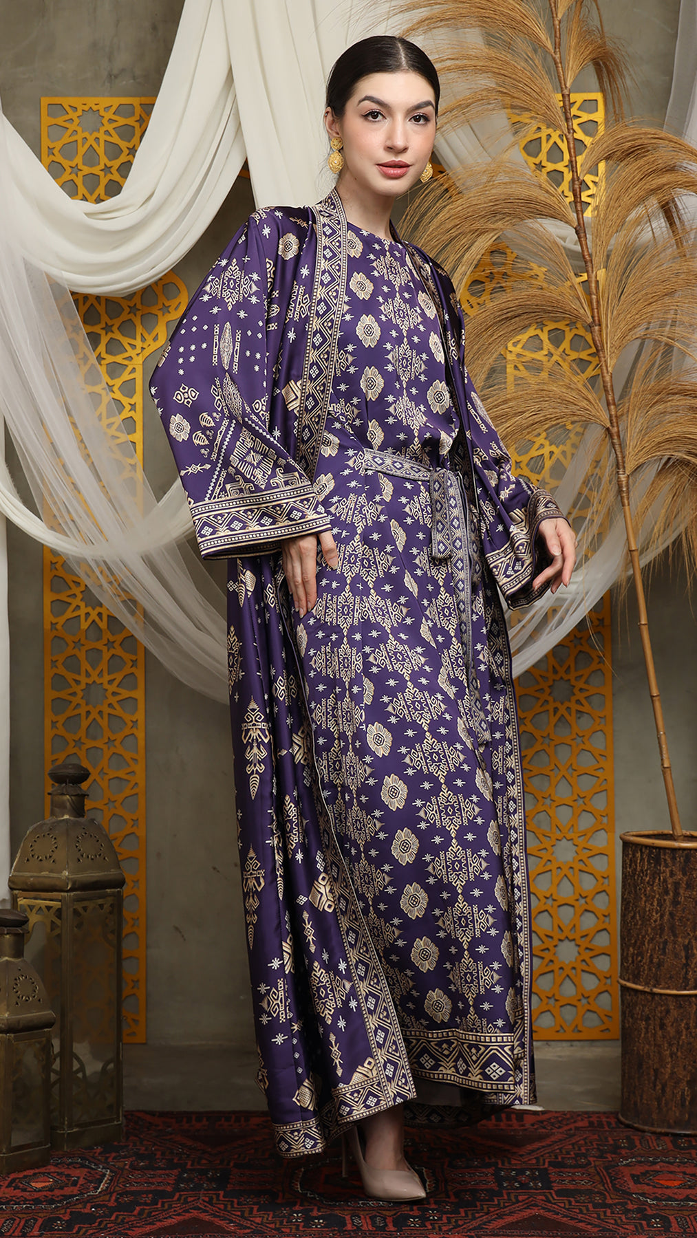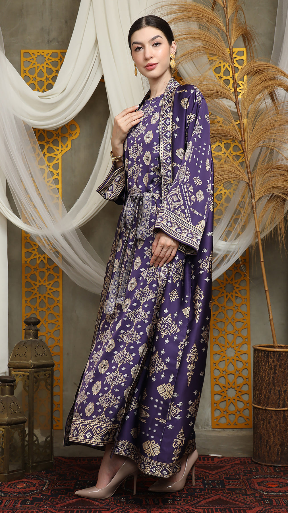 Outerwear is crafted from premium satin. It comes as a 2-piece set: an outer layer and an inner layer. The inner piece features a beautiful patterned design with a back button for added charm. Elegant and versatile, it’s perfect for any occasion, offering a timeless blend of sophistication and comfort.