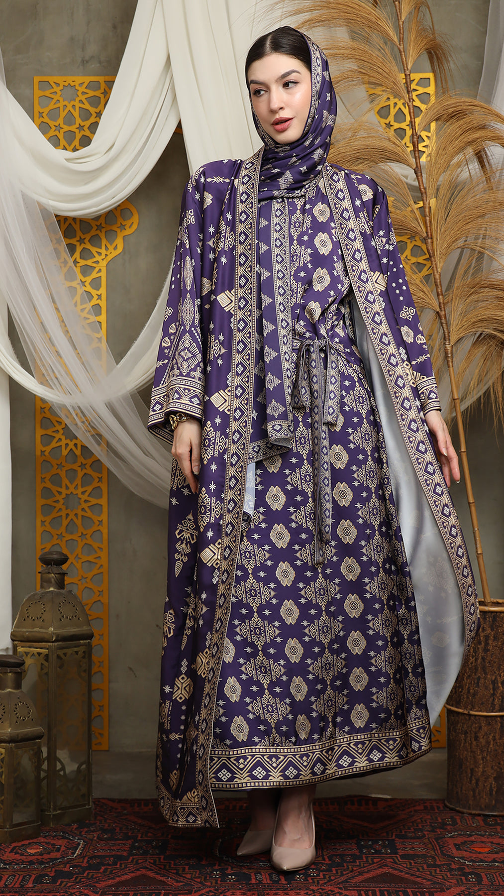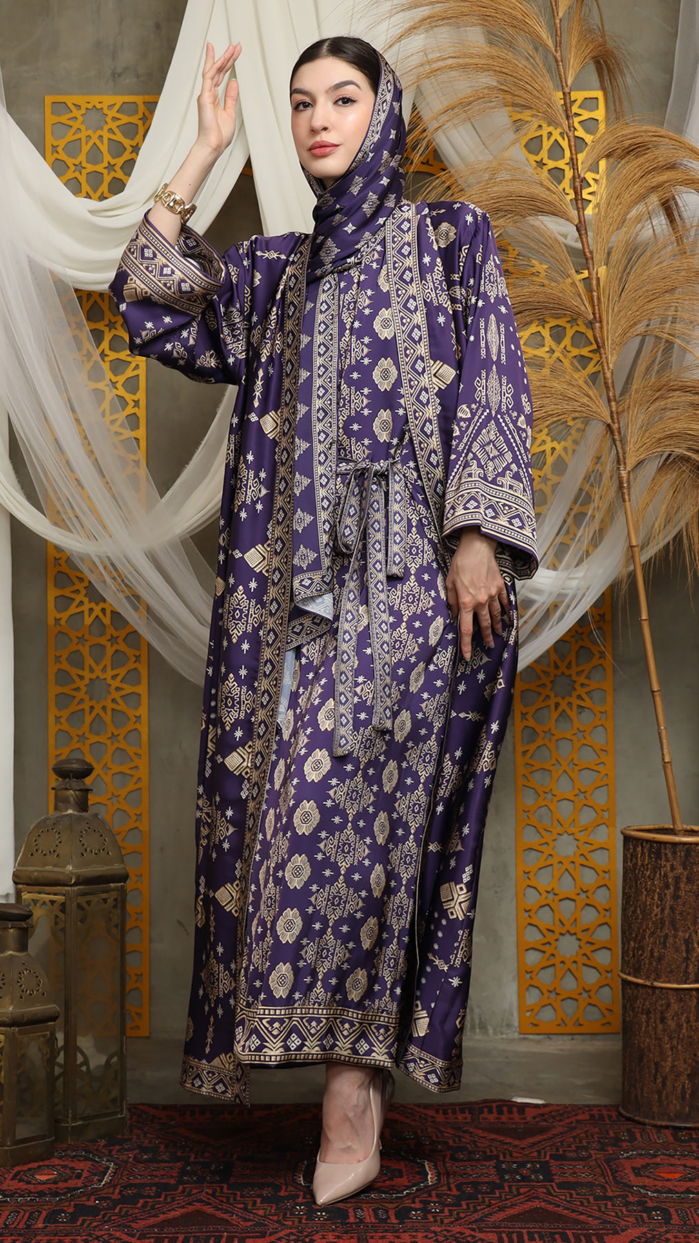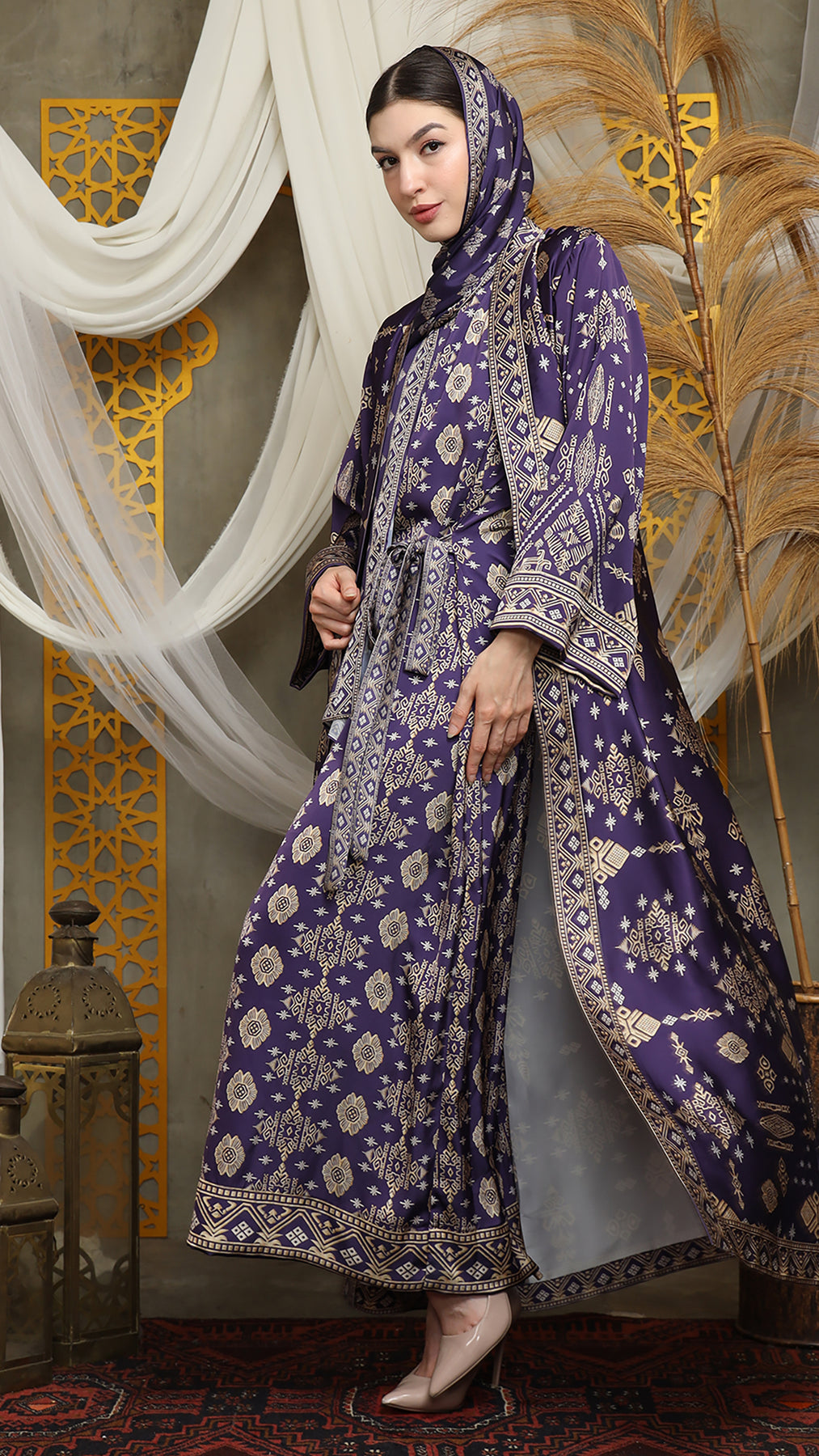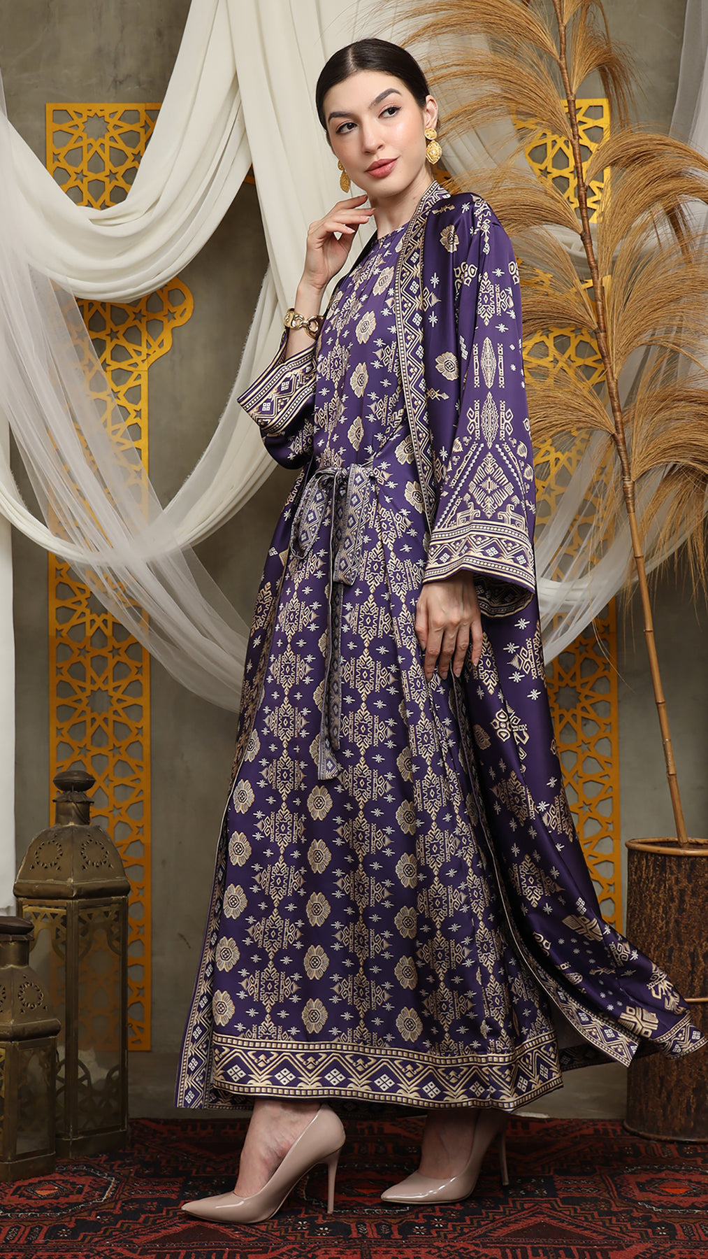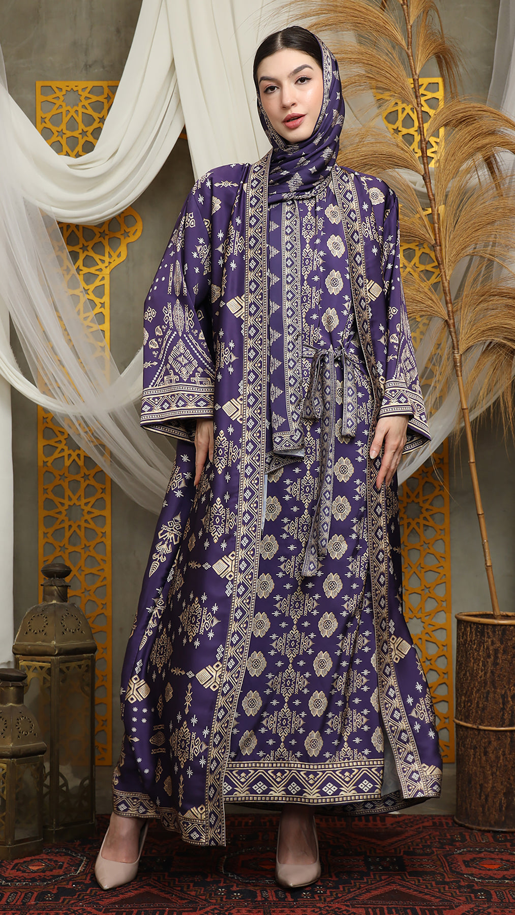 Outerwear is crafted from premium satin. It comes as a 2-piece set: an outer layer and an inner layer. The inner piece features a beautiful patterned design with a back button for added charm. Elegant and versatile, it’s perfect for any occasion, offering a timeless blend of sophistication and comfort.
