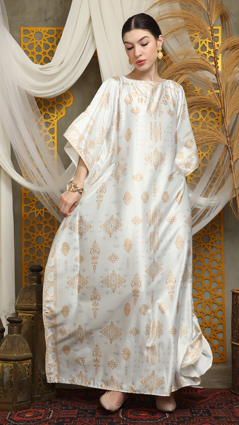 This featured kaftan is a true masterpiece. It offers a flattering fit that enhances your silhouette from every angle. Made from non-transparent fabric, it ensures confidence and comfort, allowing you to move with grace and poise.