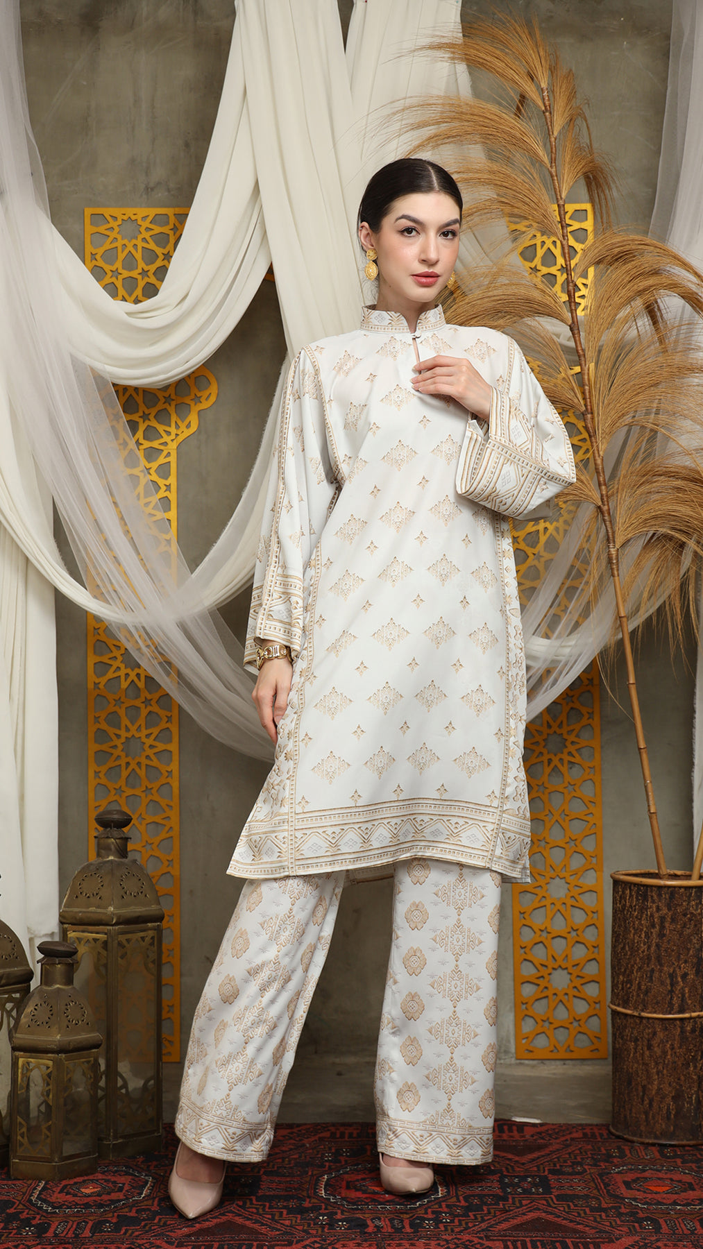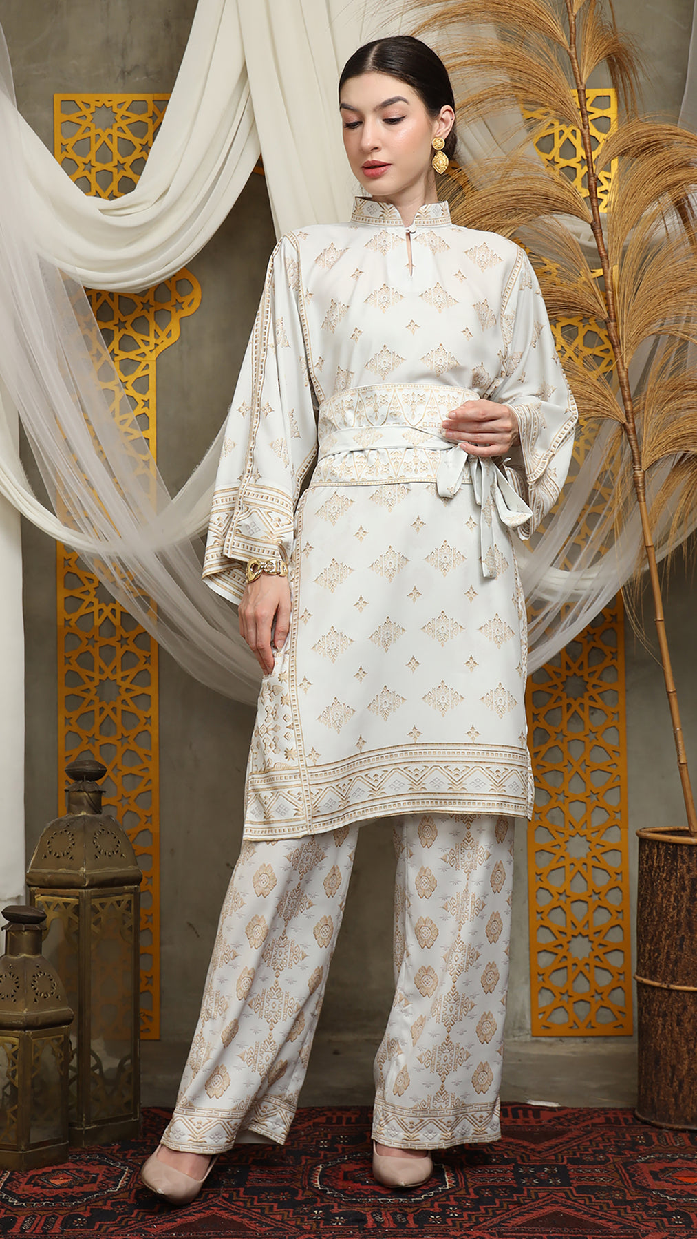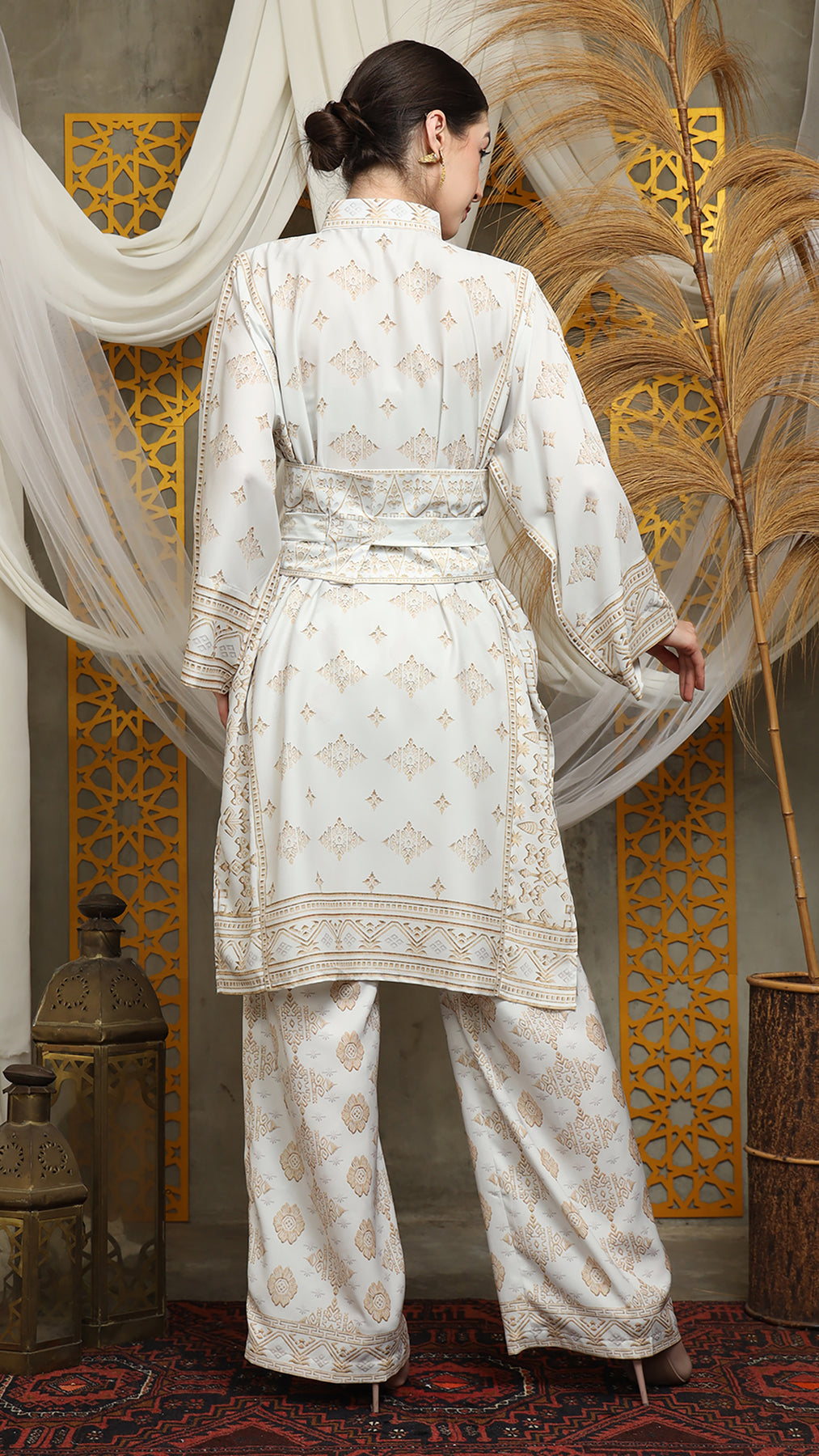 This featured set with pants is a true masterpiece. It offers a flattering fit that enhances your silhouette from every angle. Made from non-transparent fabric, it ensures confidence and comfort, allowing you to move with grace and poise.