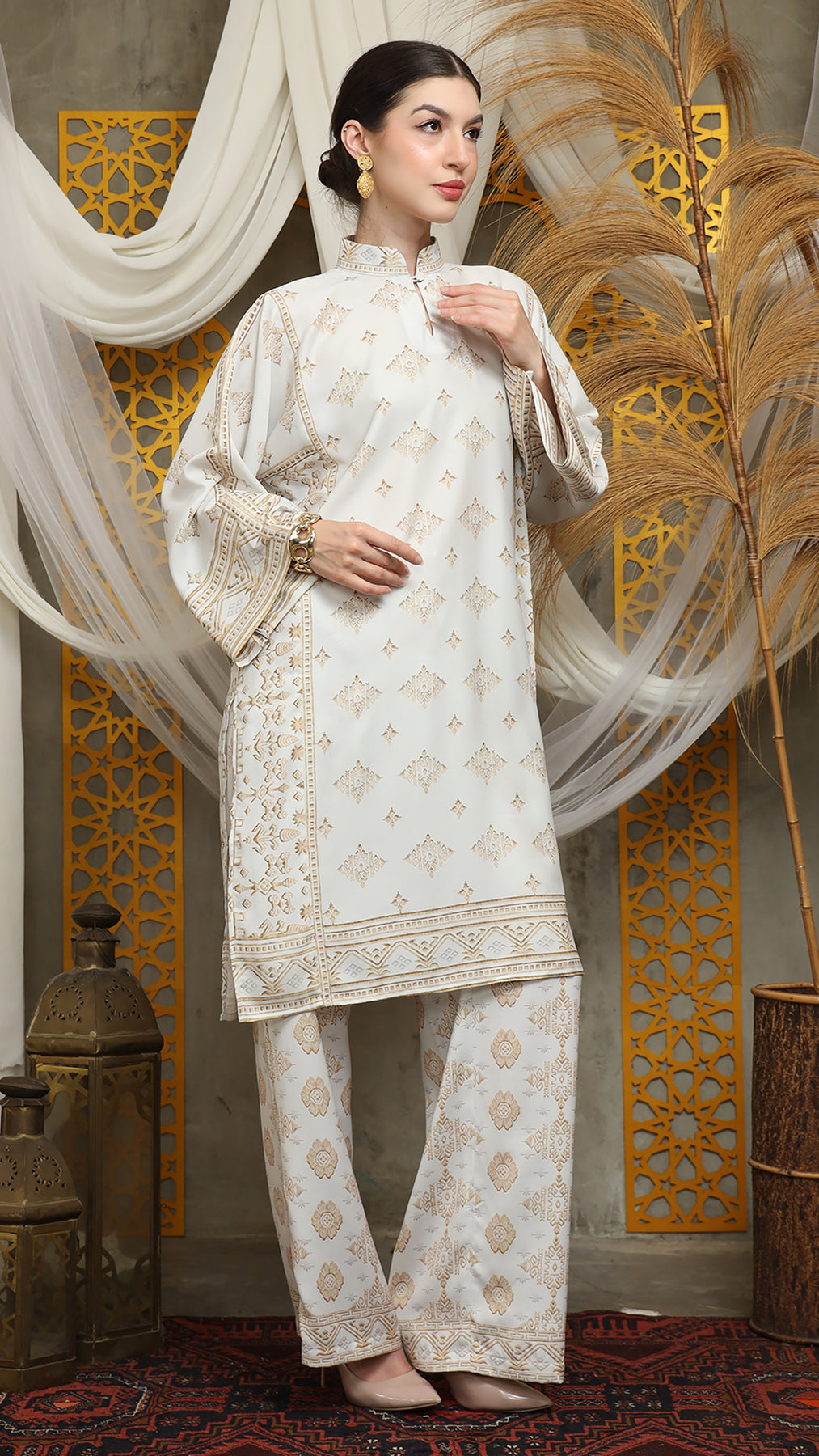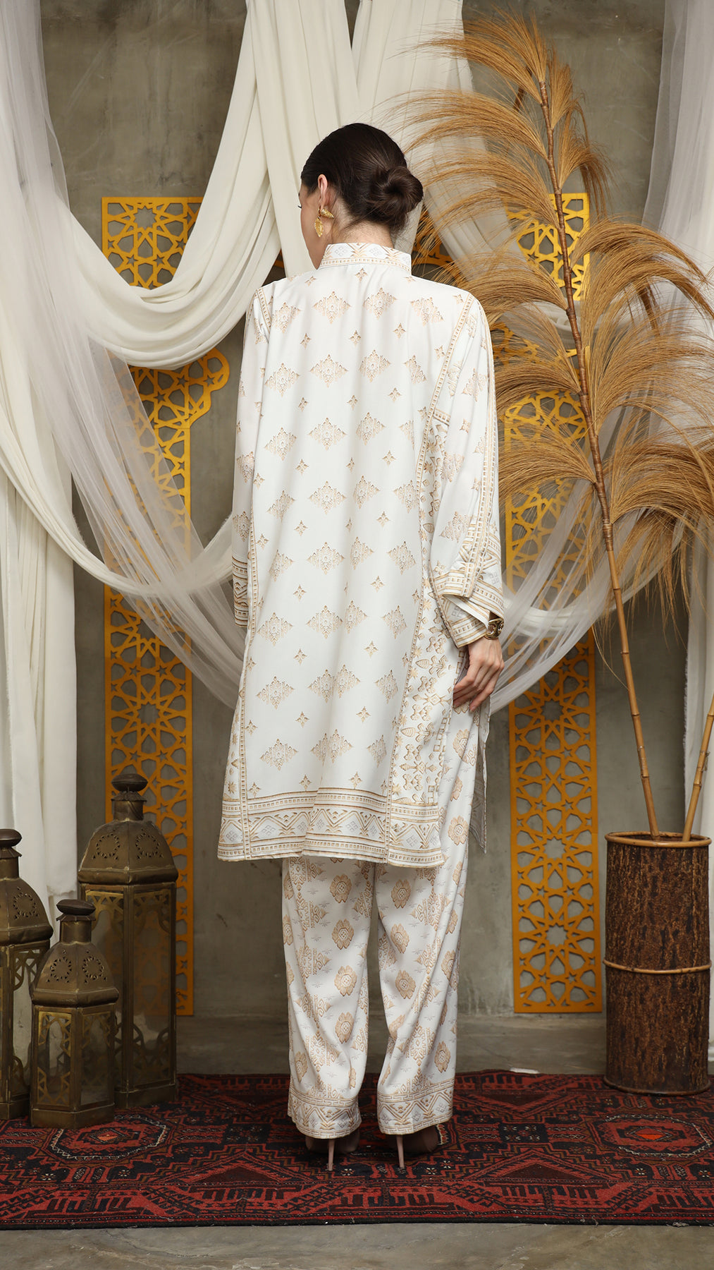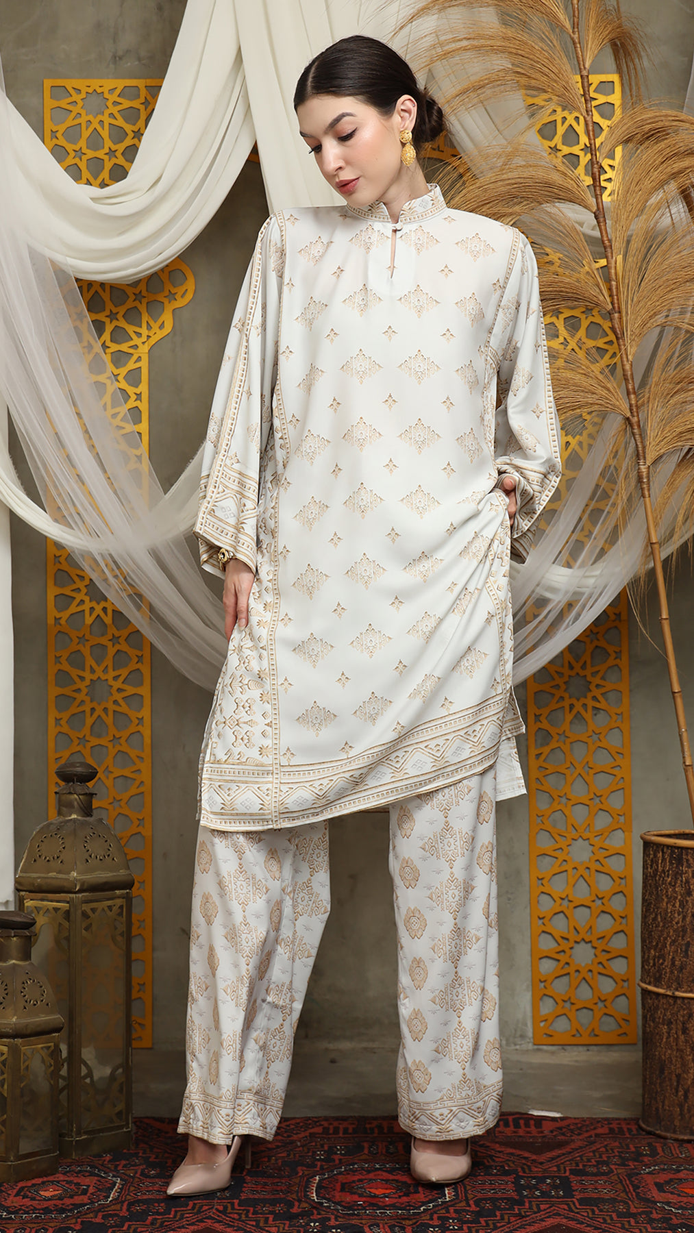 This featured set with pants is a true masterpiece. It offers a flattering fit that enhances your silhouette from every angle. Made from non-transparent fabric, it ensures confidence and comfort, allowing you to move with grace and poise.