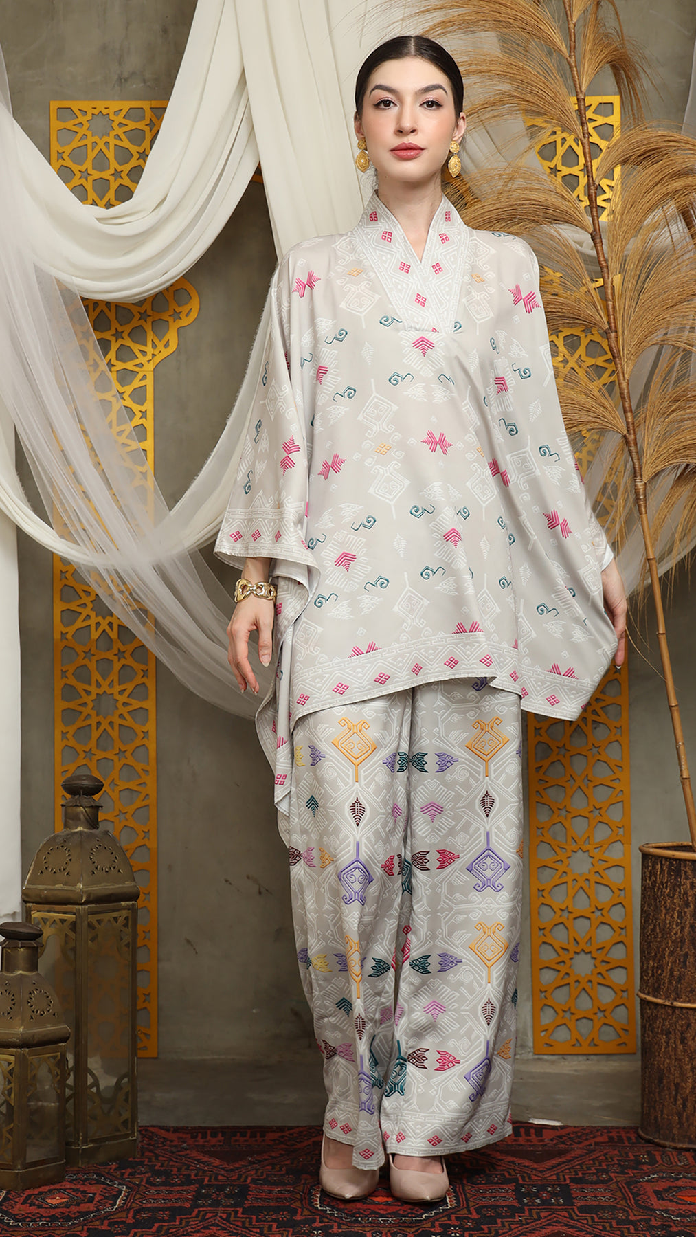 Light Grey Lombok Songket Vneck Pants Set