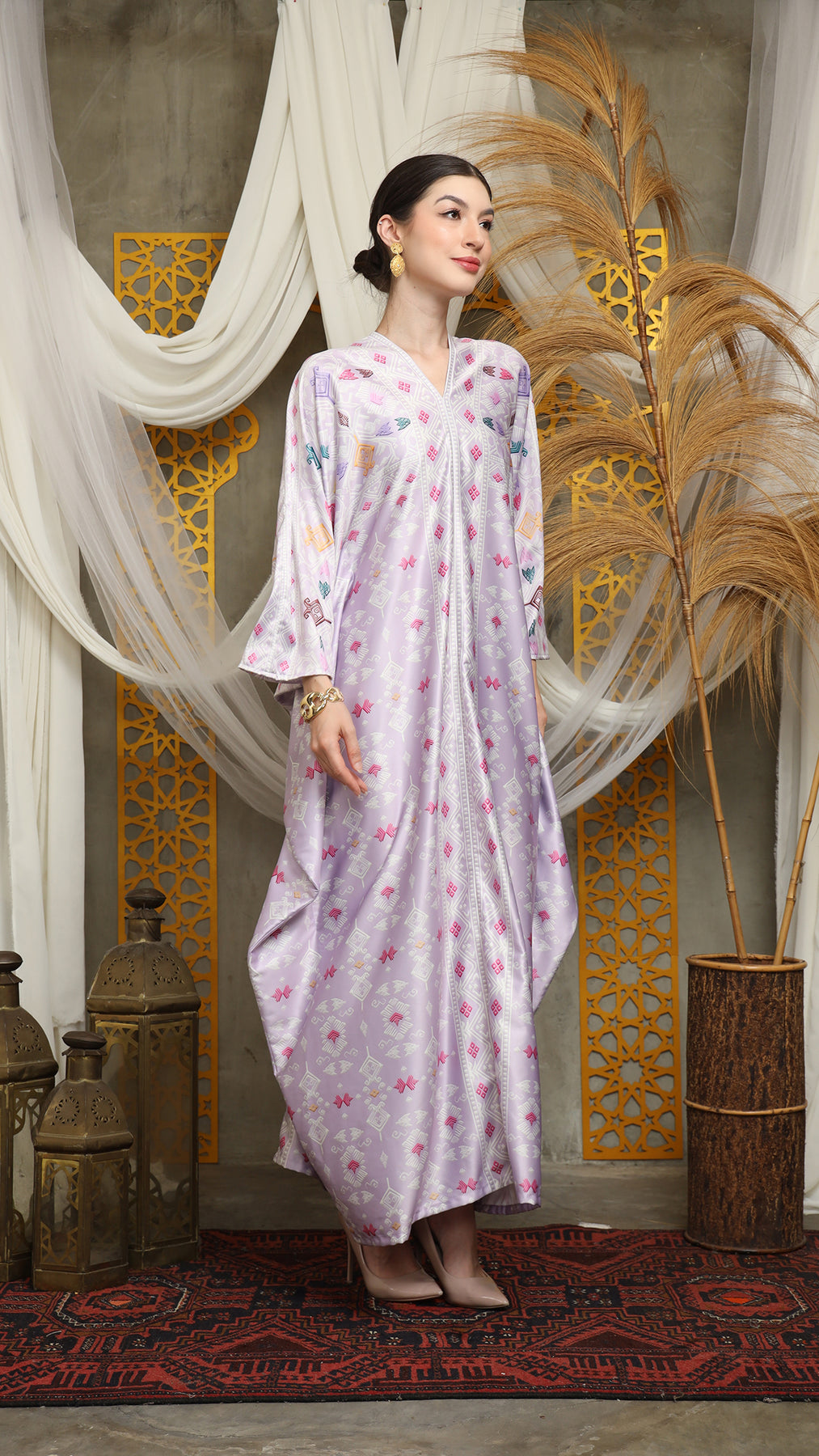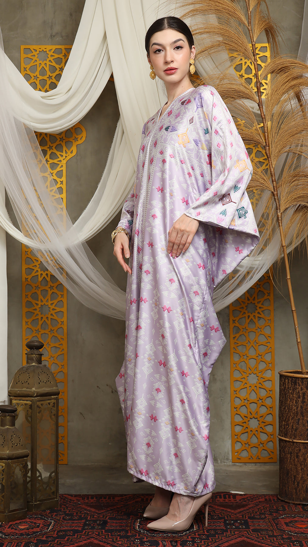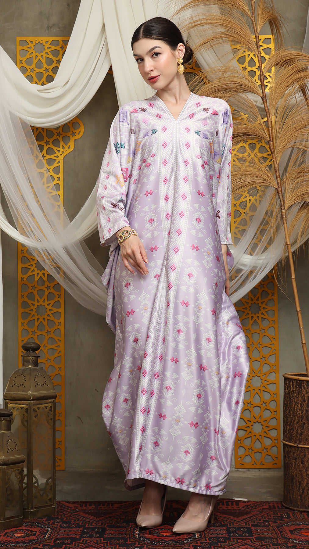 This featured kaftan is a true masterpiece. It offers a flattering fit that enhances your silhouette from every angle. Made from non-transparent fabric, it ensures confidence and comfort, allowing you to move with grace and poise.