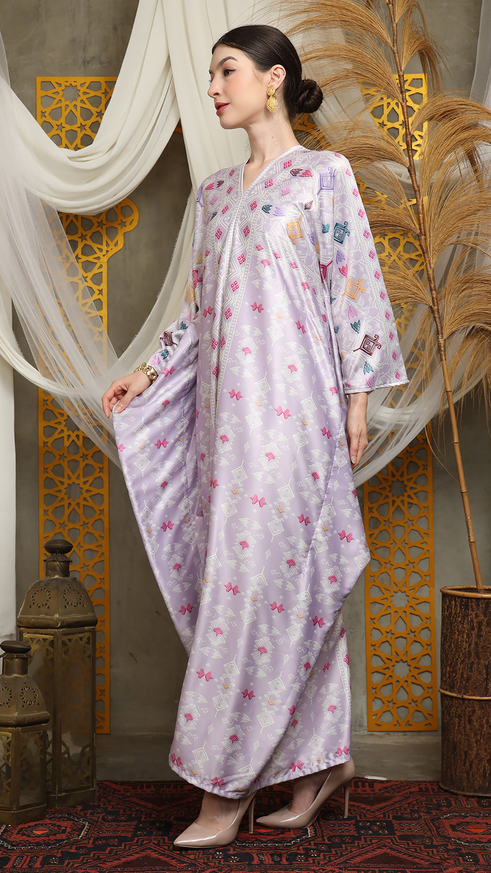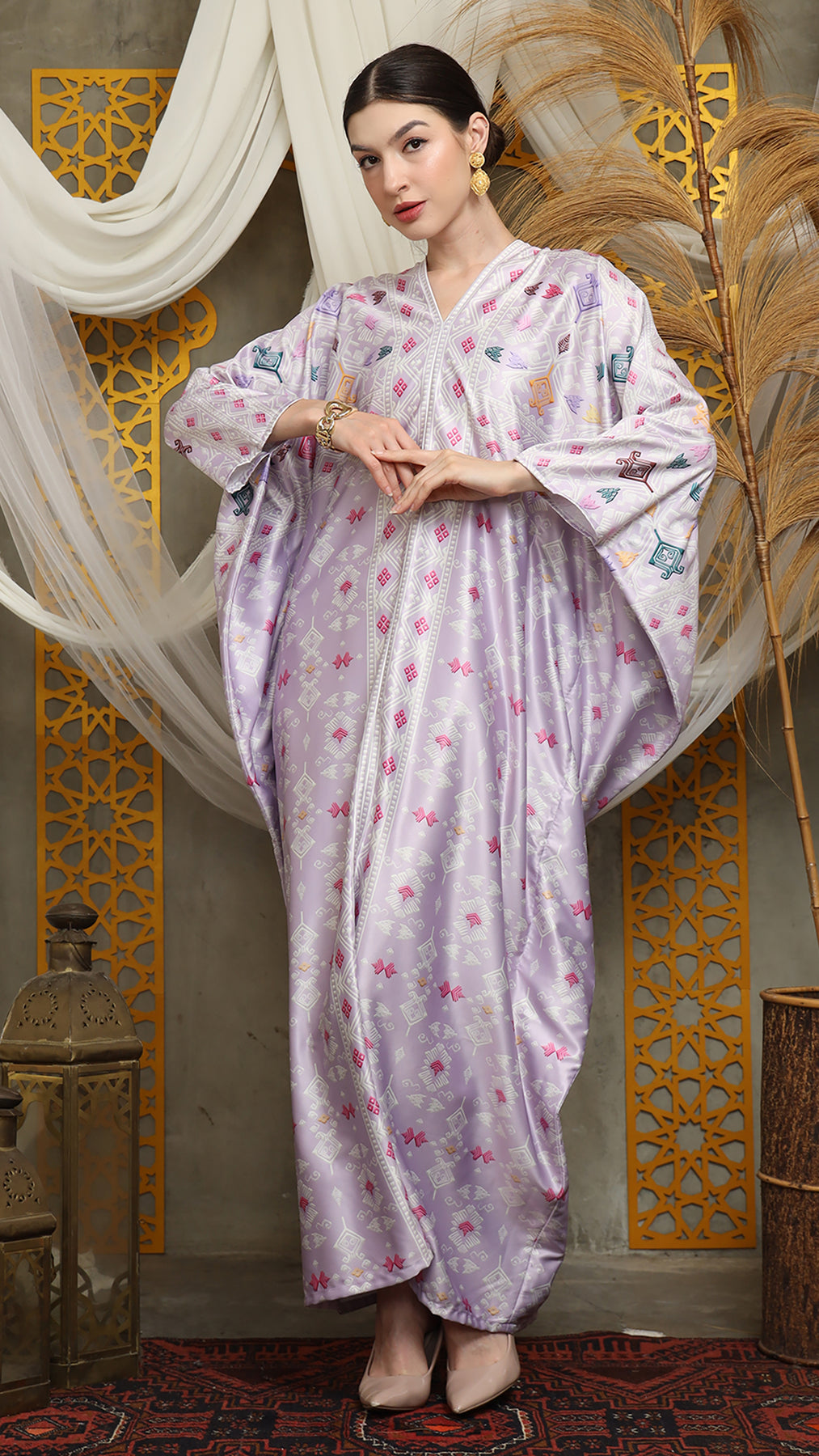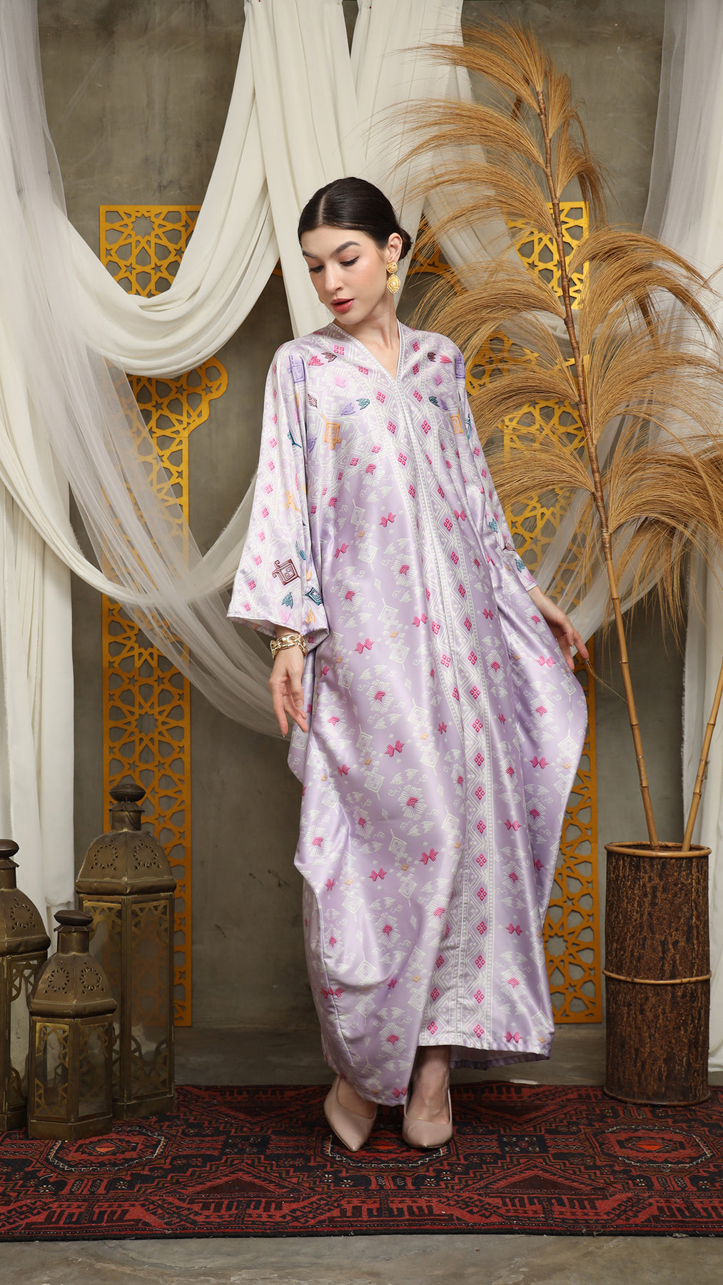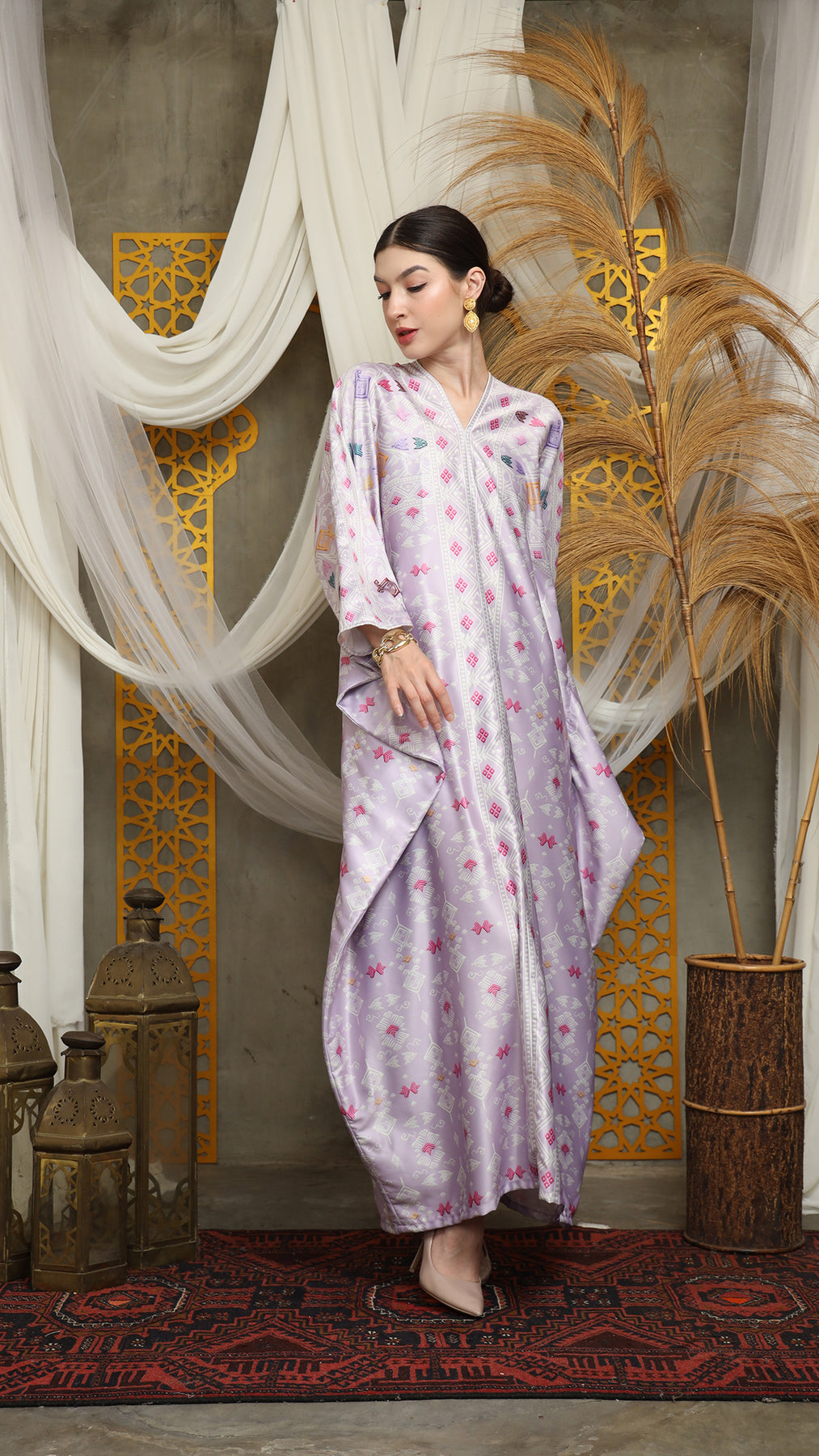 This featured kaftan is a true masterpiece. It offers a flattering fit that enhances your silhouette from every angle. Made from non-transparent fabric, it ensures confidence and comfort, allowing you to move with grace and poise.