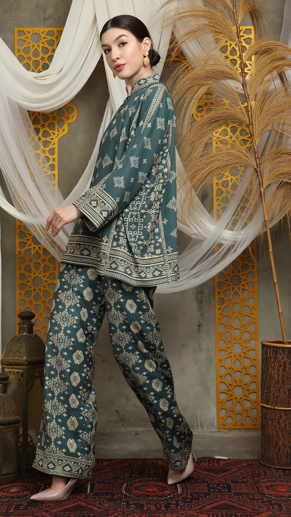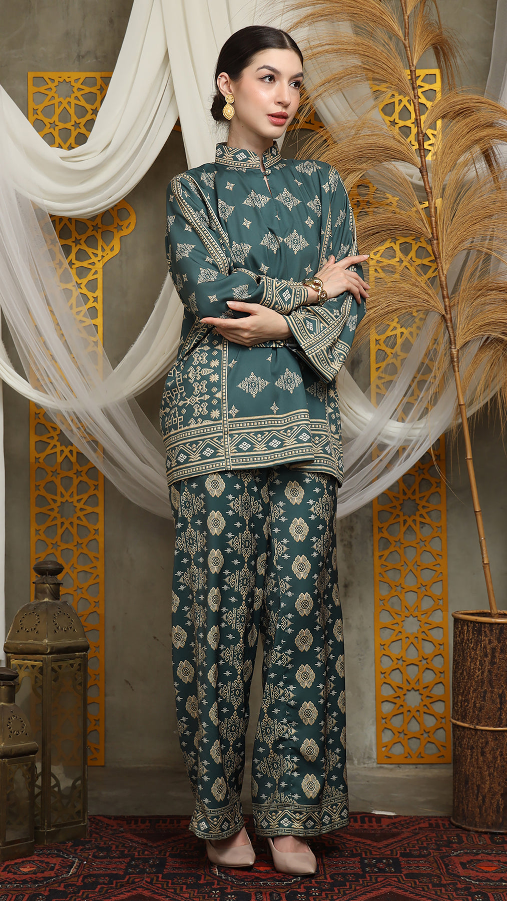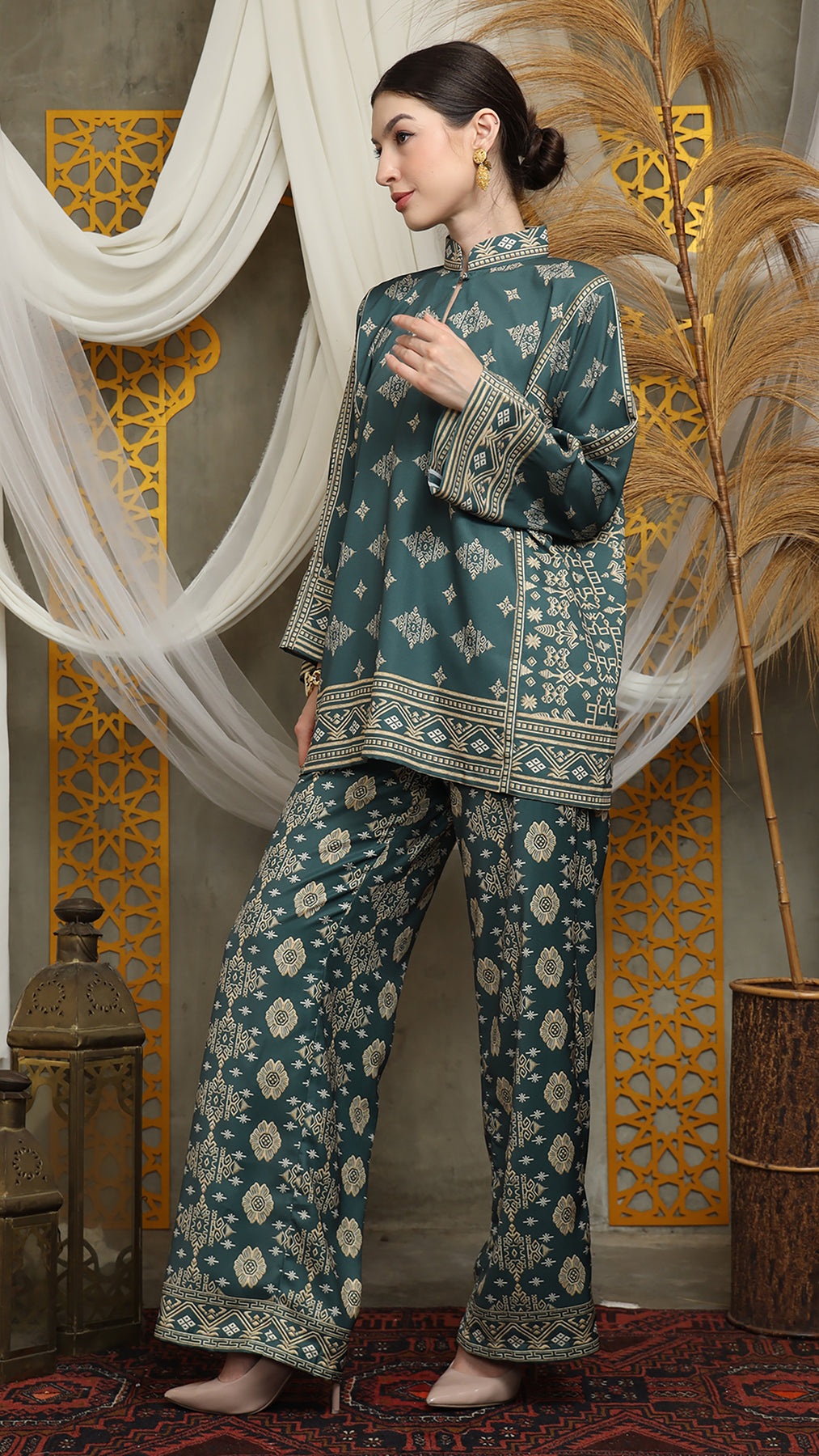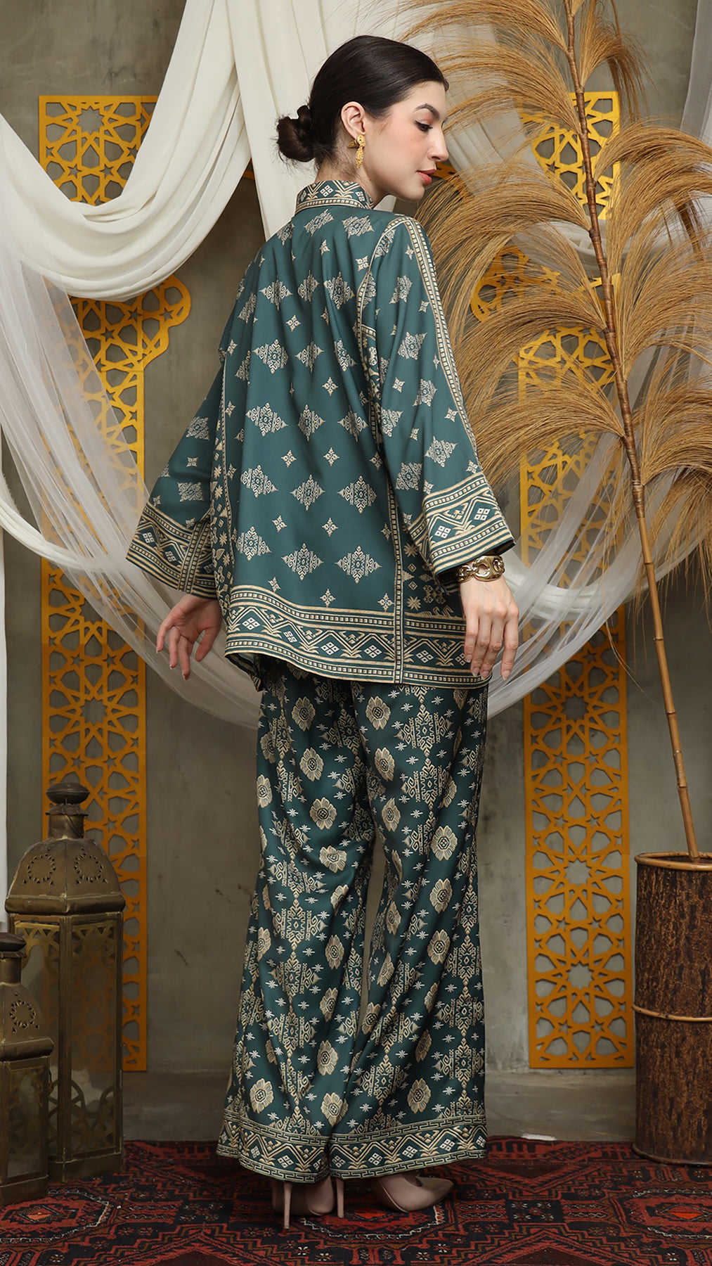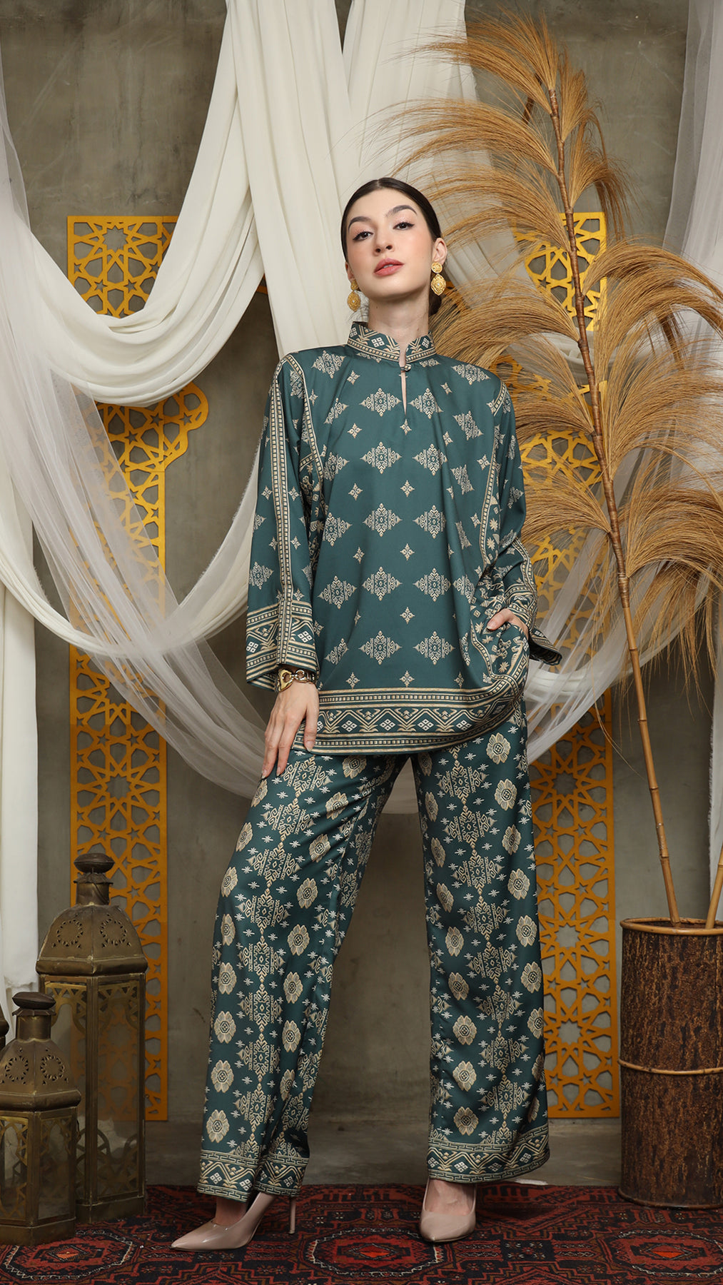 This featured set with pants is a true masterpiece. It offers a flattering fit that enhances your silhouette from every angle. Made from non-transparent fabric, it ensures confidence and comfort, allowing you to move with grace and poise.