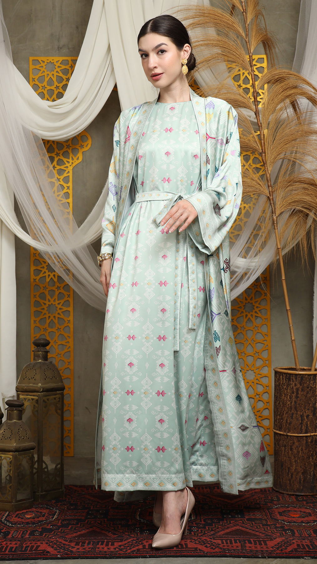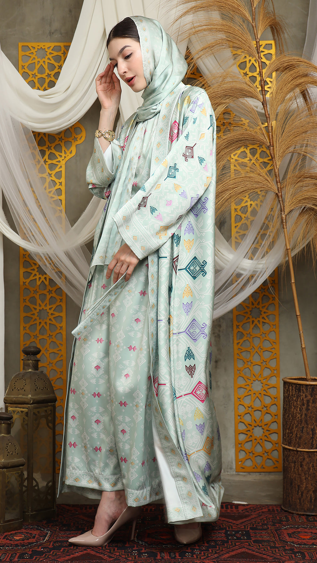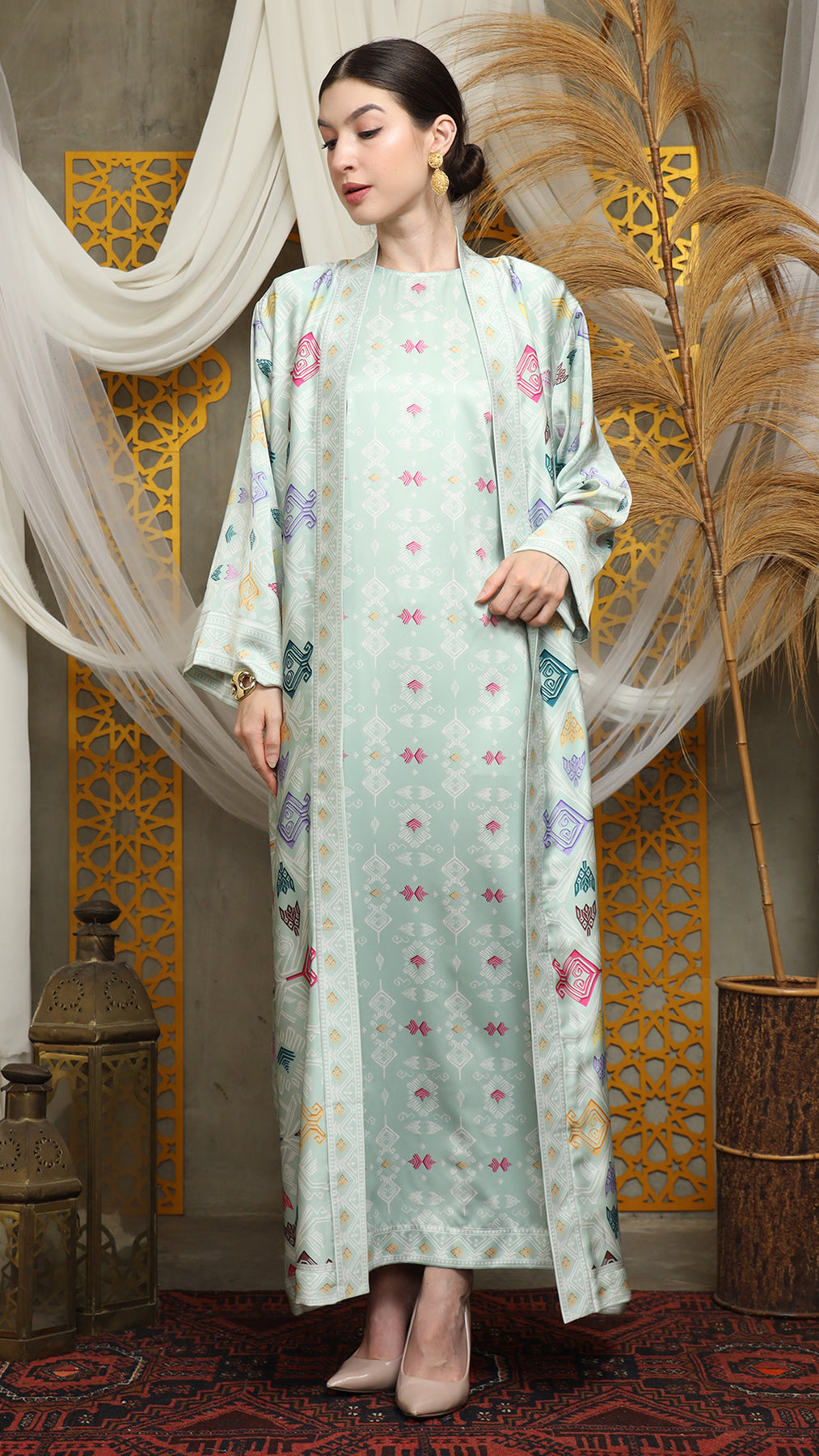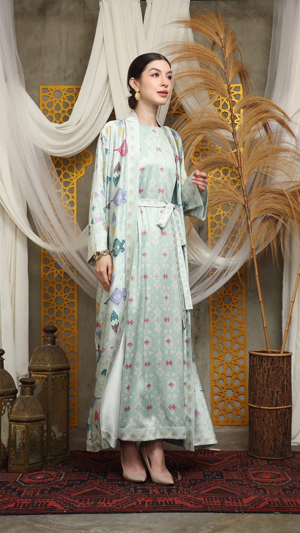 Outerwear is crafted from premium satin. It comes as a 2-piece set: an outer layer and an inner layer. The inner piece features a beautiful patterned design with a back button for added charm. Elegant and versatile, it’s perfect for any occasion, offering a timeless blend of sophistication and comfort.