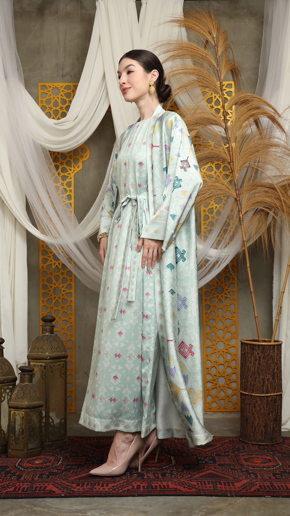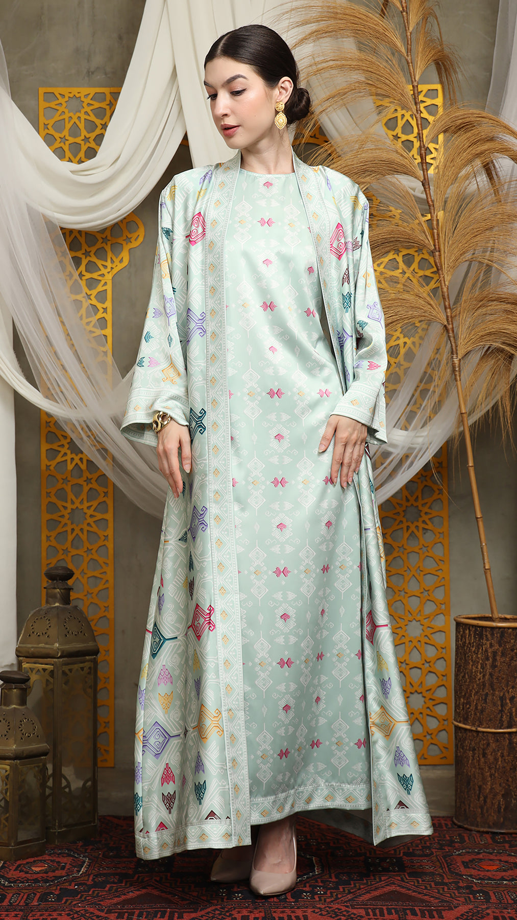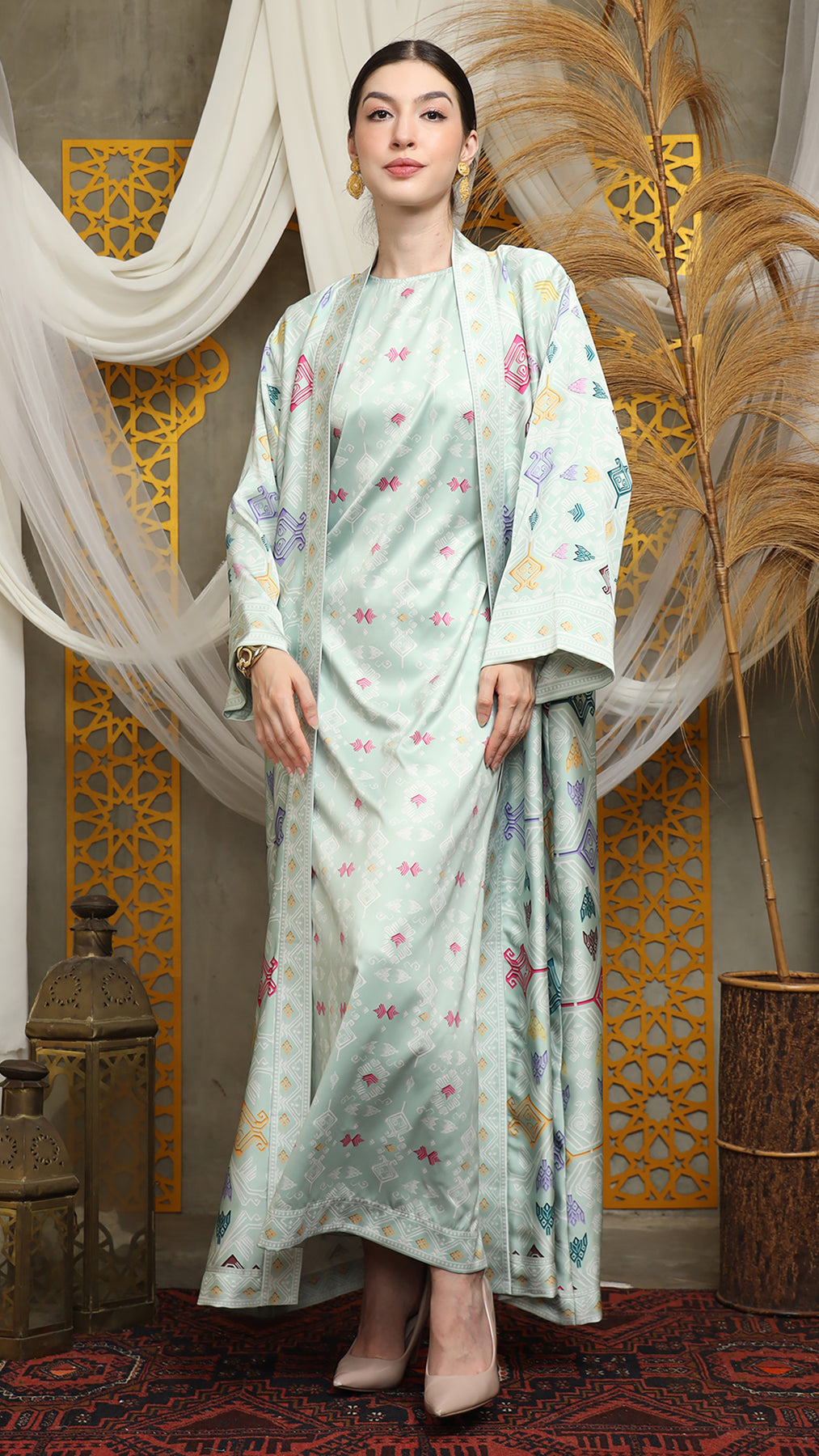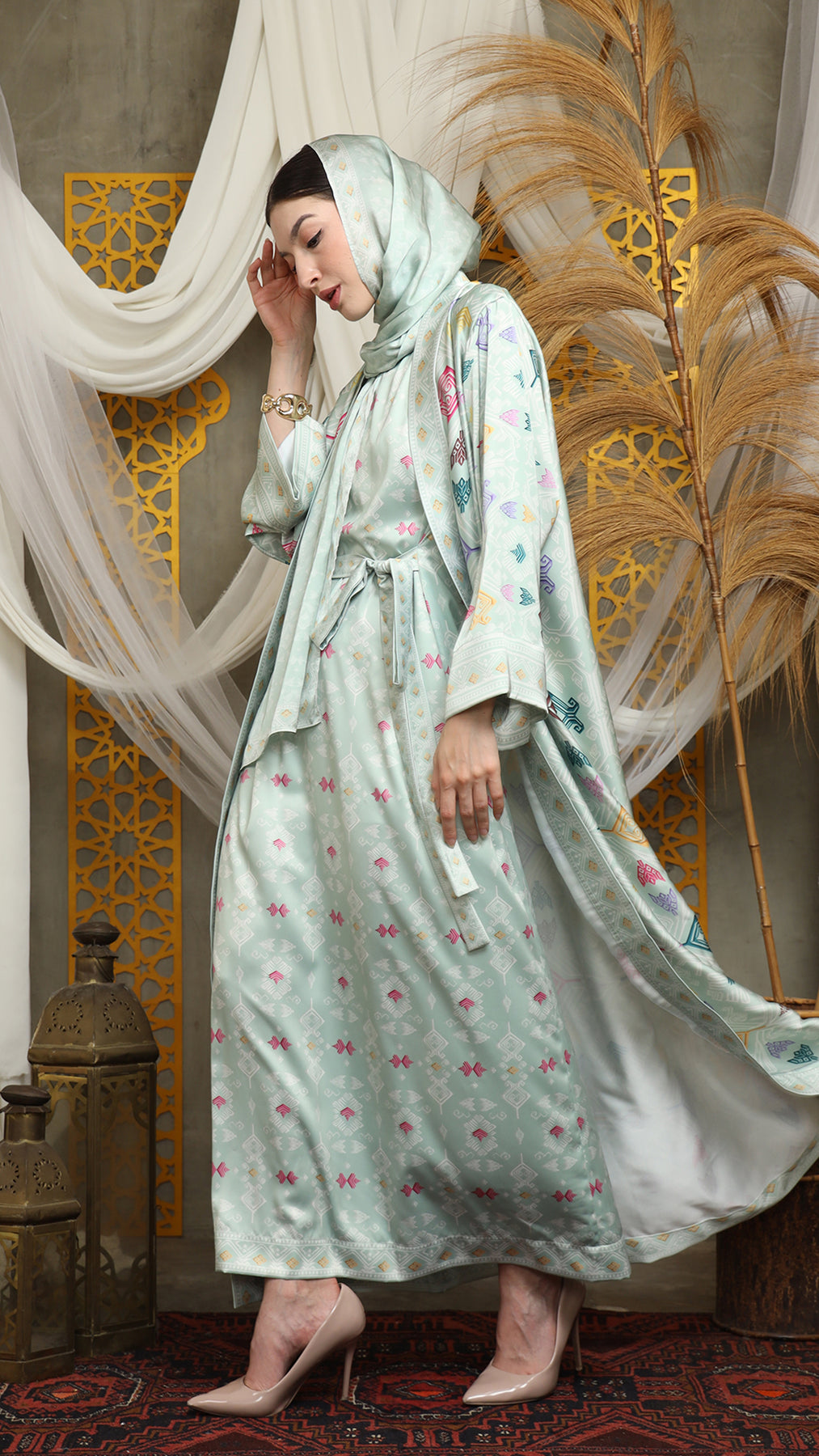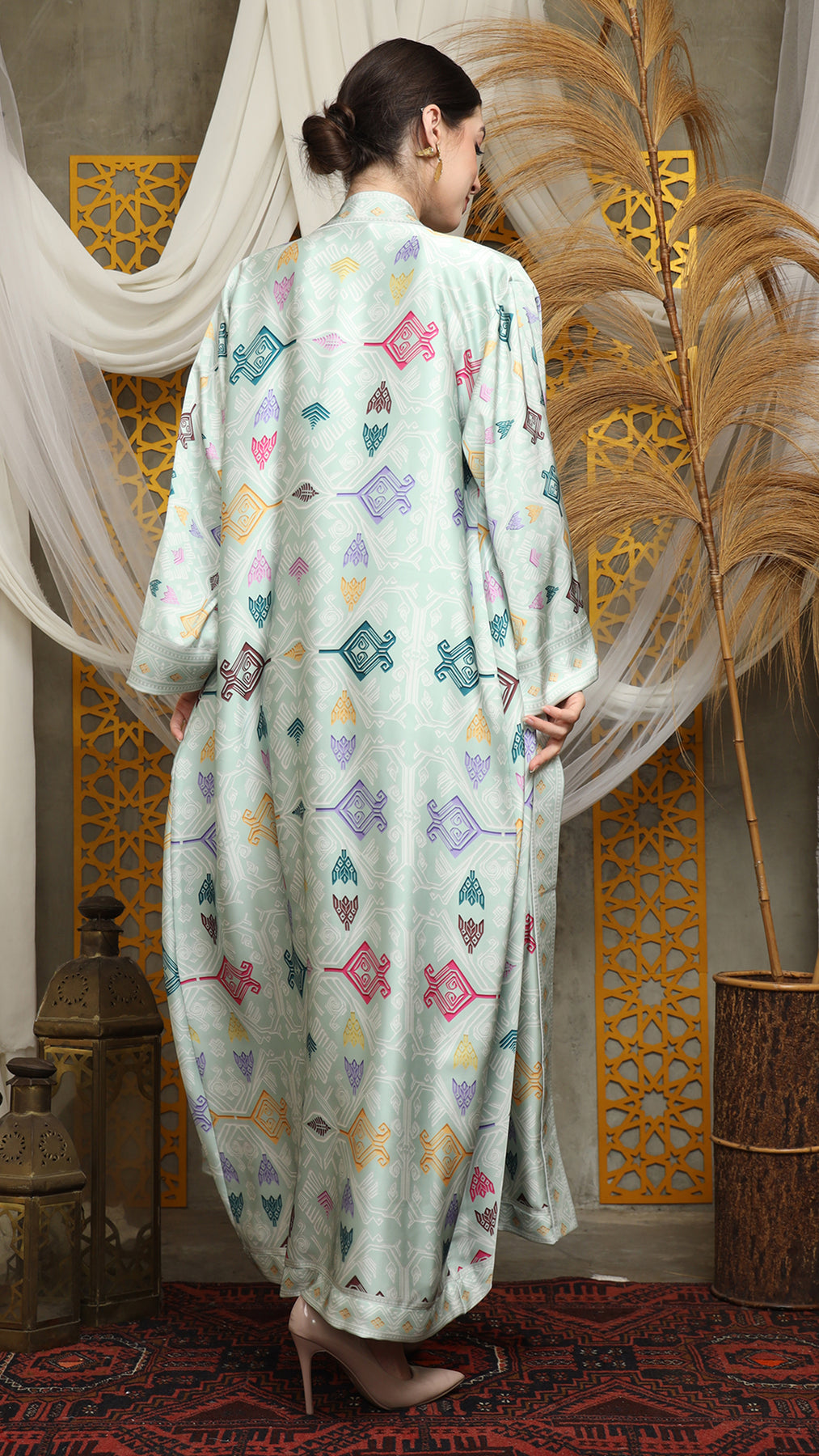 Outerwear is crafted from premium satin. It comes as a 2-piece set: an outer layer and an inner layer. The inner piece features a beautiful patterned design with a back button for added charm. Elegant and versatile, it’s perfect for any occasion, offering a timeless blend of sophistication and comfort.