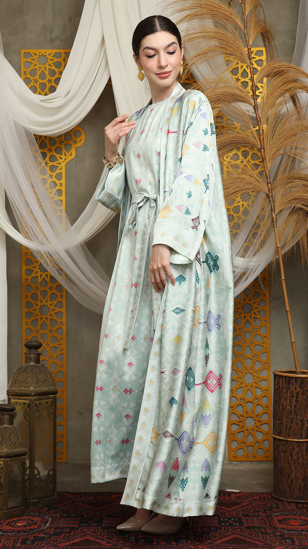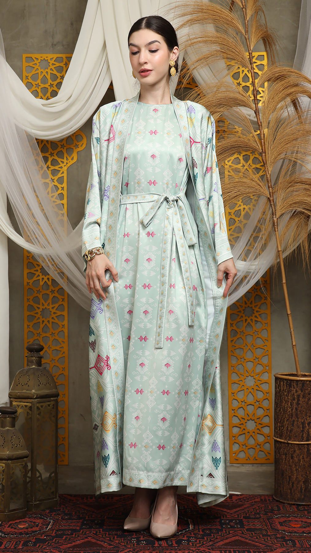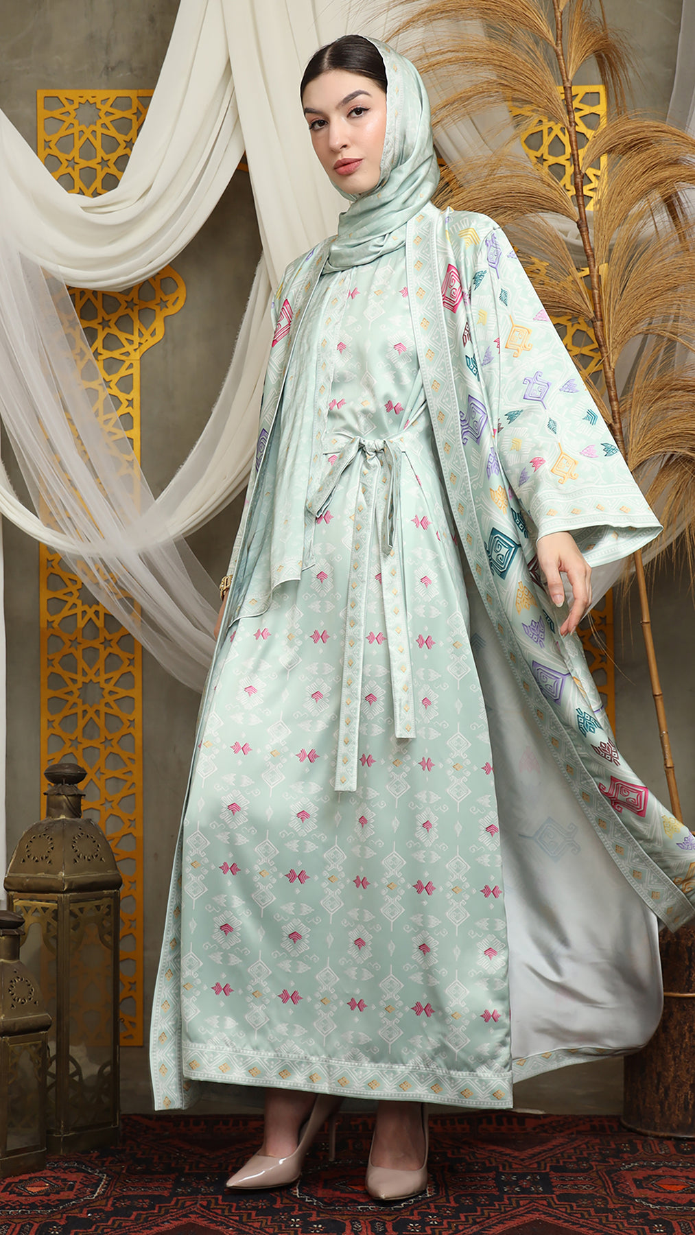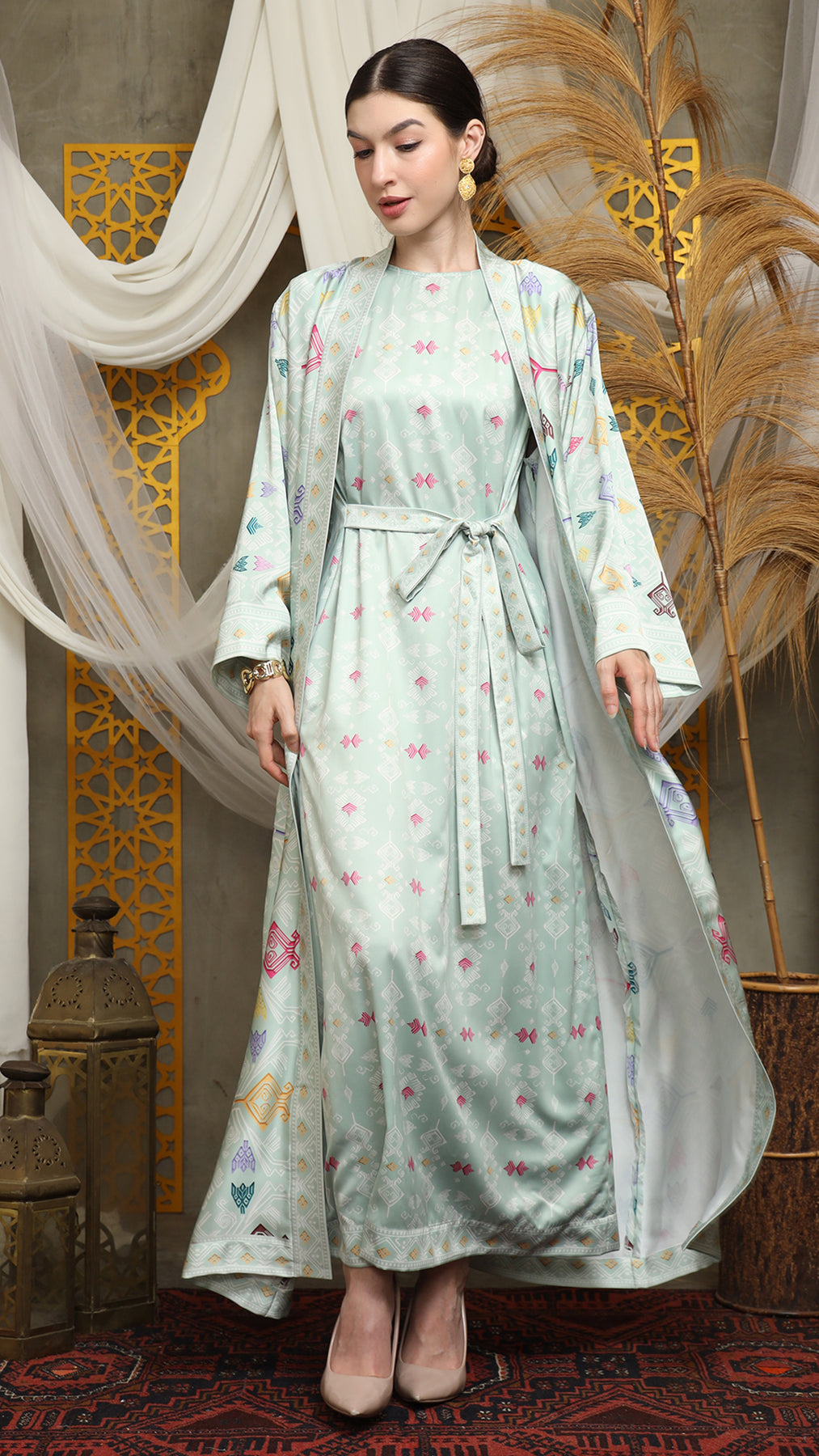 Outerwear is crafted from premium satin. It comes as a 2-piece set: an outer layer and an inner layer. The inner piece features a beautiful patterned design with a back button for added charm. Elegant and versatile, it’s perfect for any occasion, offering a timeless blend of sophistication and comfort.
