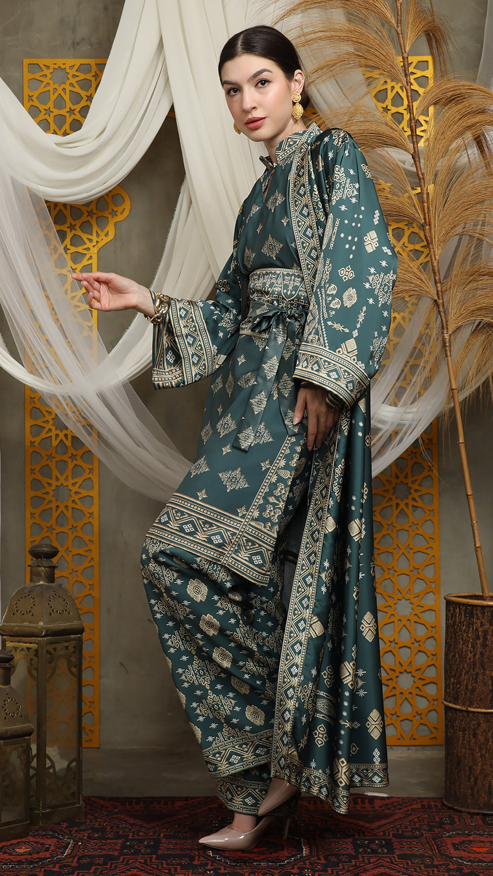 This featured set with pants is a true masterpiece. It offers a flattering fit that enhances your silhouette from every angle. Made from non-transparent fabric, it ensures confidence and comfort, allowing you to move with grace and poise.
