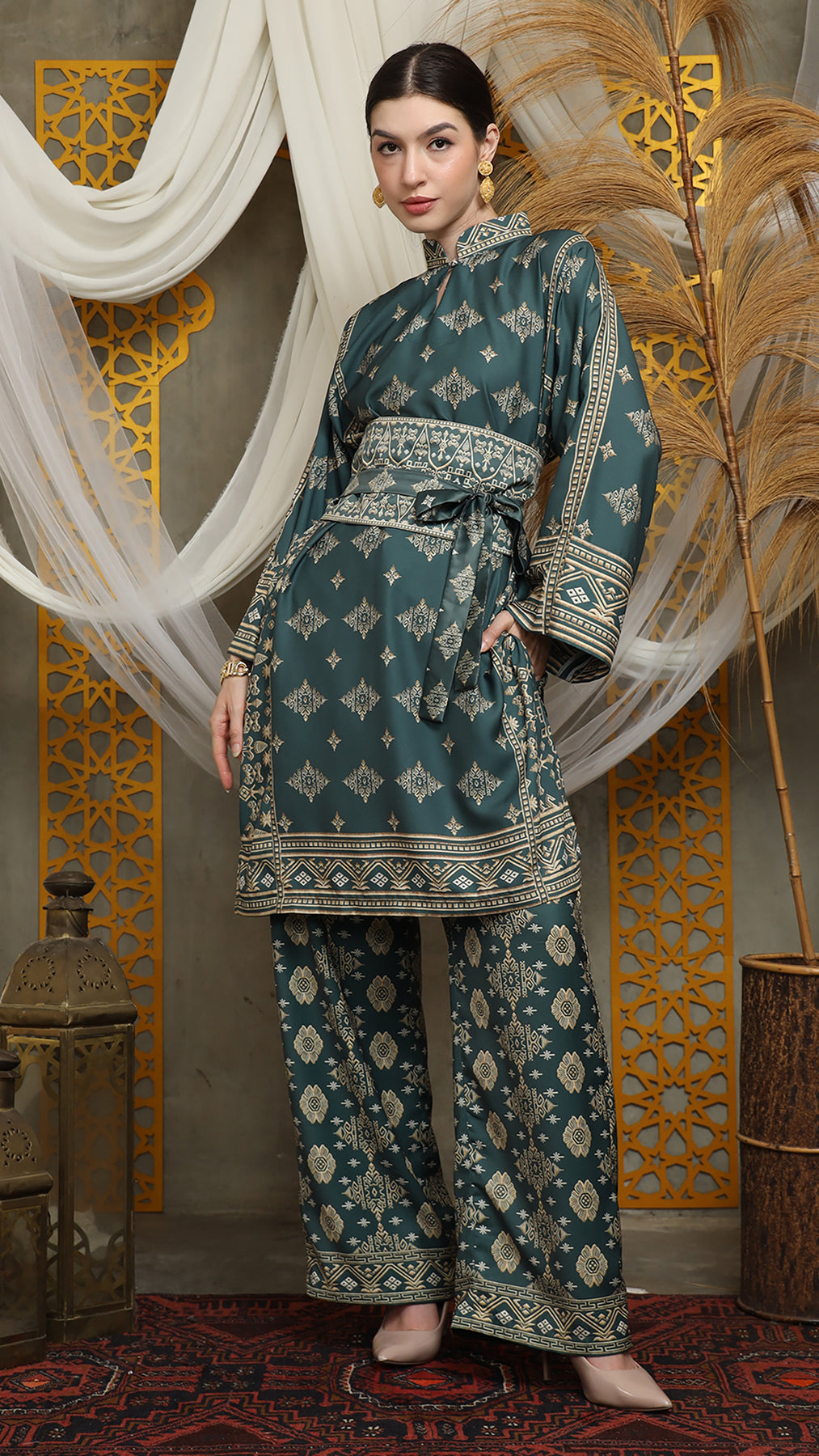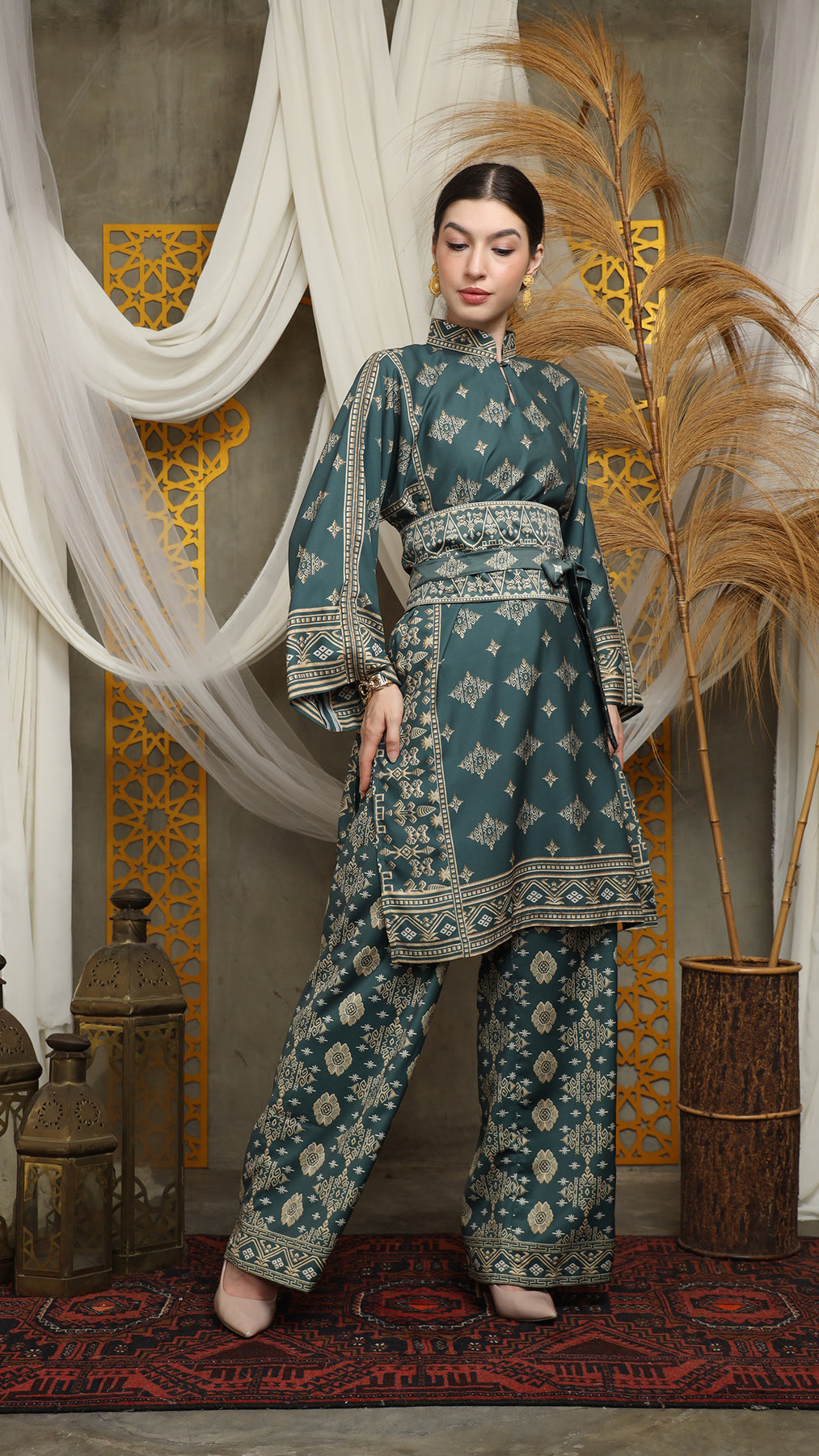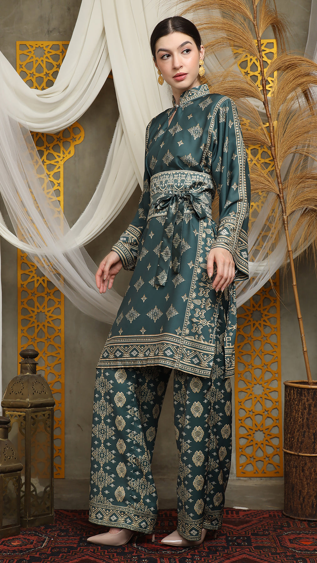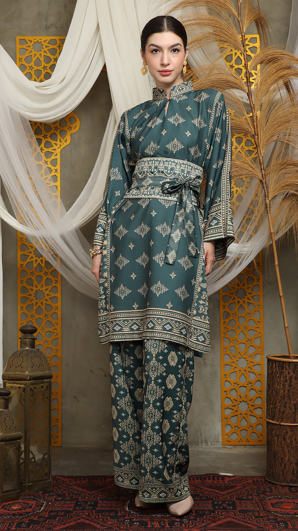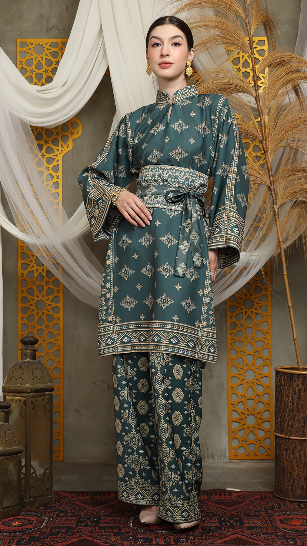 Royal Green Gold Tunic Bali Pants Set