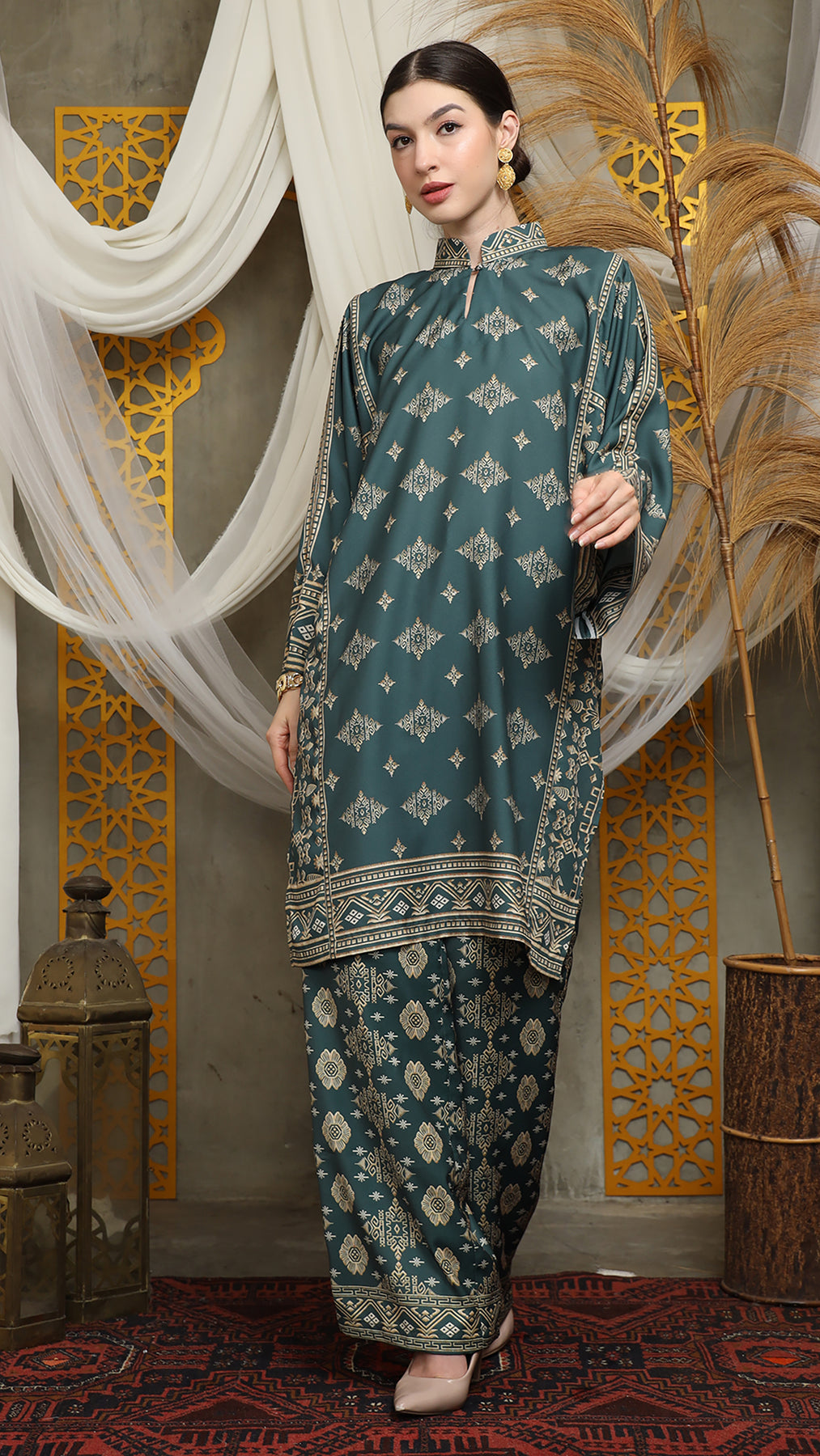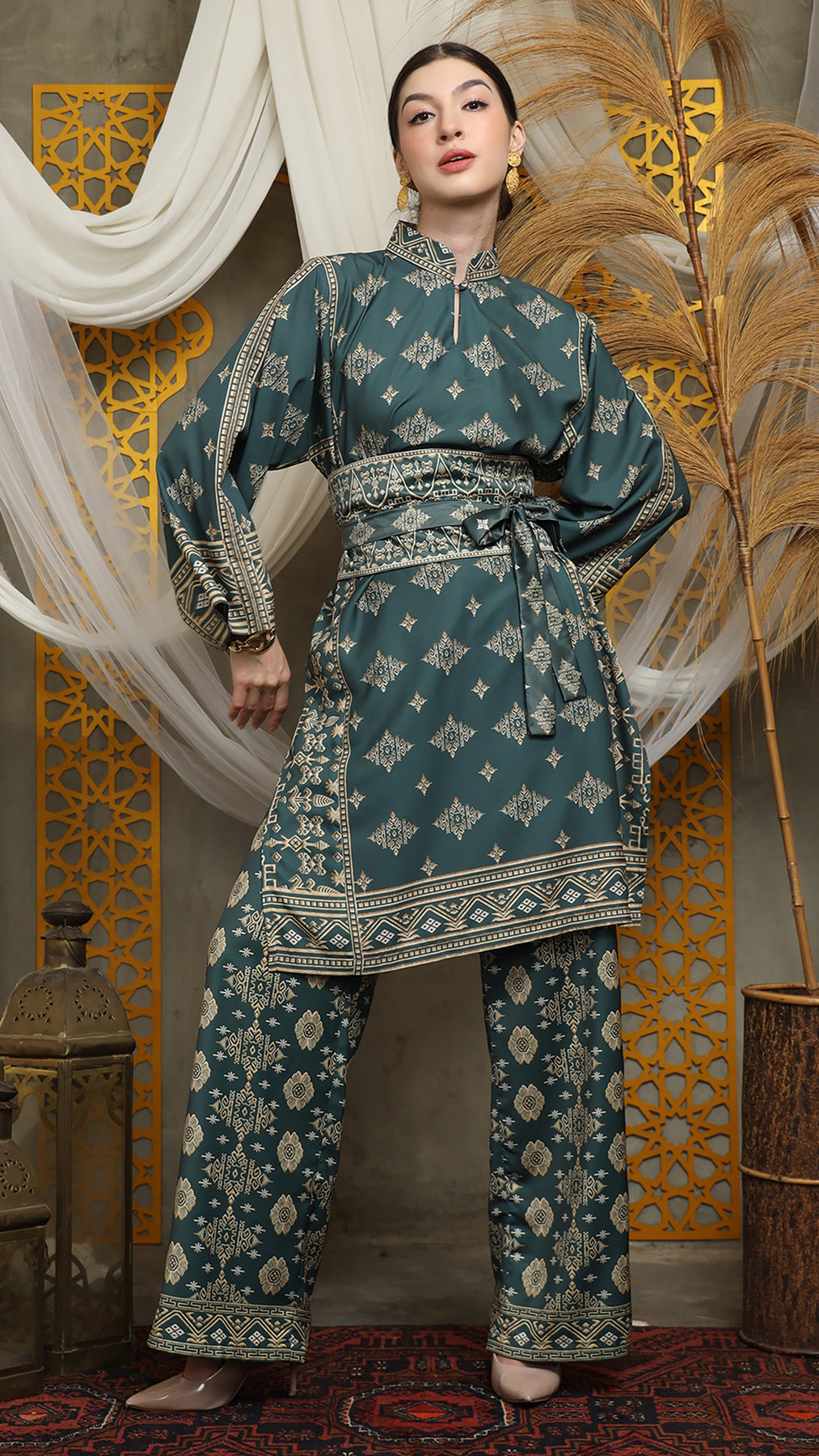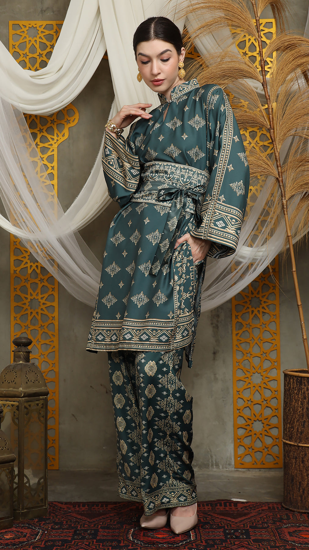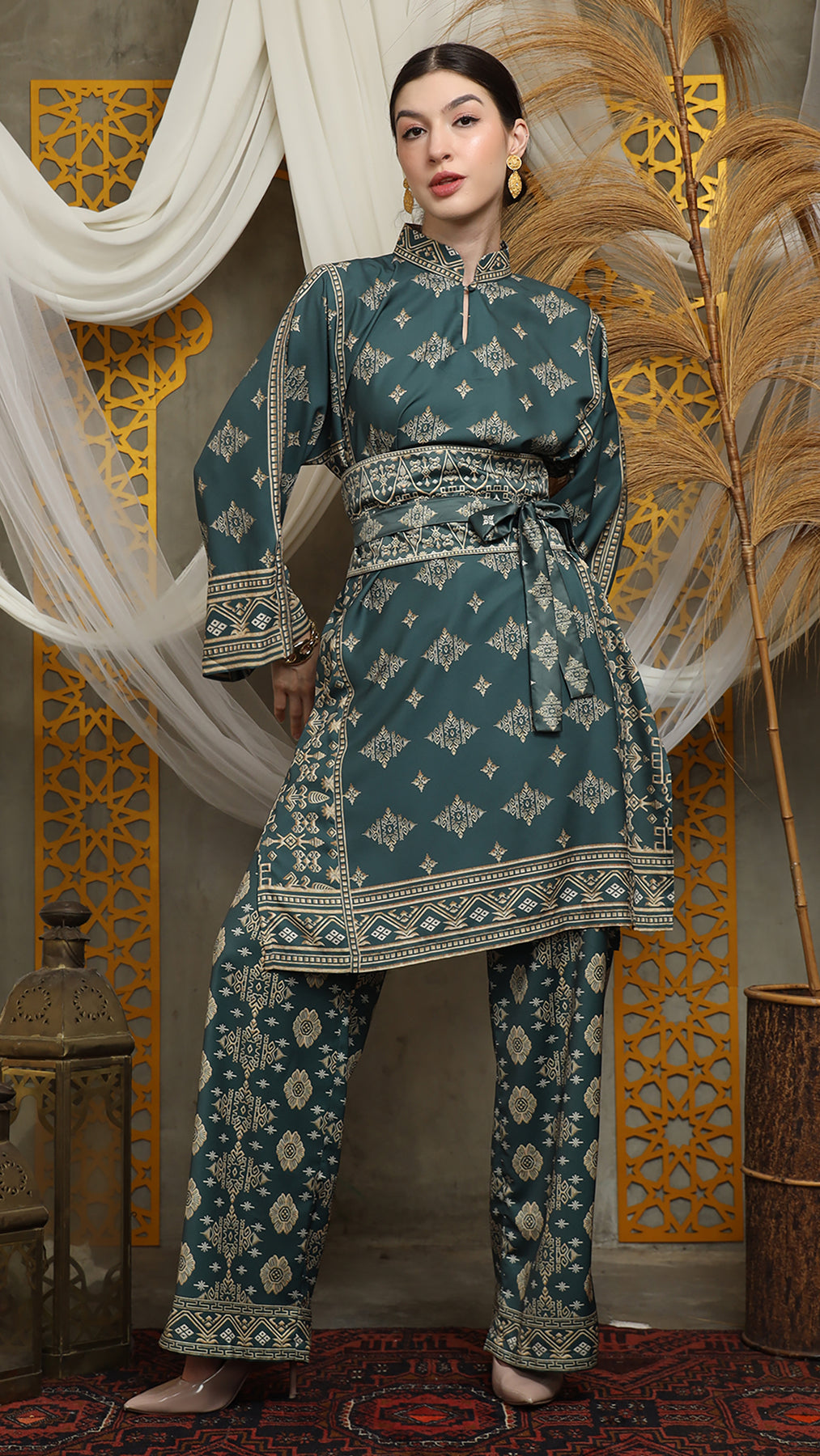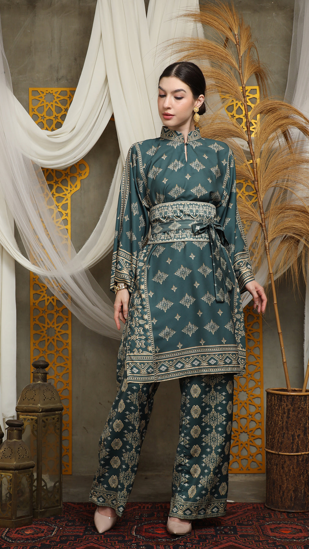 Royal Green Gold Tunic Bali Pants Set