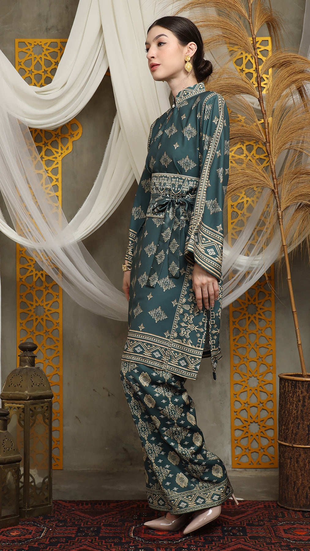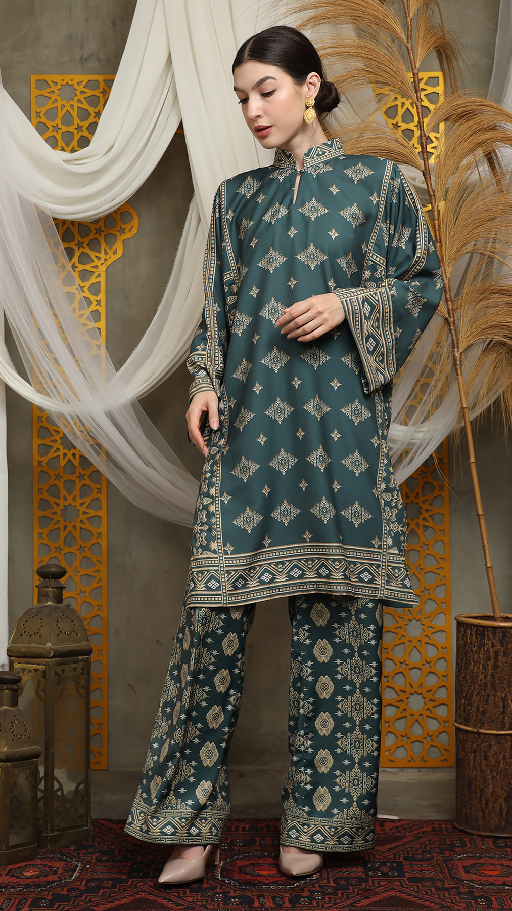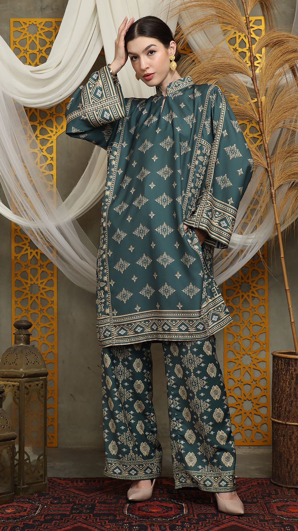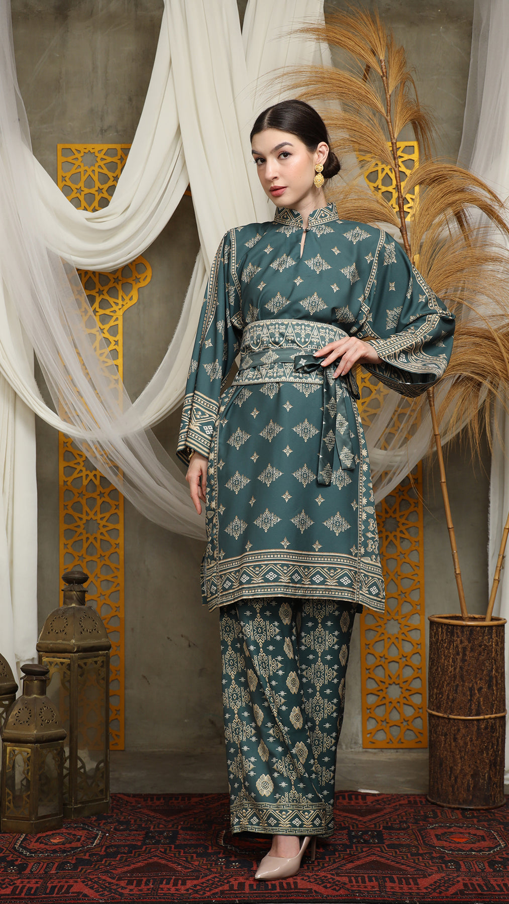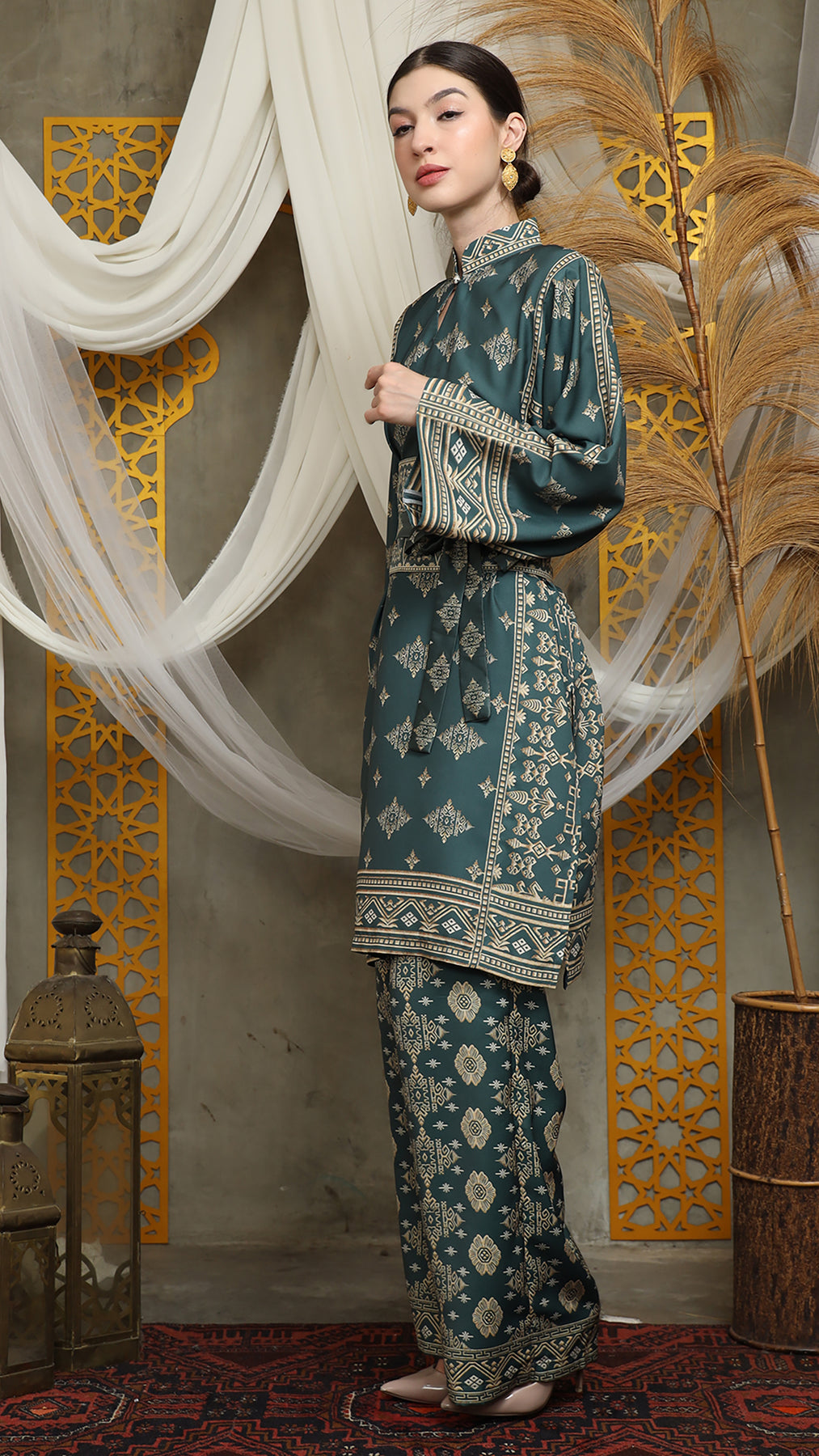 Royal Green Gold Tunic Bali Pants Set