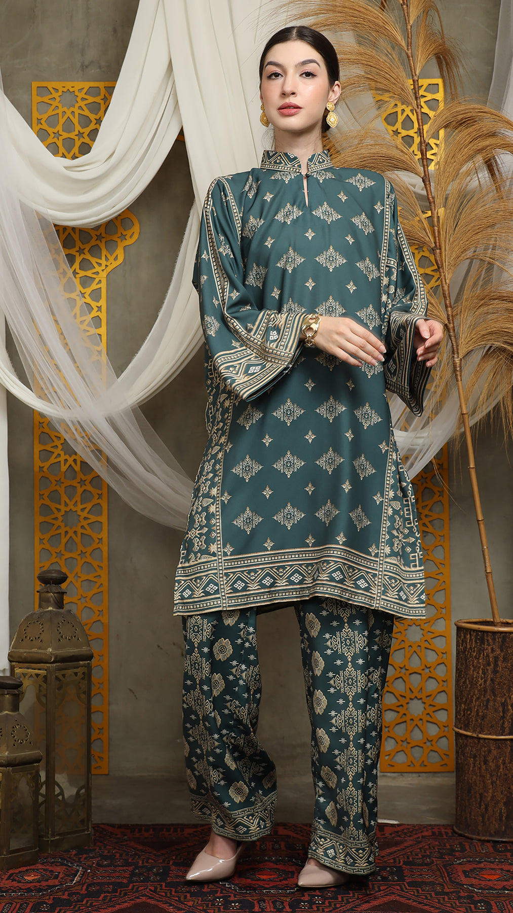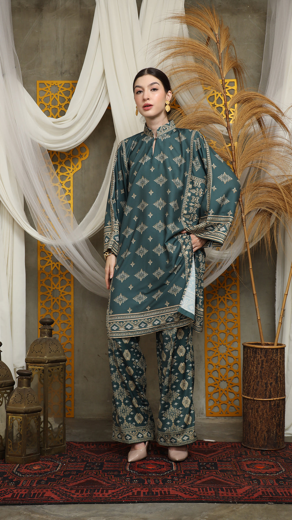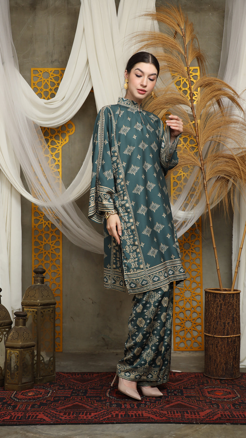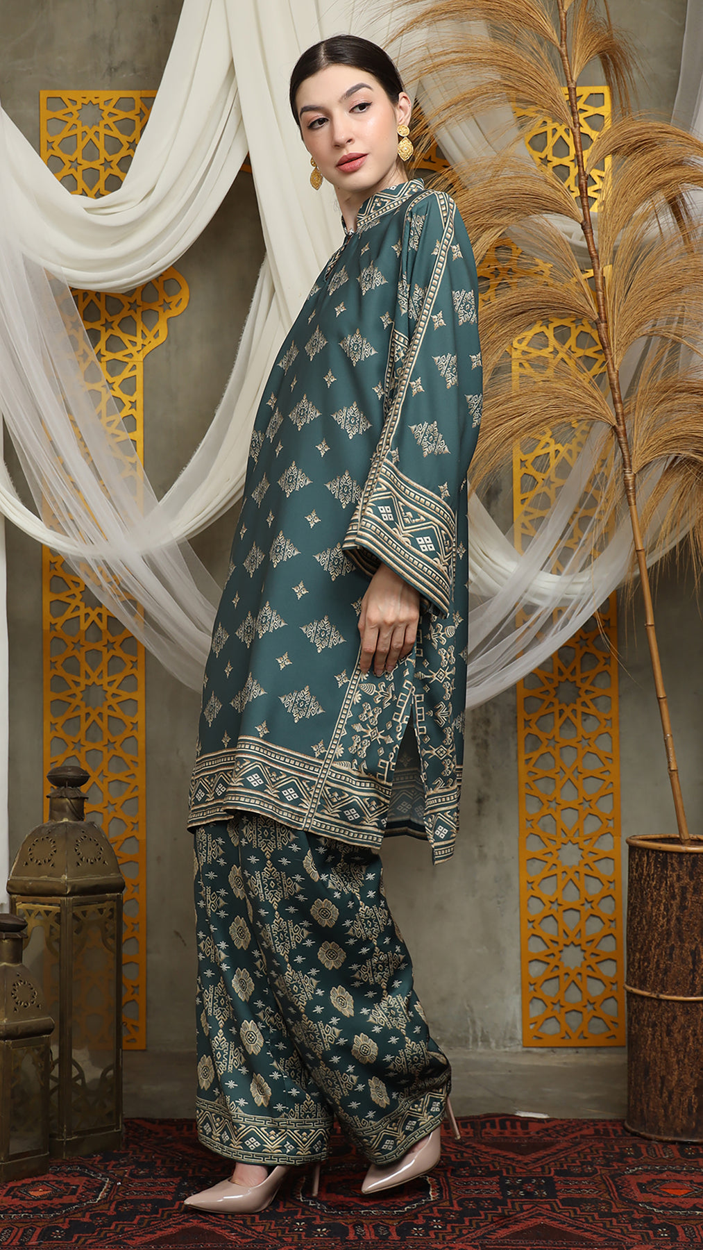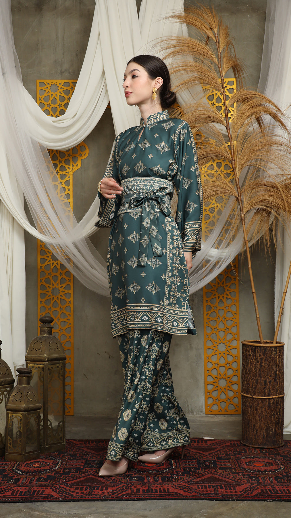 Royal Green Gold Tunic Bali Pants Set