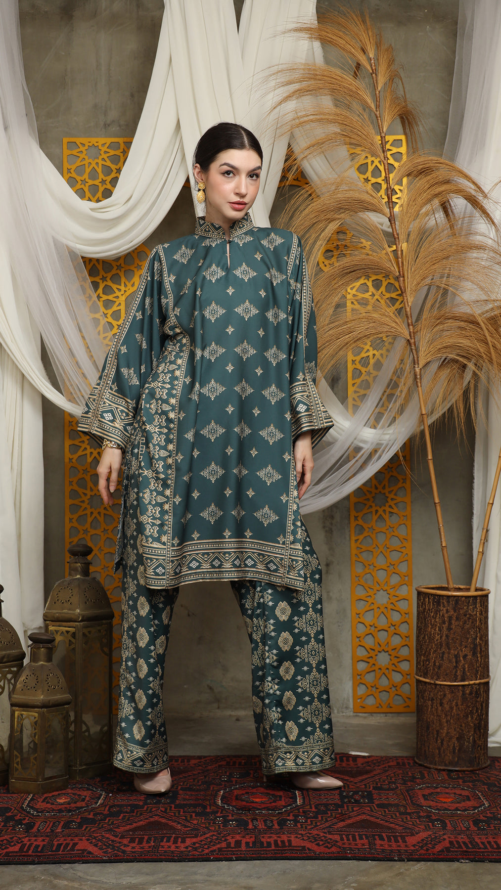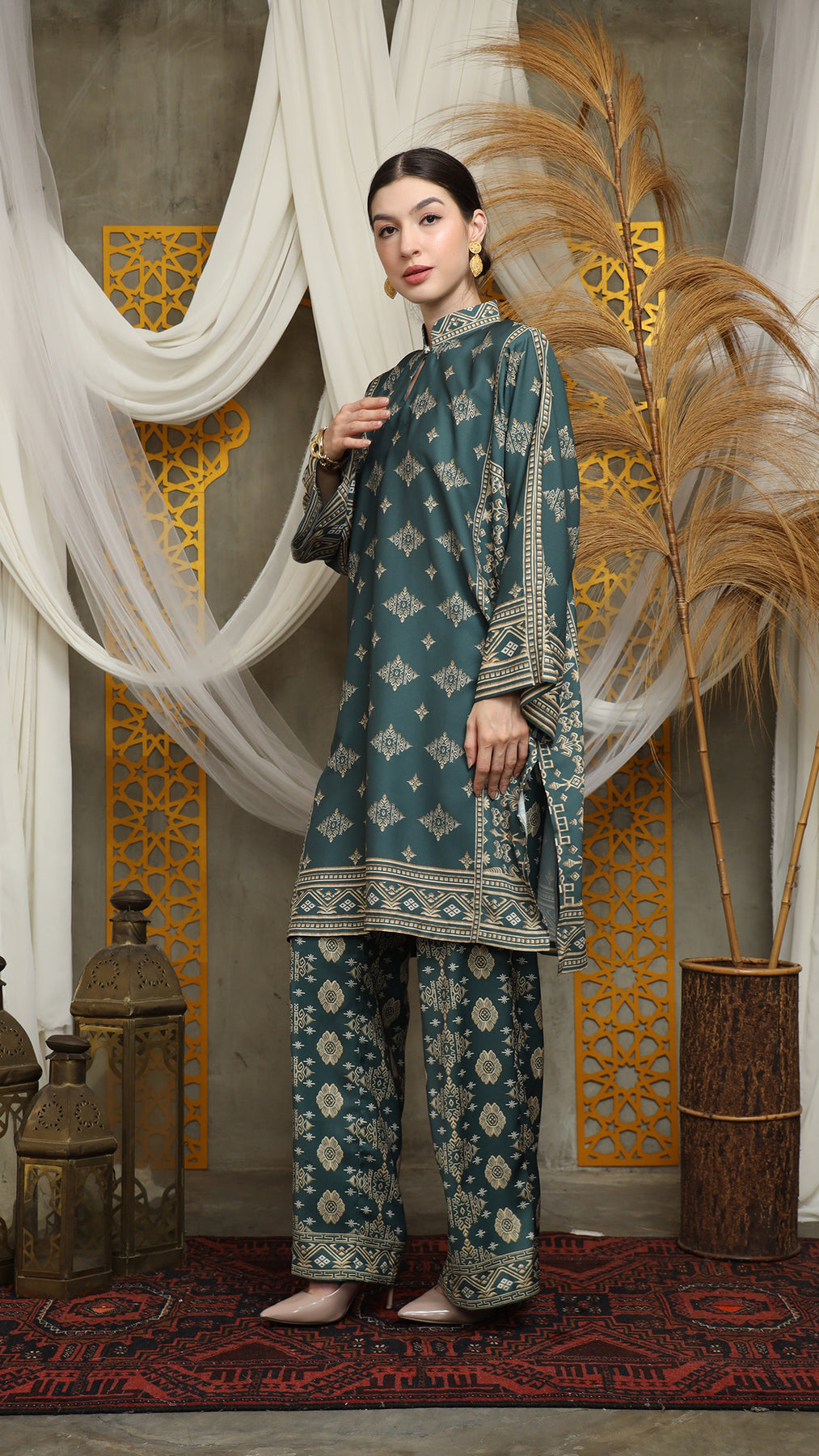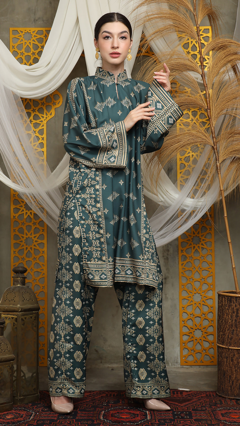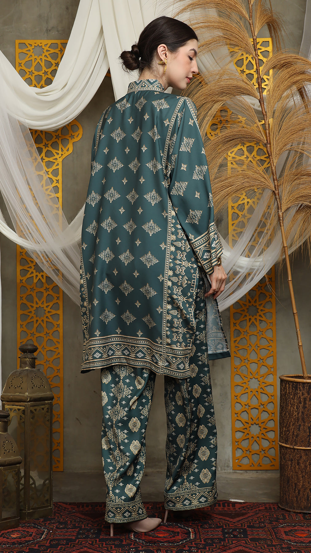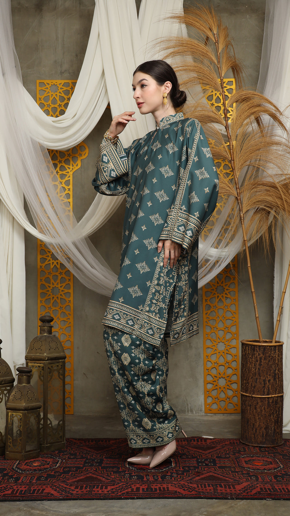 Royal Green Gold Tunic Bali Pants Set