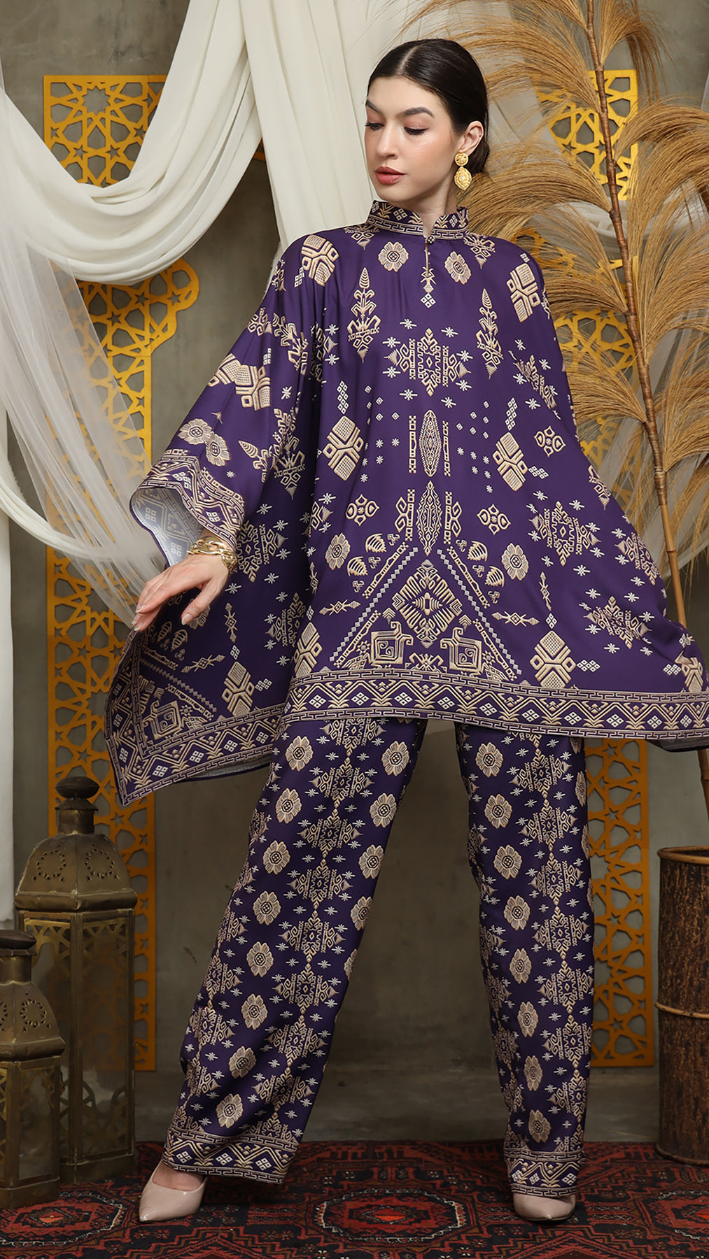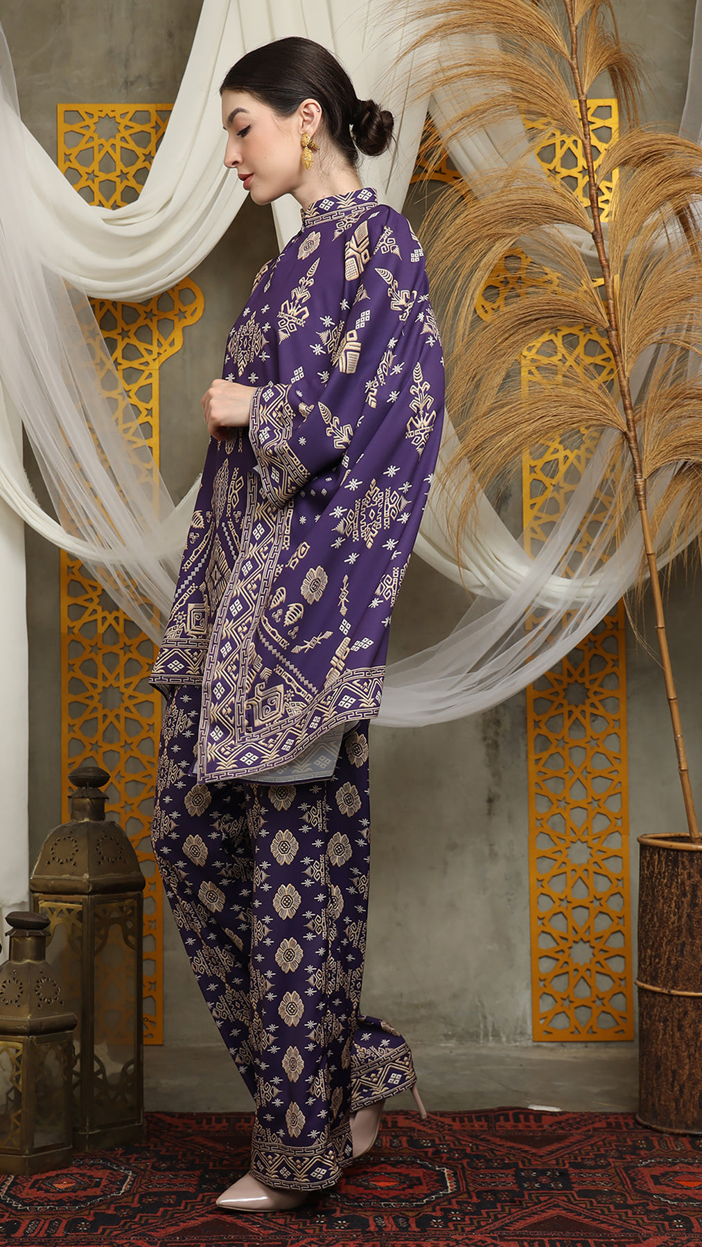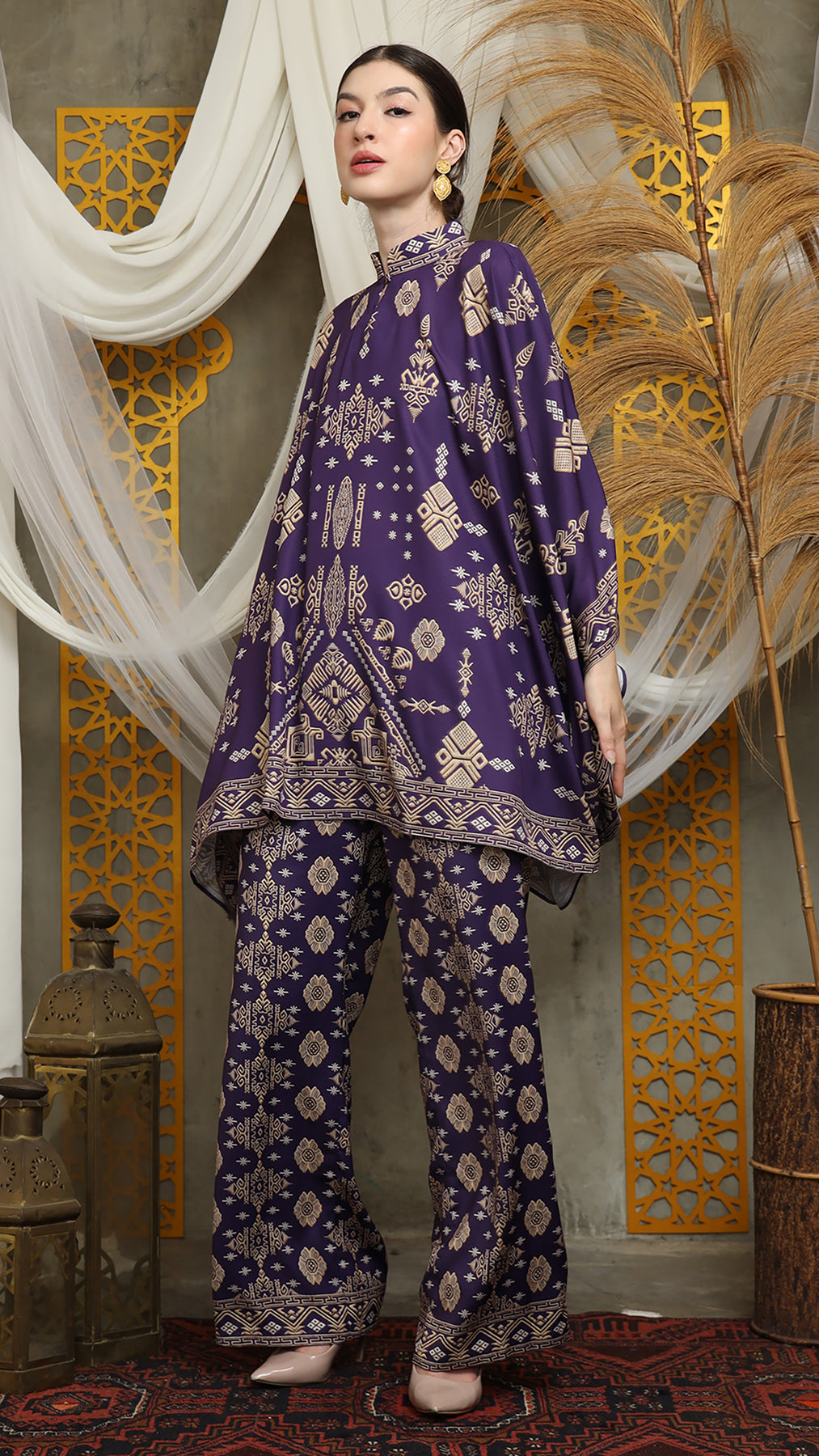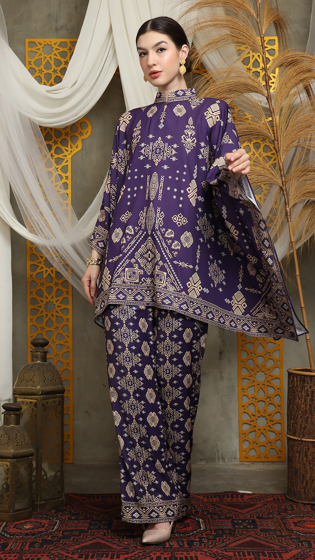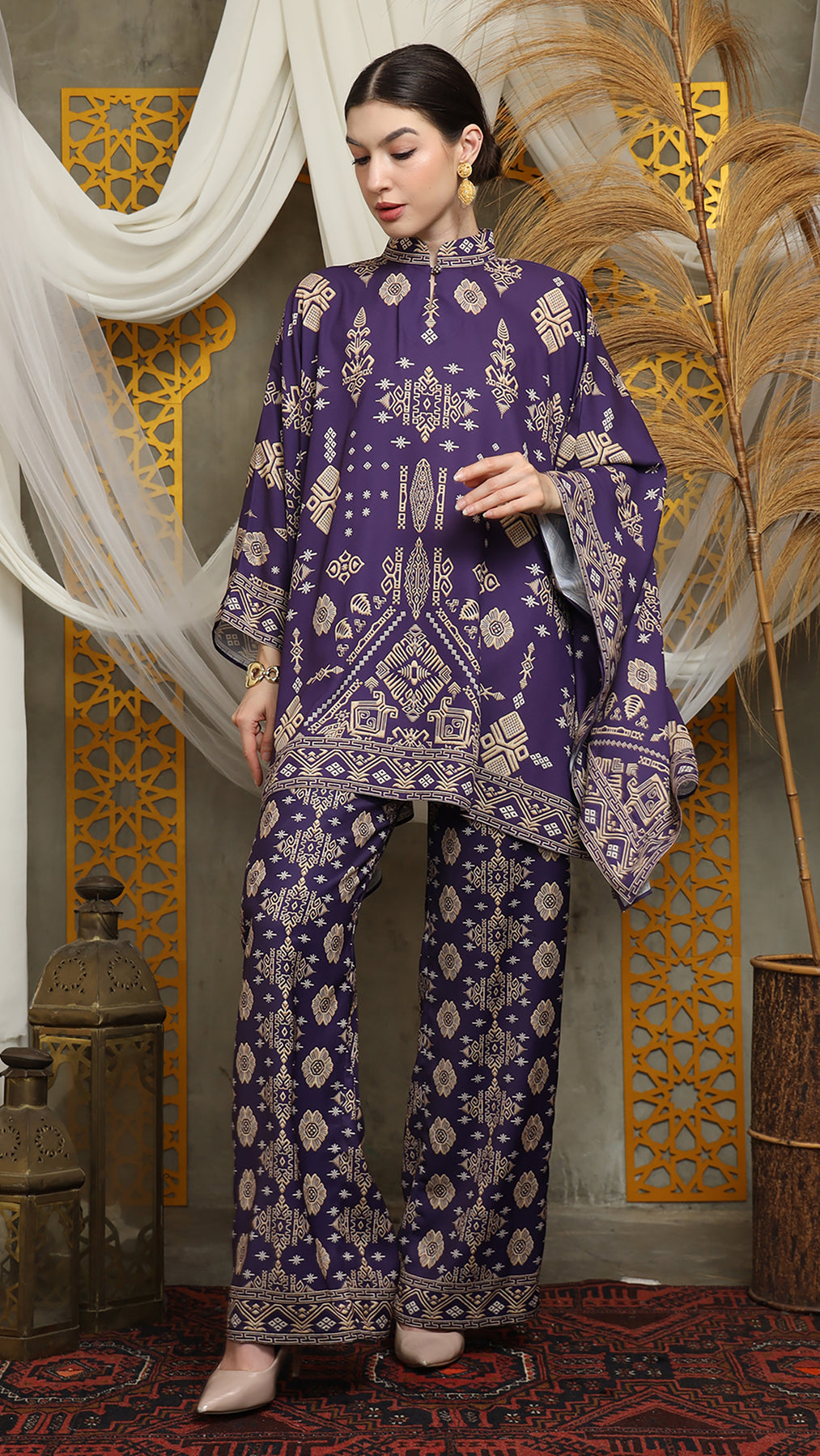 Royal Purple Gold Shanghai Bali Pants Set