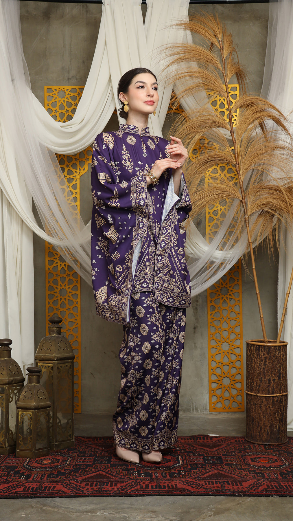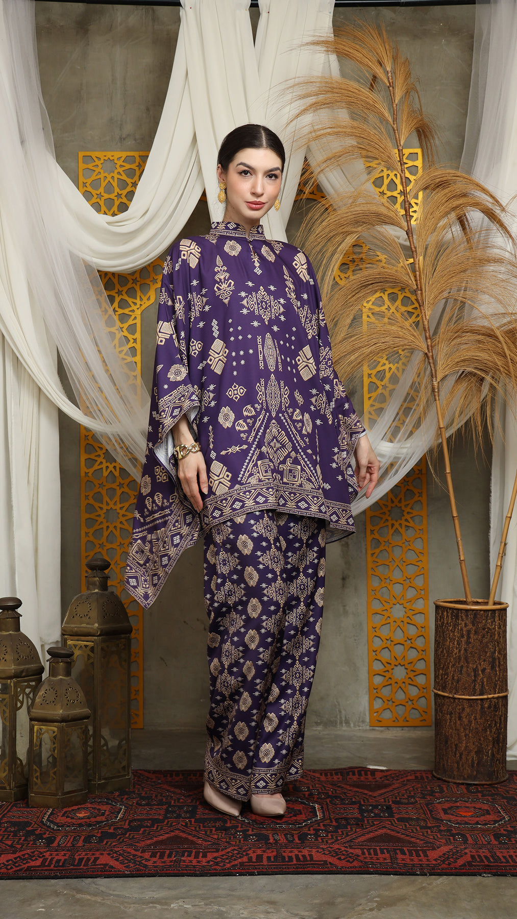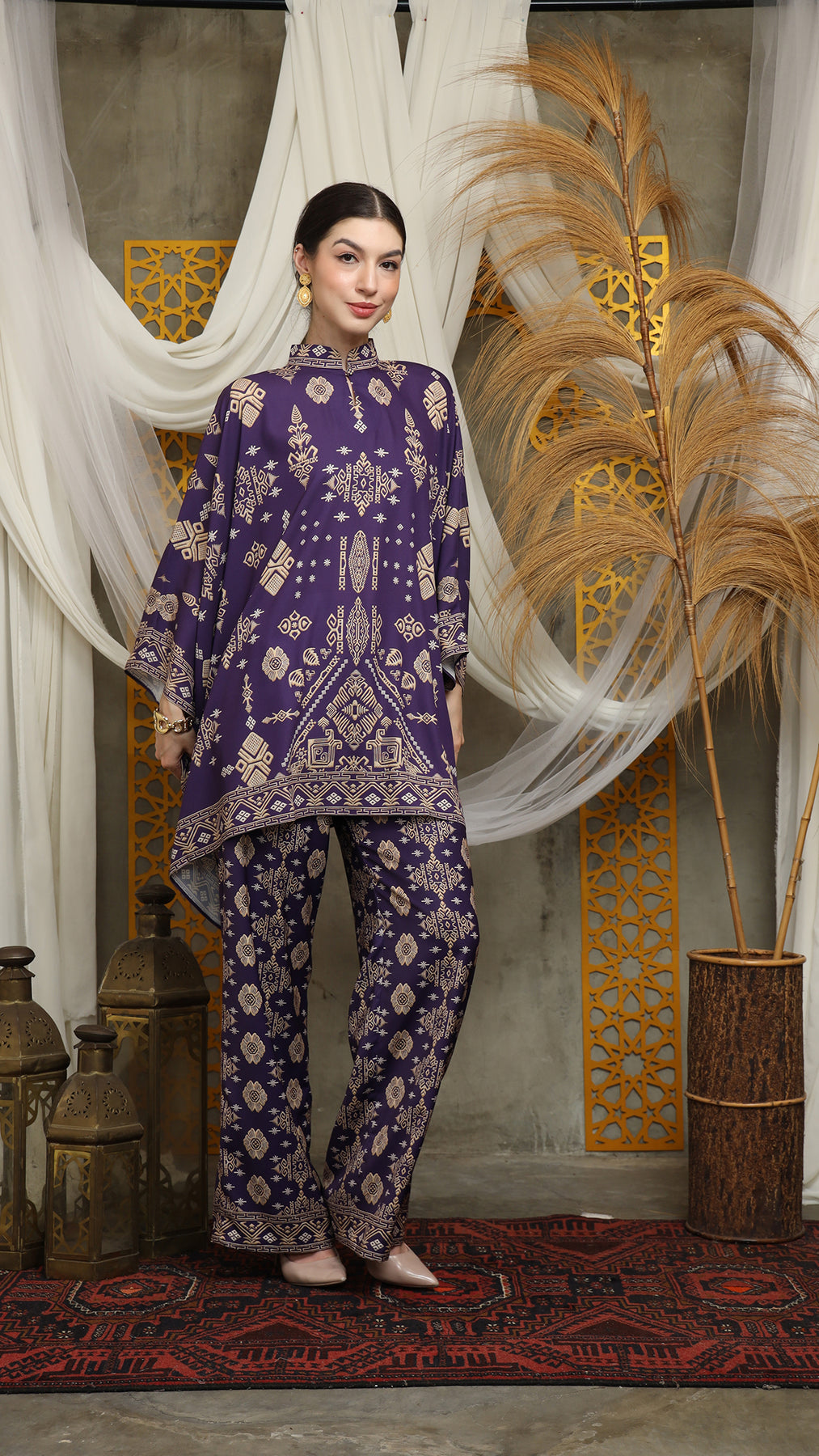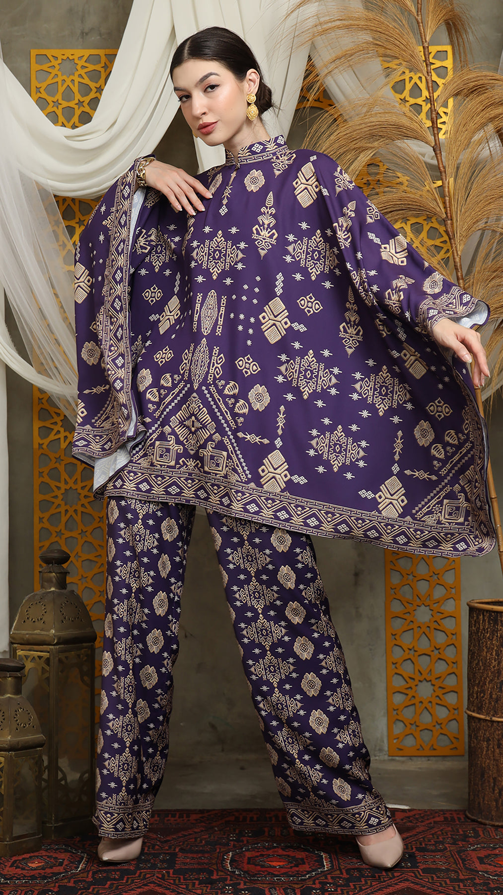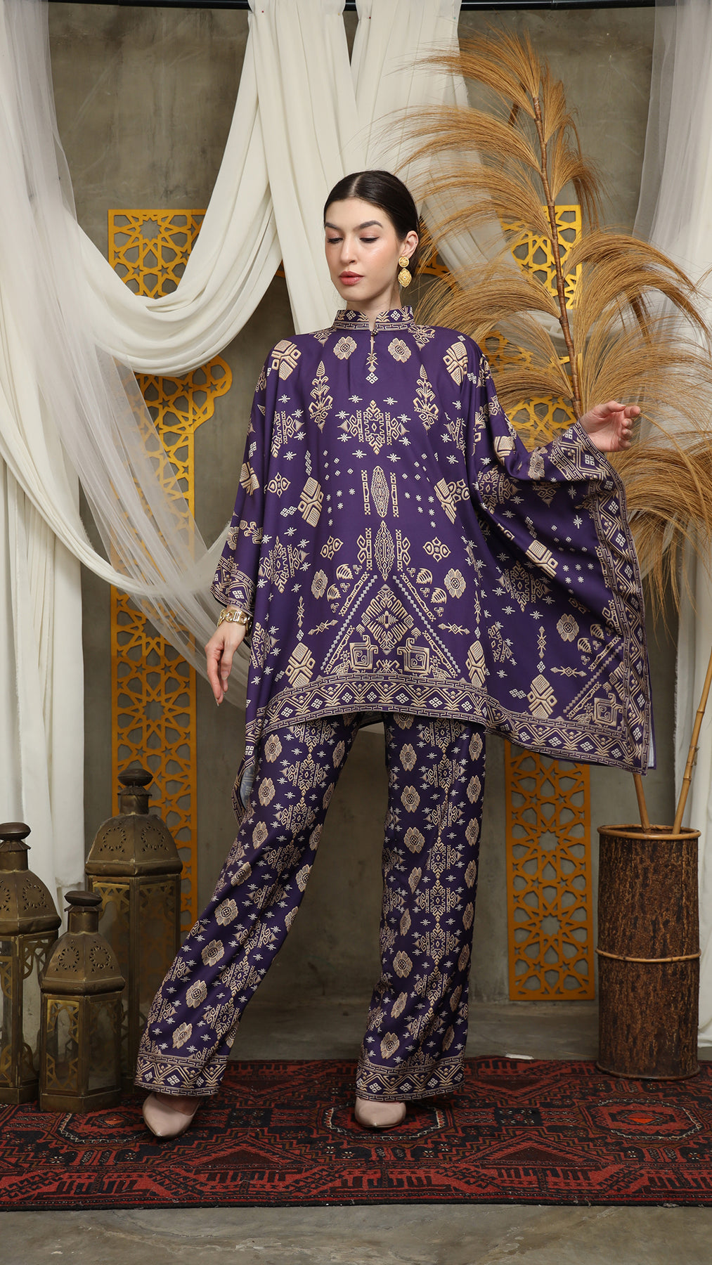 Royal Purple Gold Shanghai Bali Pants Set