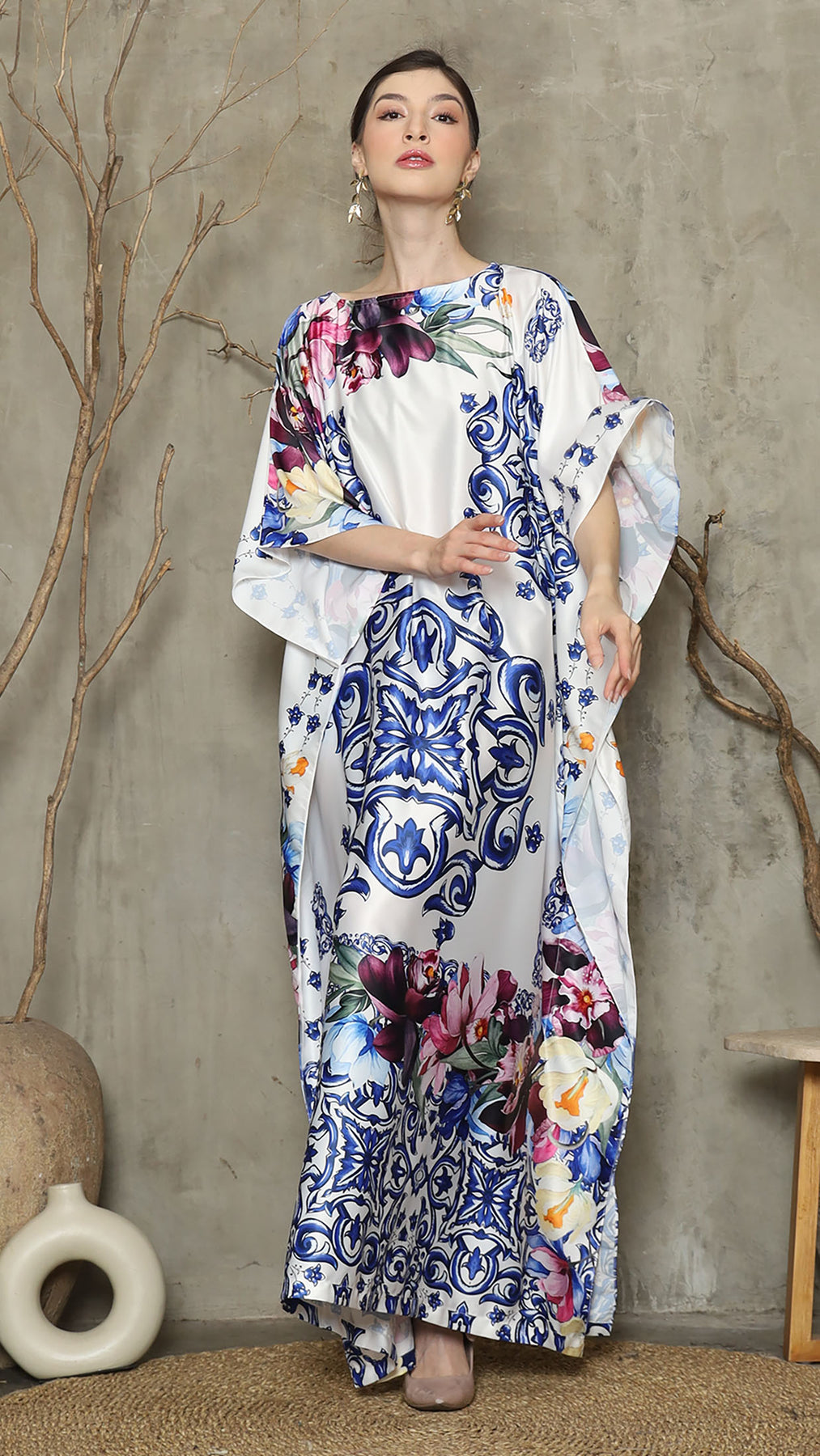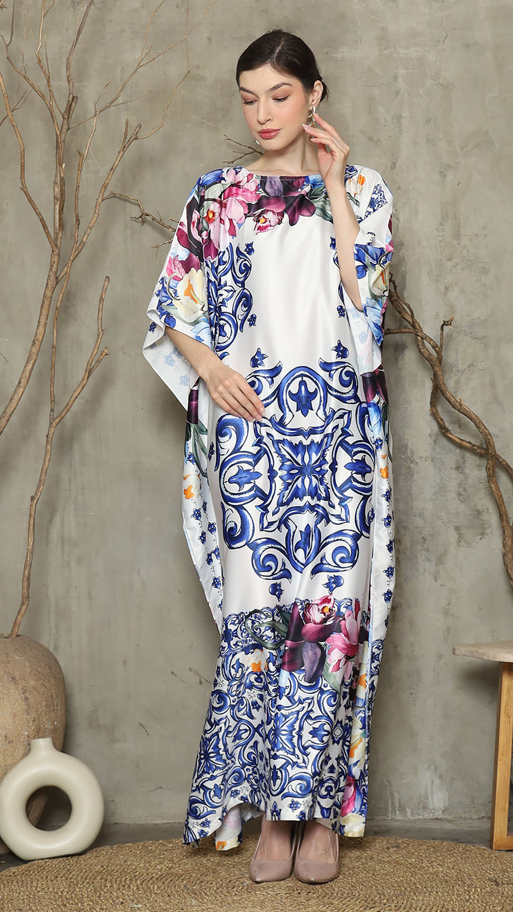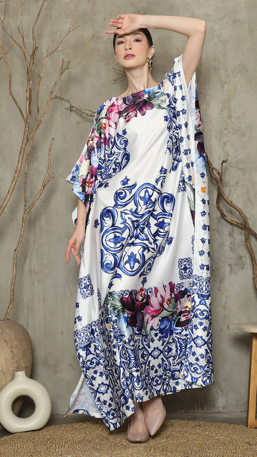 This kaftan is made from lightweight satin material, which has super comfortable to lounge around in, adjustable drawstring and flattering neckline is an added feature which offers a glamorous way to cover up and perfect for evening wear.