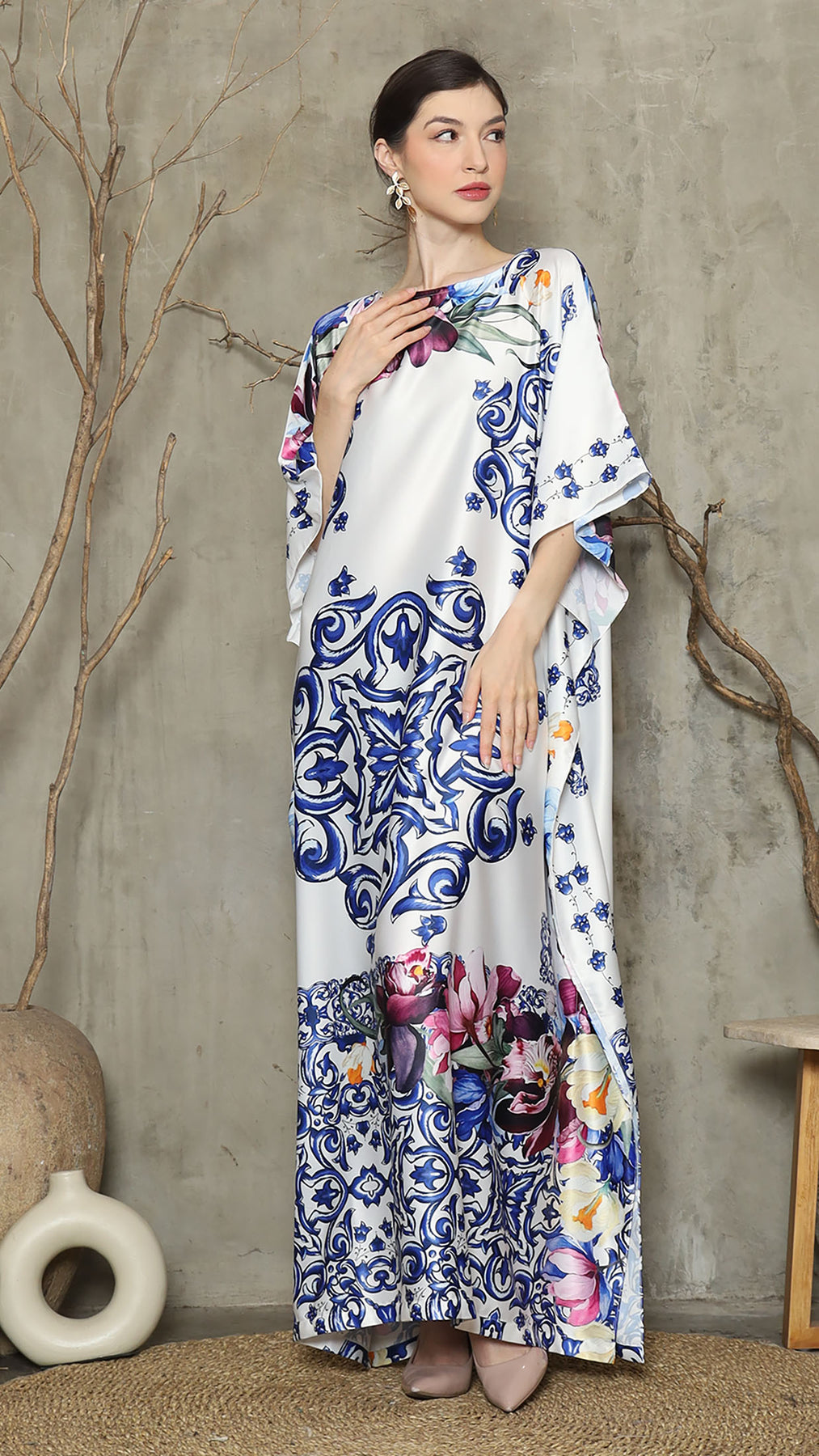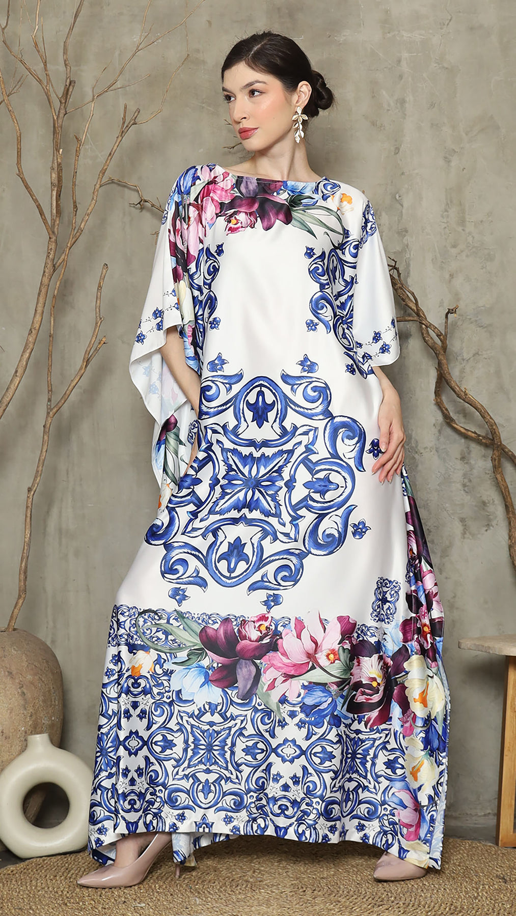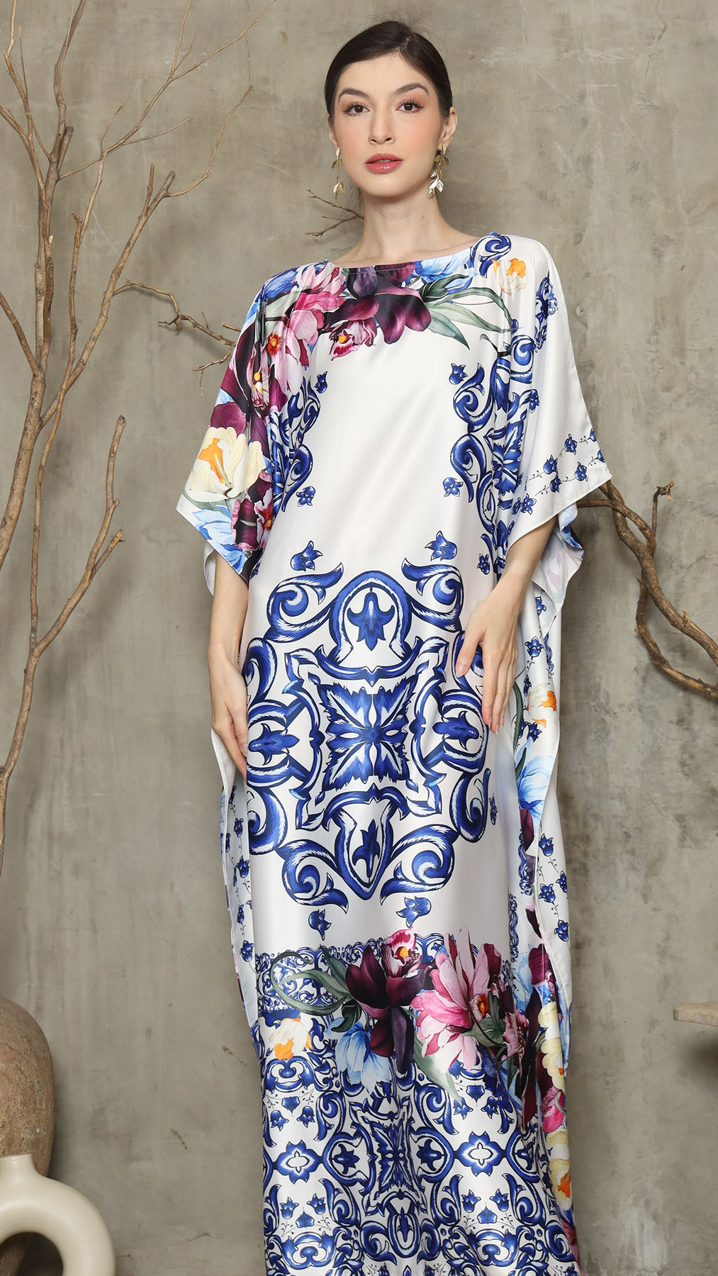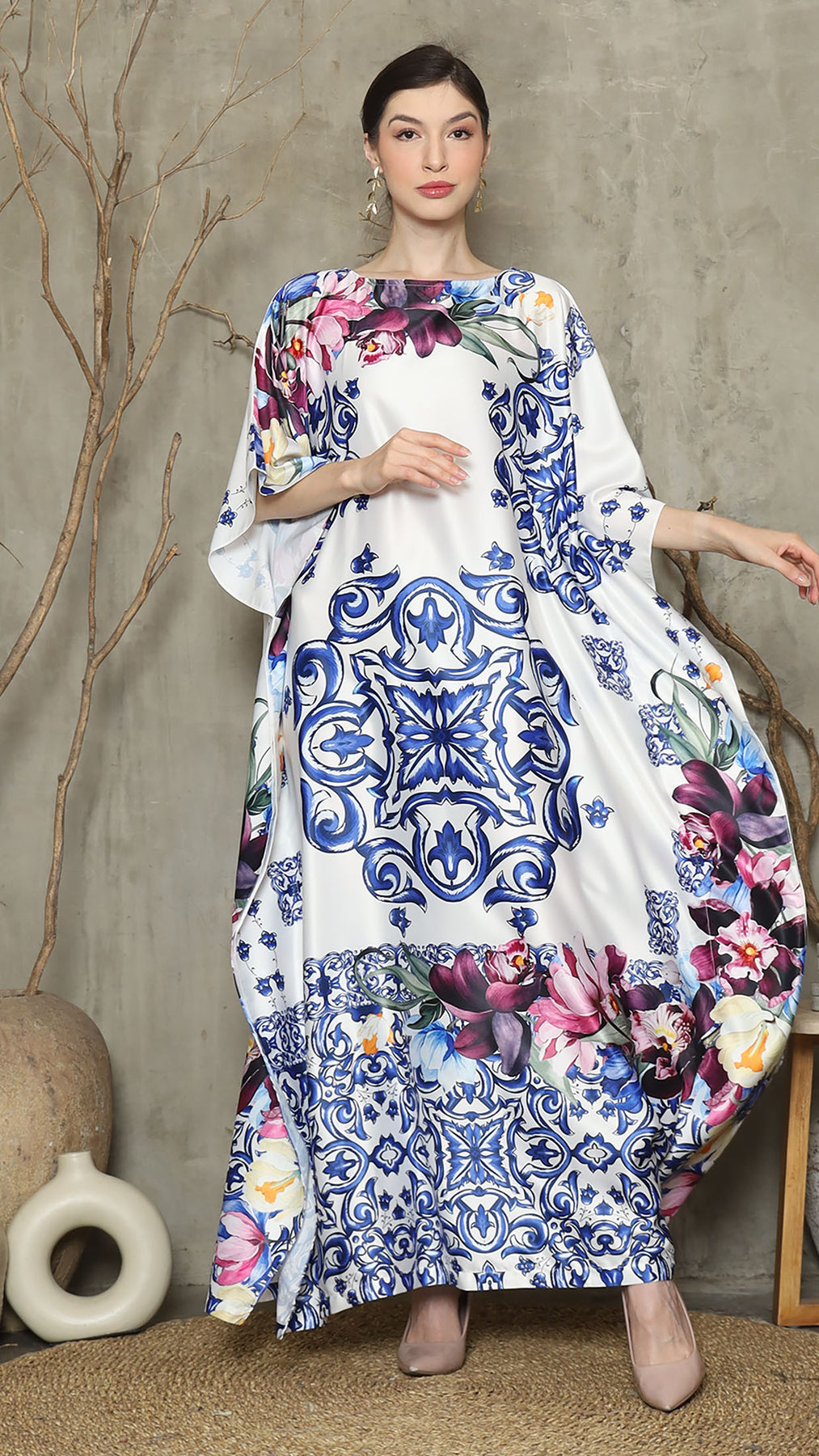 This kaftan is made from lightweight satin material, which has super comfortable to lounge around in, adjustable drawstring and flattering neckline is an added feature which offers a glamorous way to cover up and perfect for evening wear.
