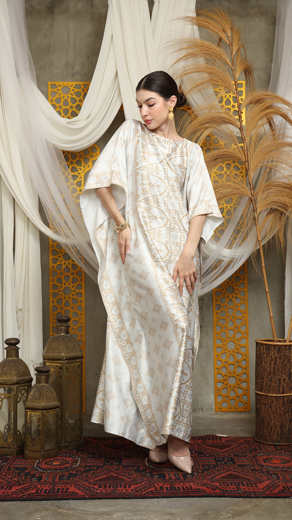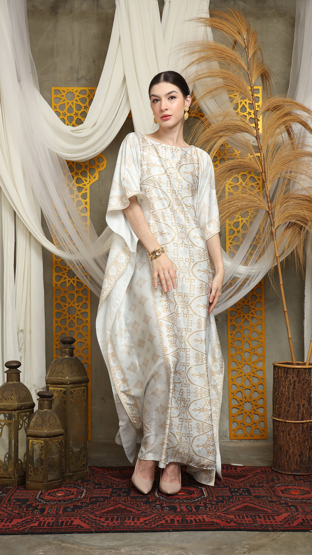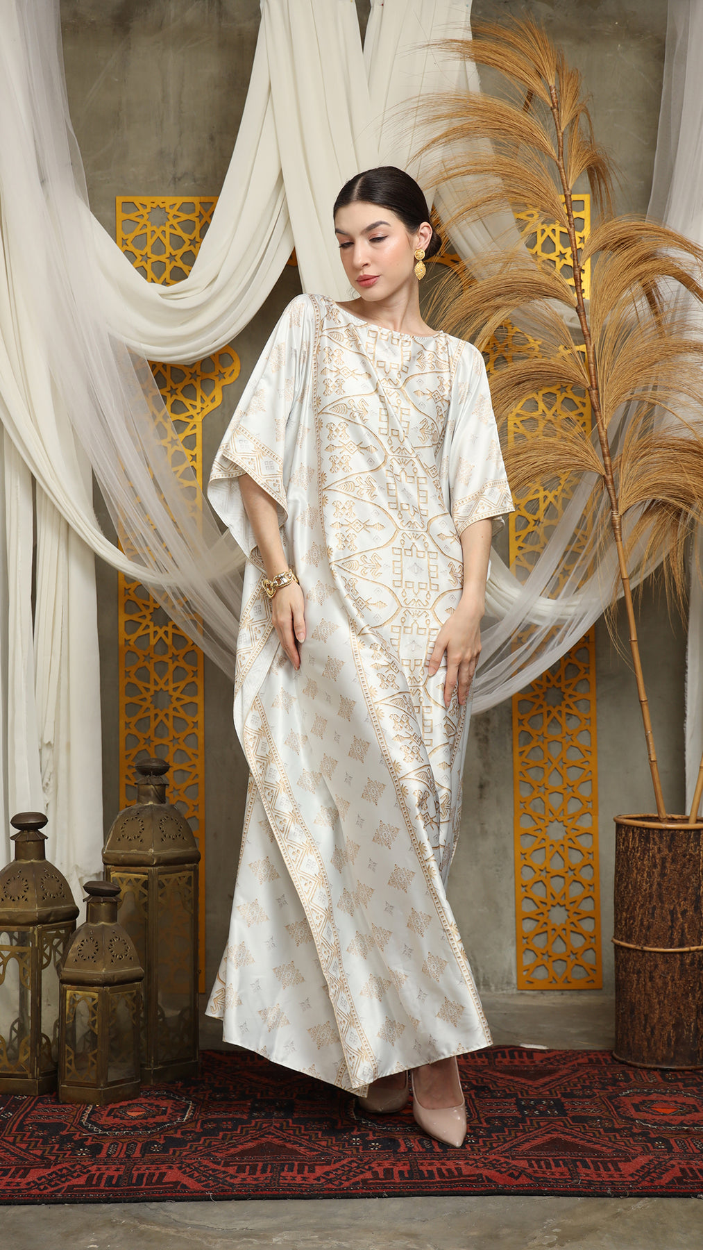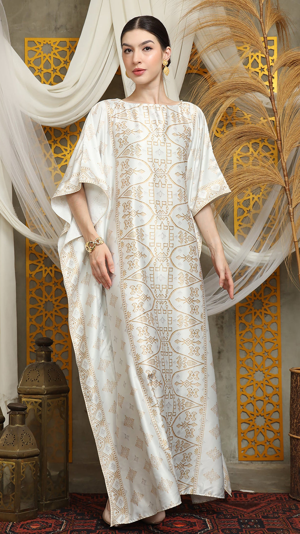 This featured kaftan is a true masterpiece. It offers a flattering fit that enhances your silhouette from every angle. Made from non-transparent fabric, it ensures confidence and comfort, allowing you to move with grace and poise.