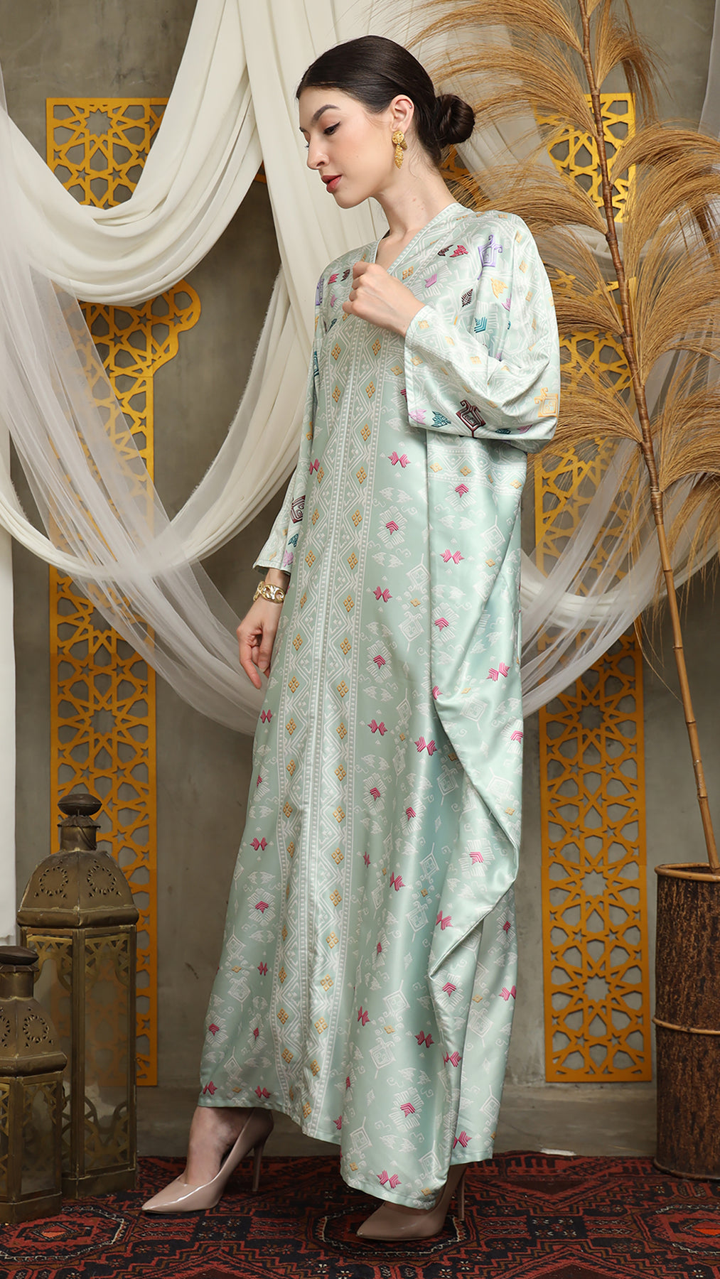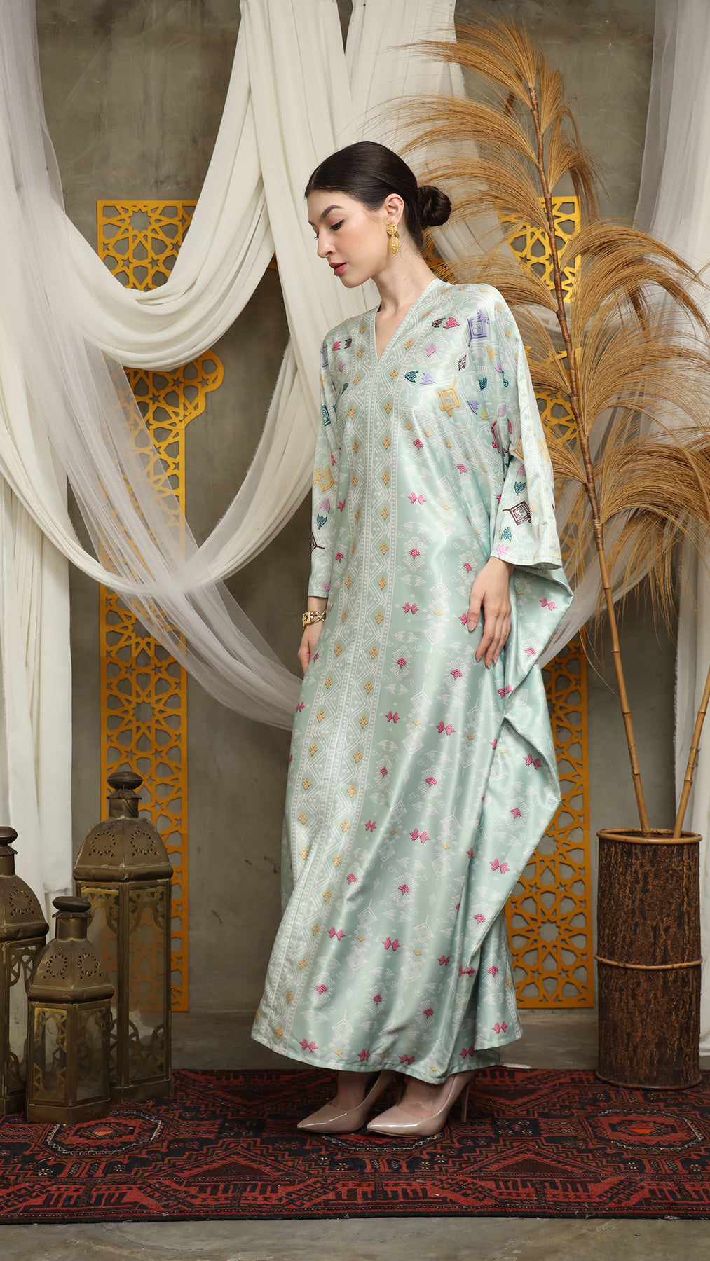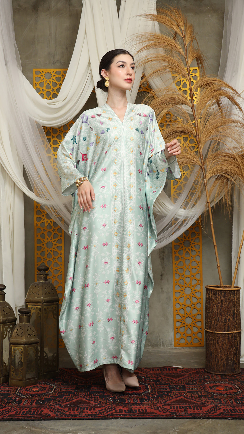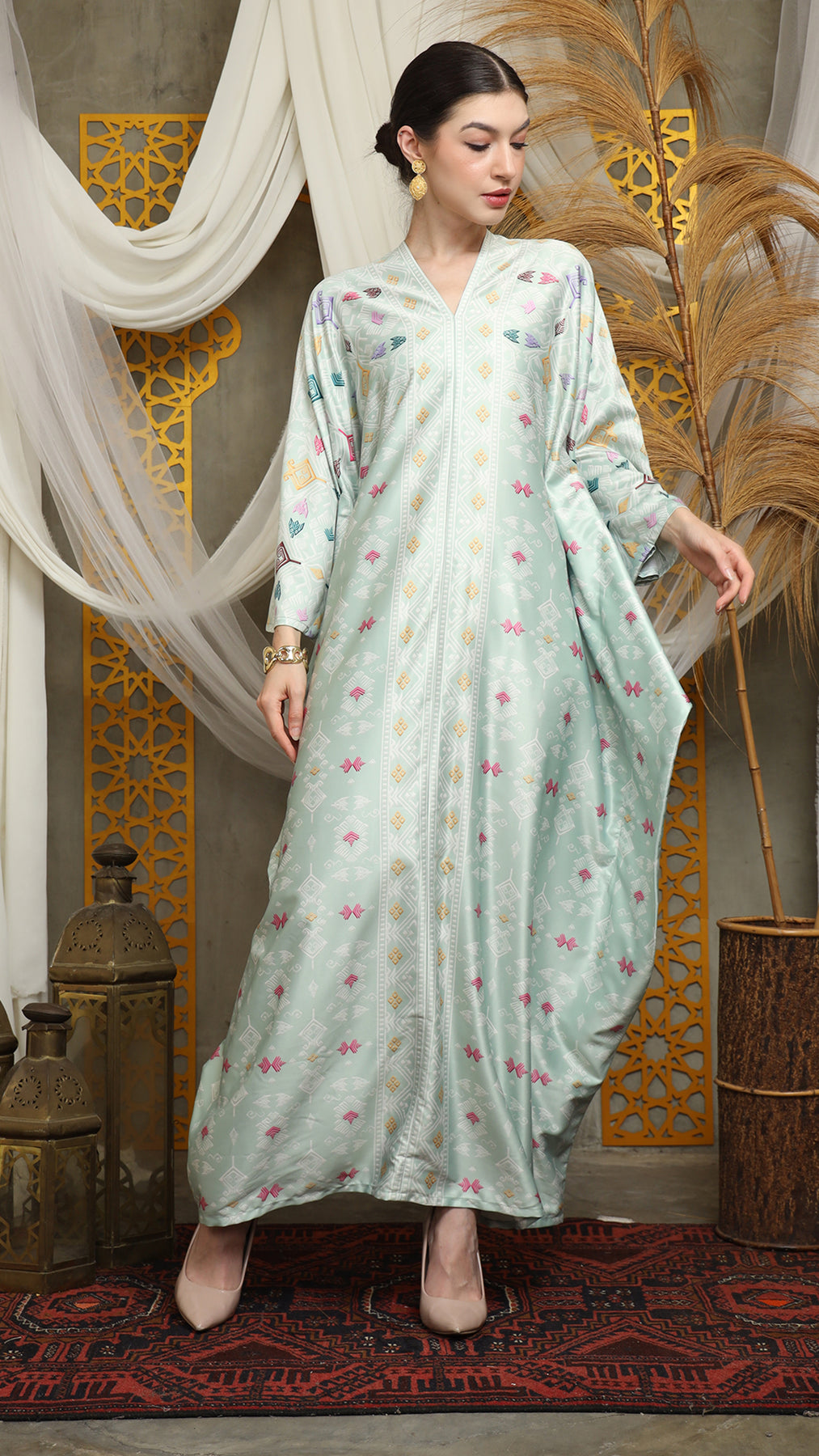 This featured kaftan is a true masterpiece. It offers a flattering fit that enhances your silhouette from every angle. Made from non-transparent fabric, it ensures confidence and comfort, allowing you to move with grace and poise.