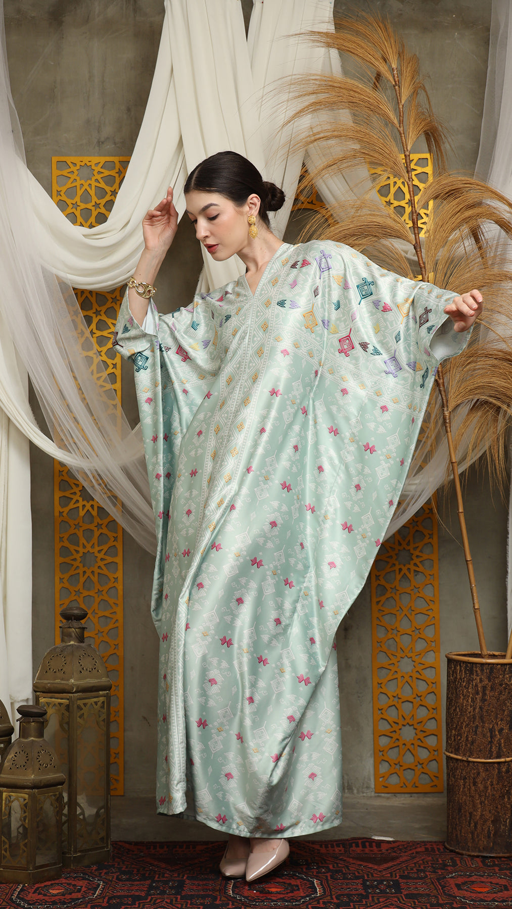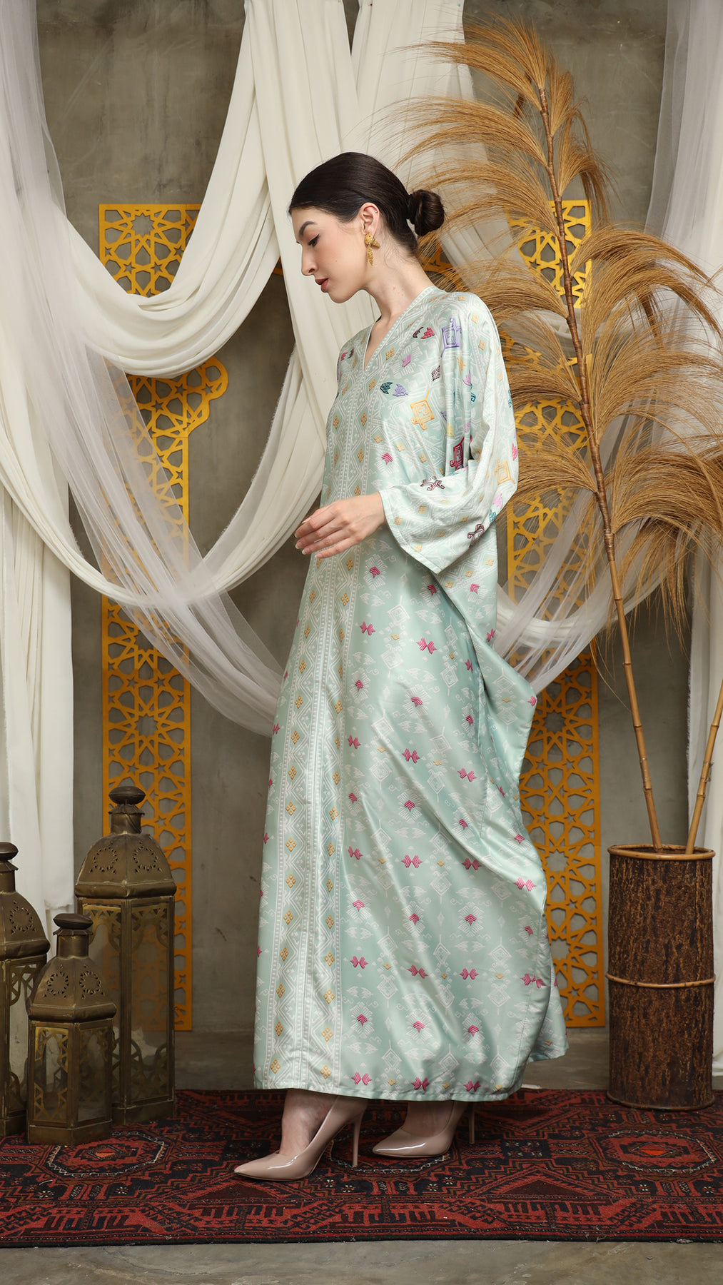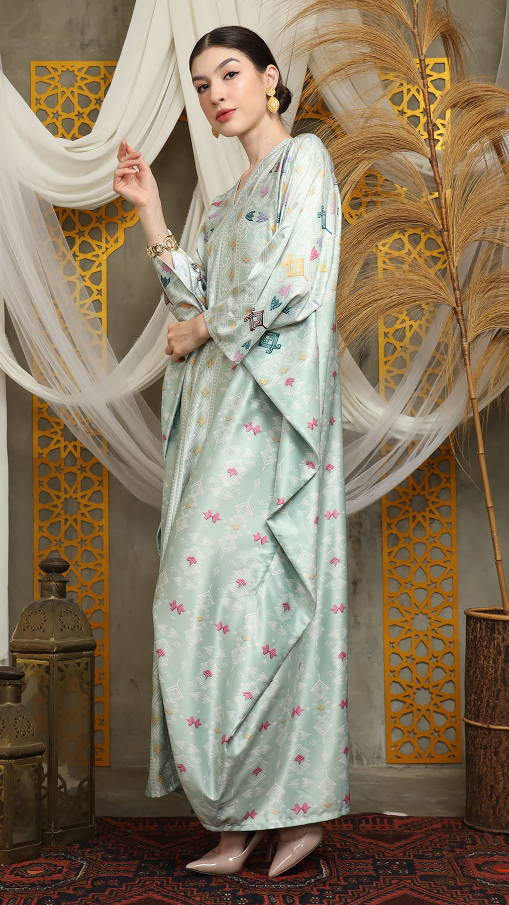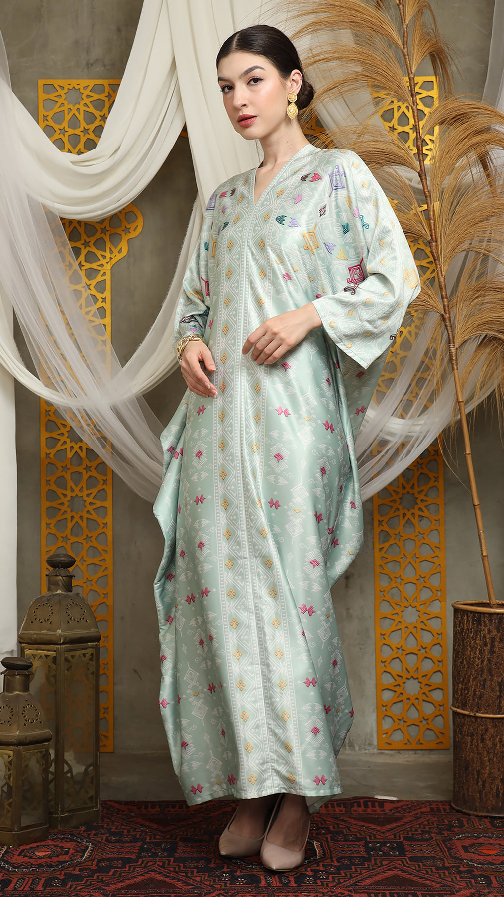 This featured kaftan is a true masterpiece. It offers a flattering fit that enhances your silhouette from every angle. Made from non-transparent fabric, it ensures confidence and comfort, allowing you to move with grace and poise.