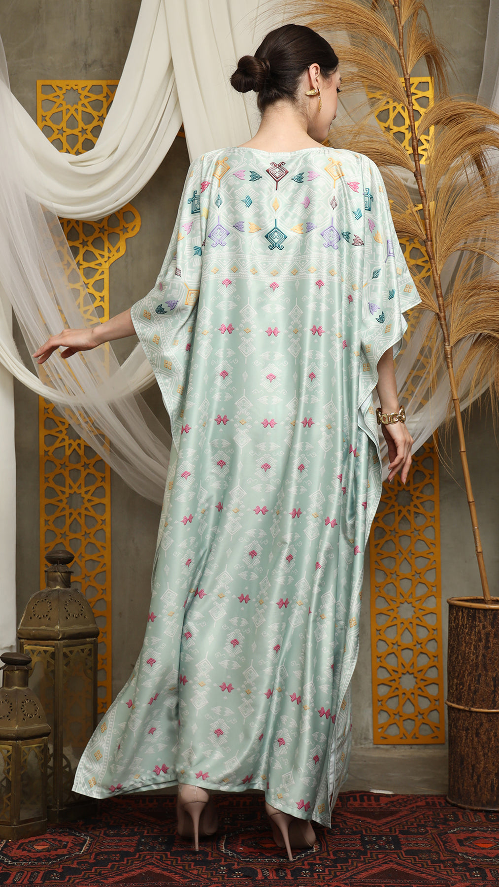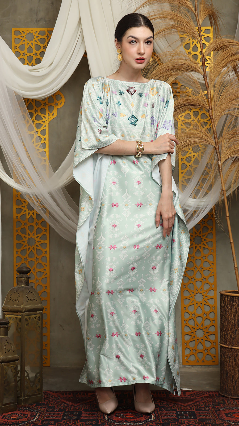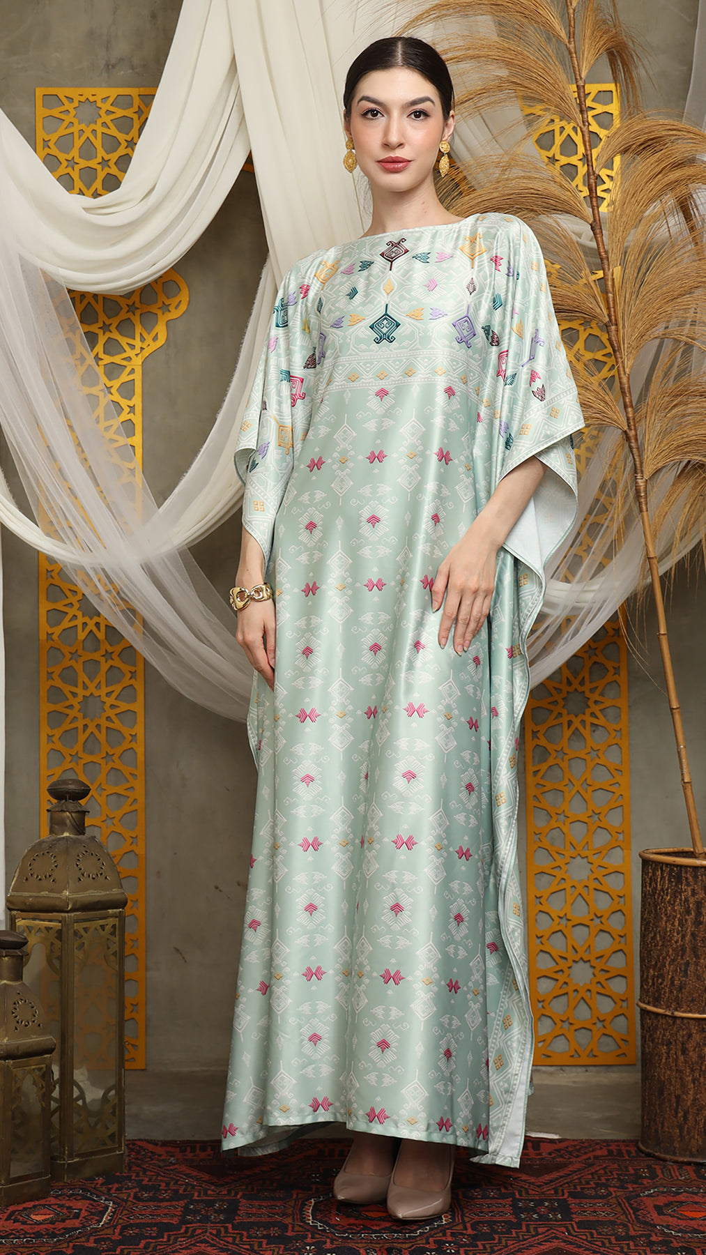 This featured kaftan is a true masterpiece. It offers a flattering fit that enhances your silhouette from every angle. Made from non-transparent fabric, it ensures confidence and comfort, allowing you to move with grace and poise.