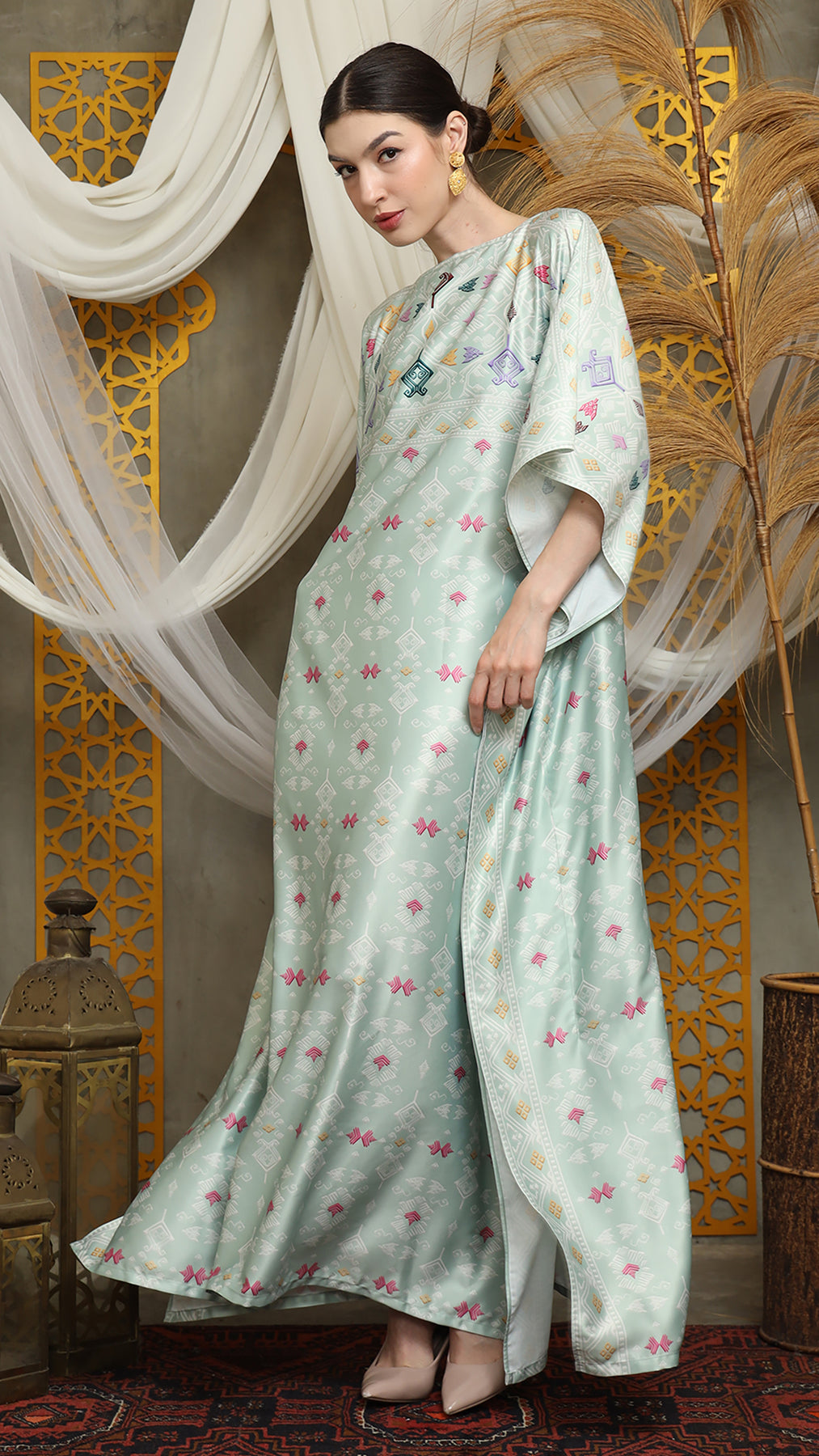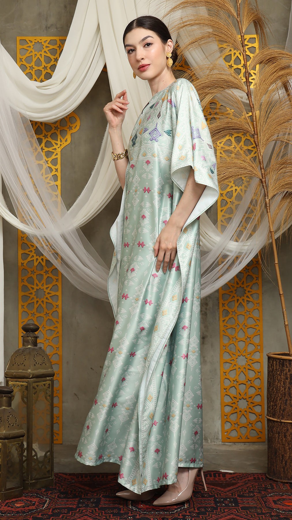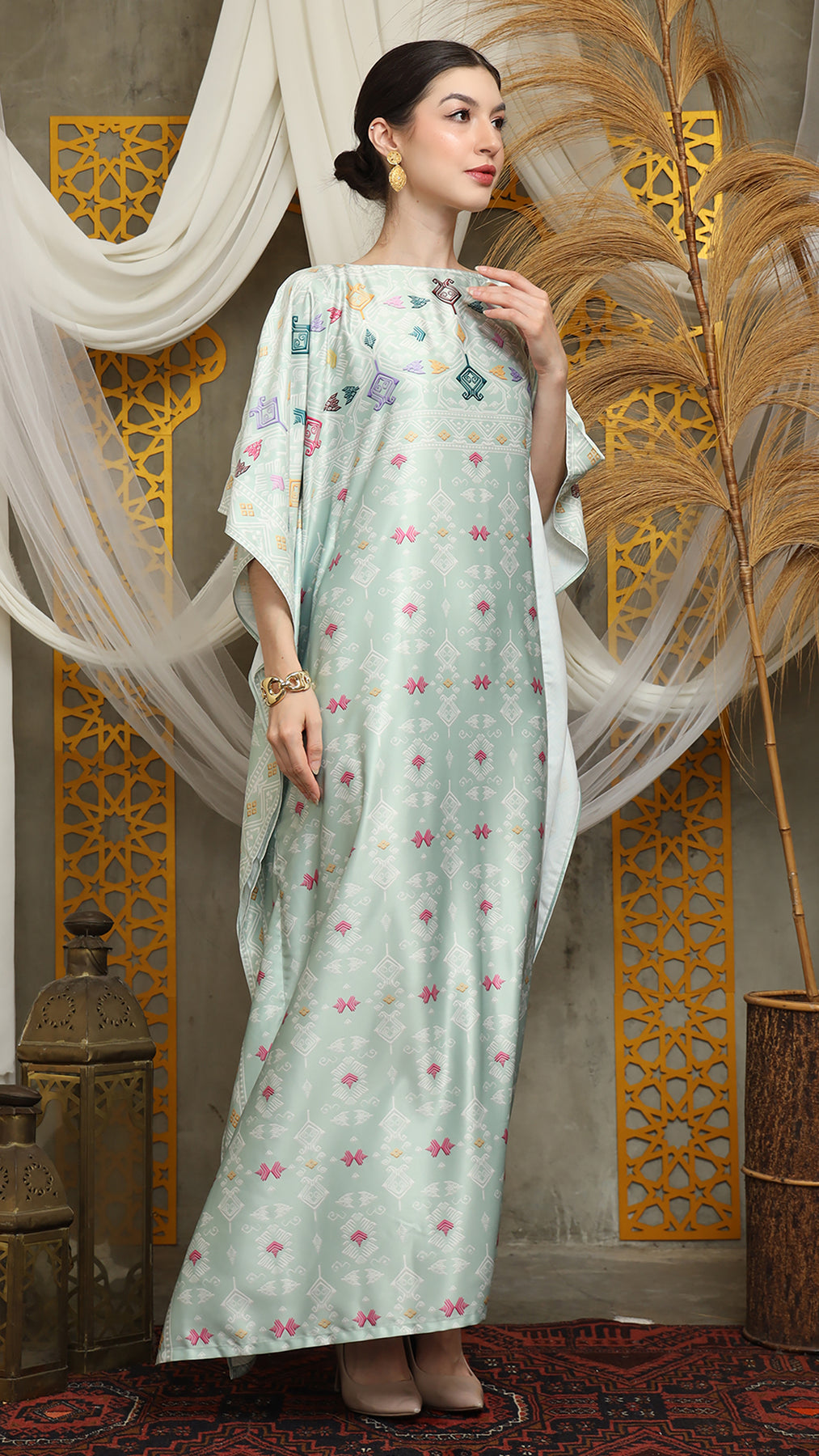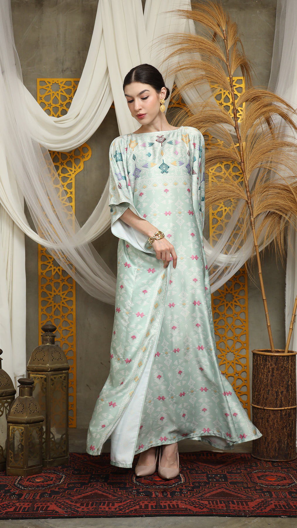 This featured kaftan is a true masterpiece. It offers a flattering fit that enhances your silhouette from every angle. Made from non-transparent fabric, it ensures confidence and comfort, allowing you to move with grace and poise.
