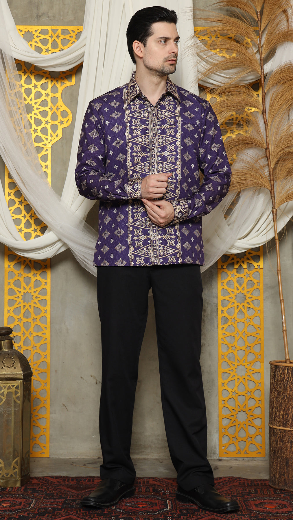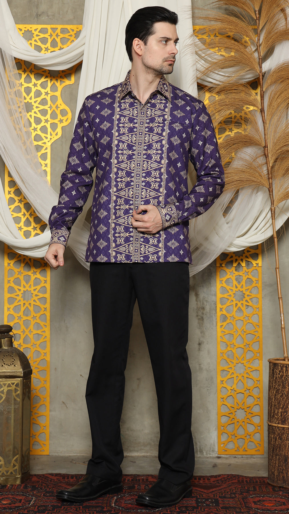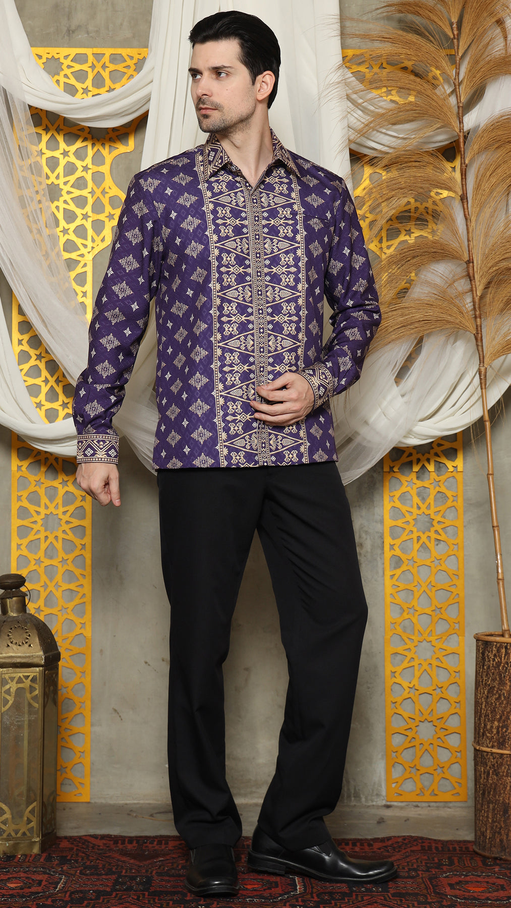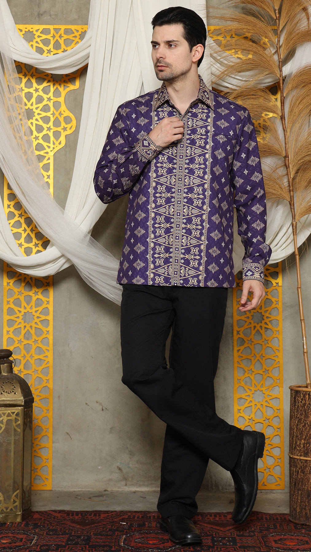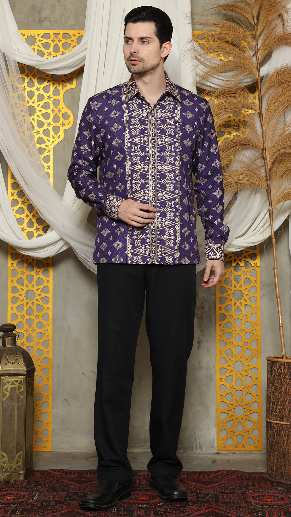 The Bali Shirt printed was inspired by the art of Indonesian rich Bali tradition is made from Satin material. Imagine intricate patterns inspired by cultural heritage delicately adorning a crisp shirt, seamlessly merging tradition with modern fashion.